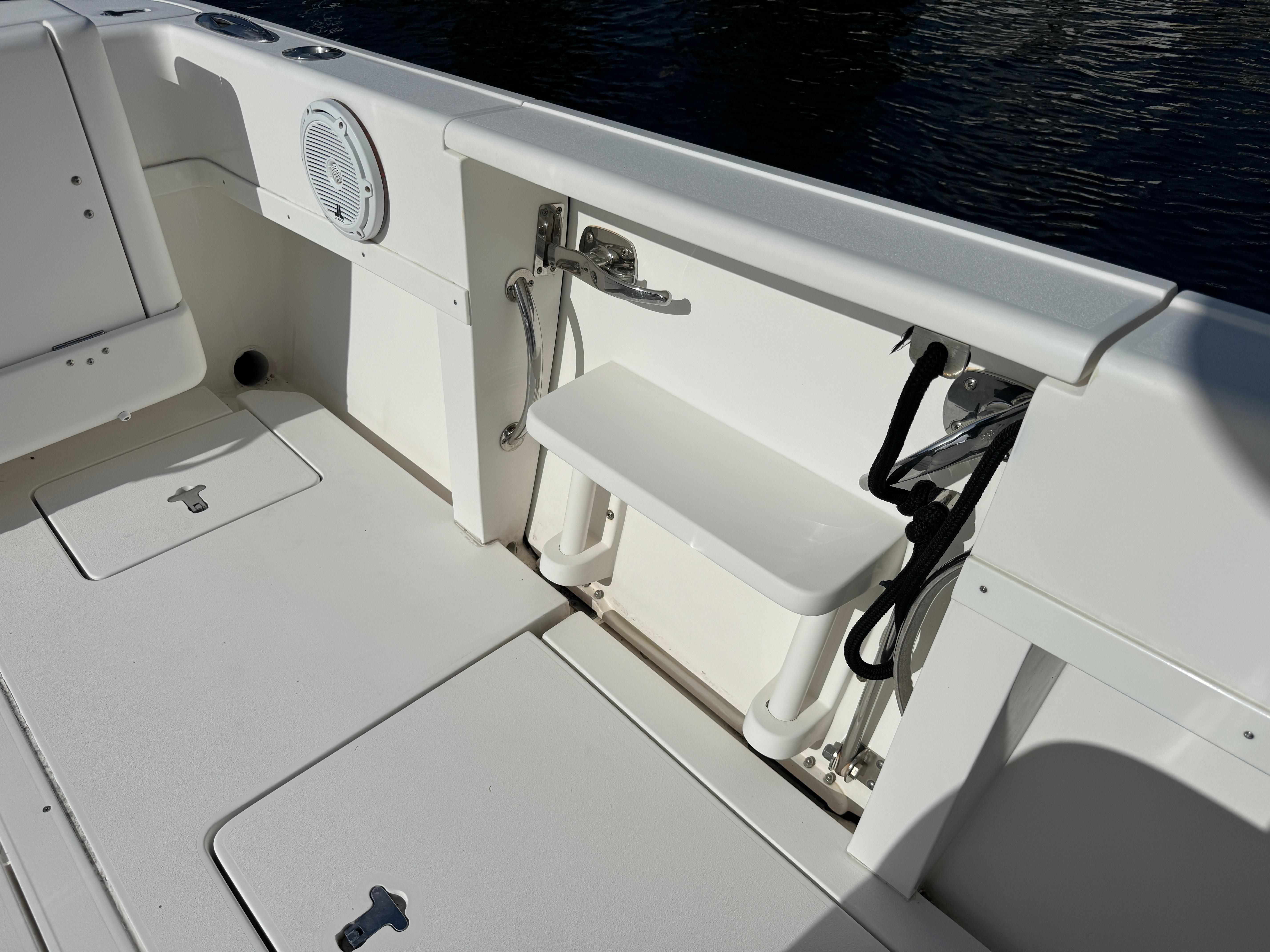A roomier cockpit and luxurious forward deck serve as platforms for whatever activity you choose, be it fishing, diving, cruising or entertaining. Incredible storage capacity accommodates extra large rod lockers, fish boxes, bait wells, coolers, dive gear and more. Also designed to serve as the ideal on-board yacht tender, it’s convenient to trailer or tow.
