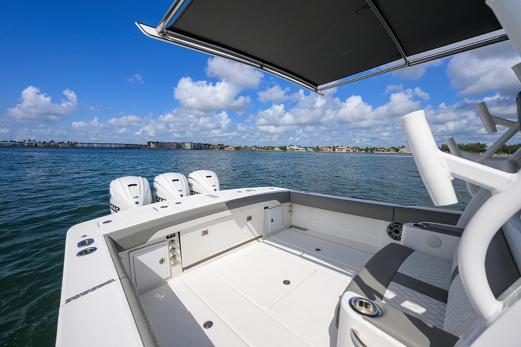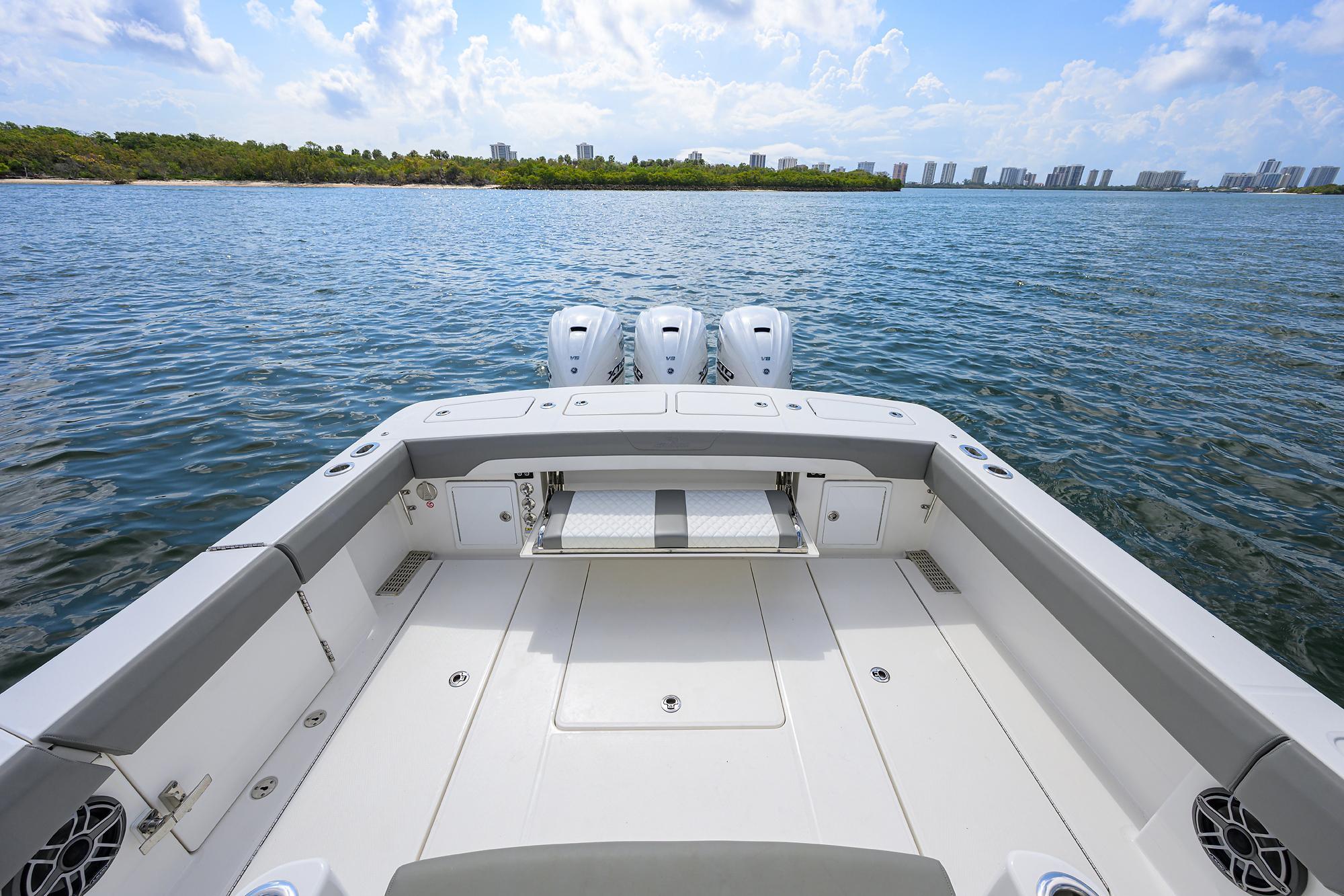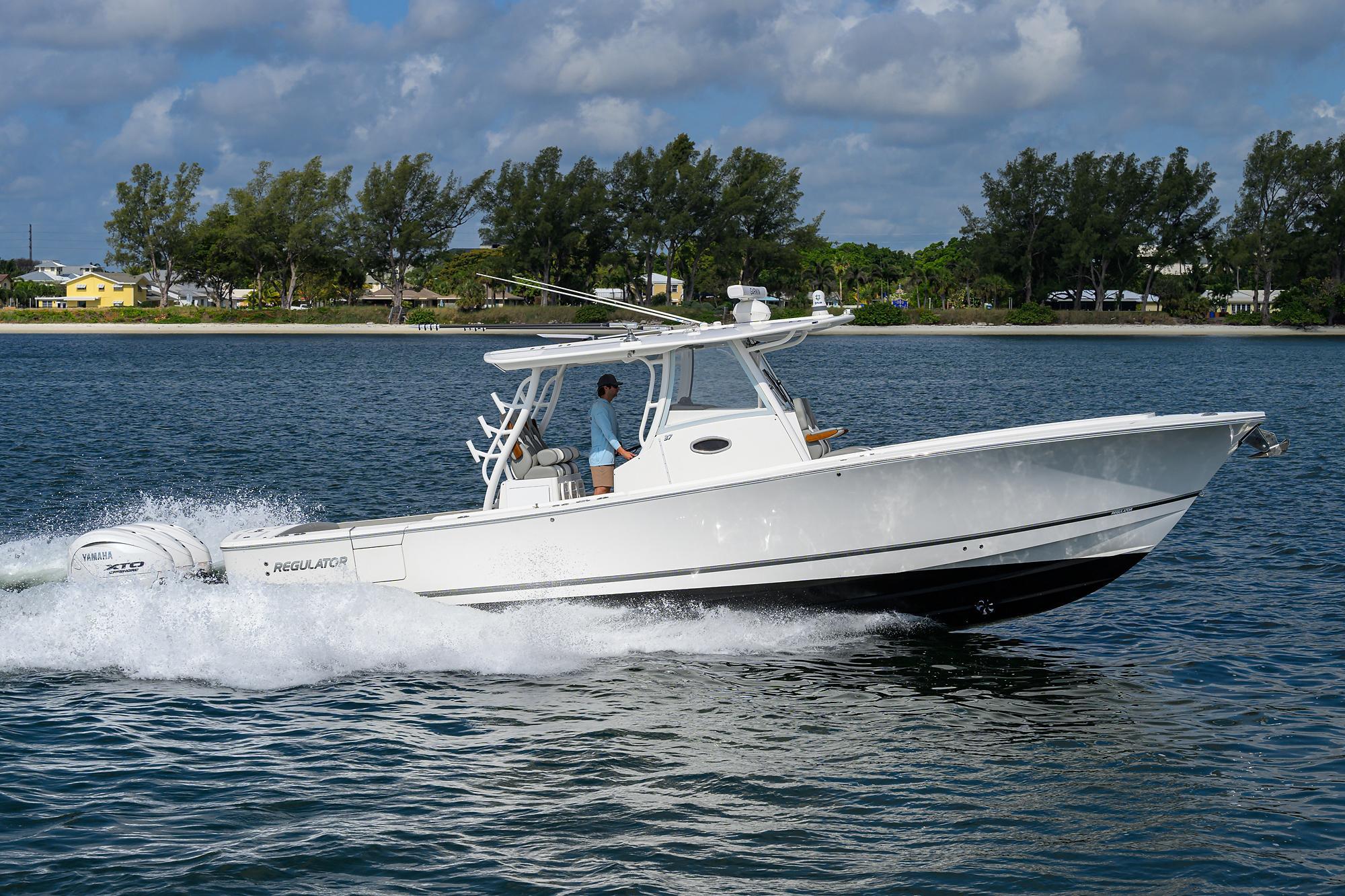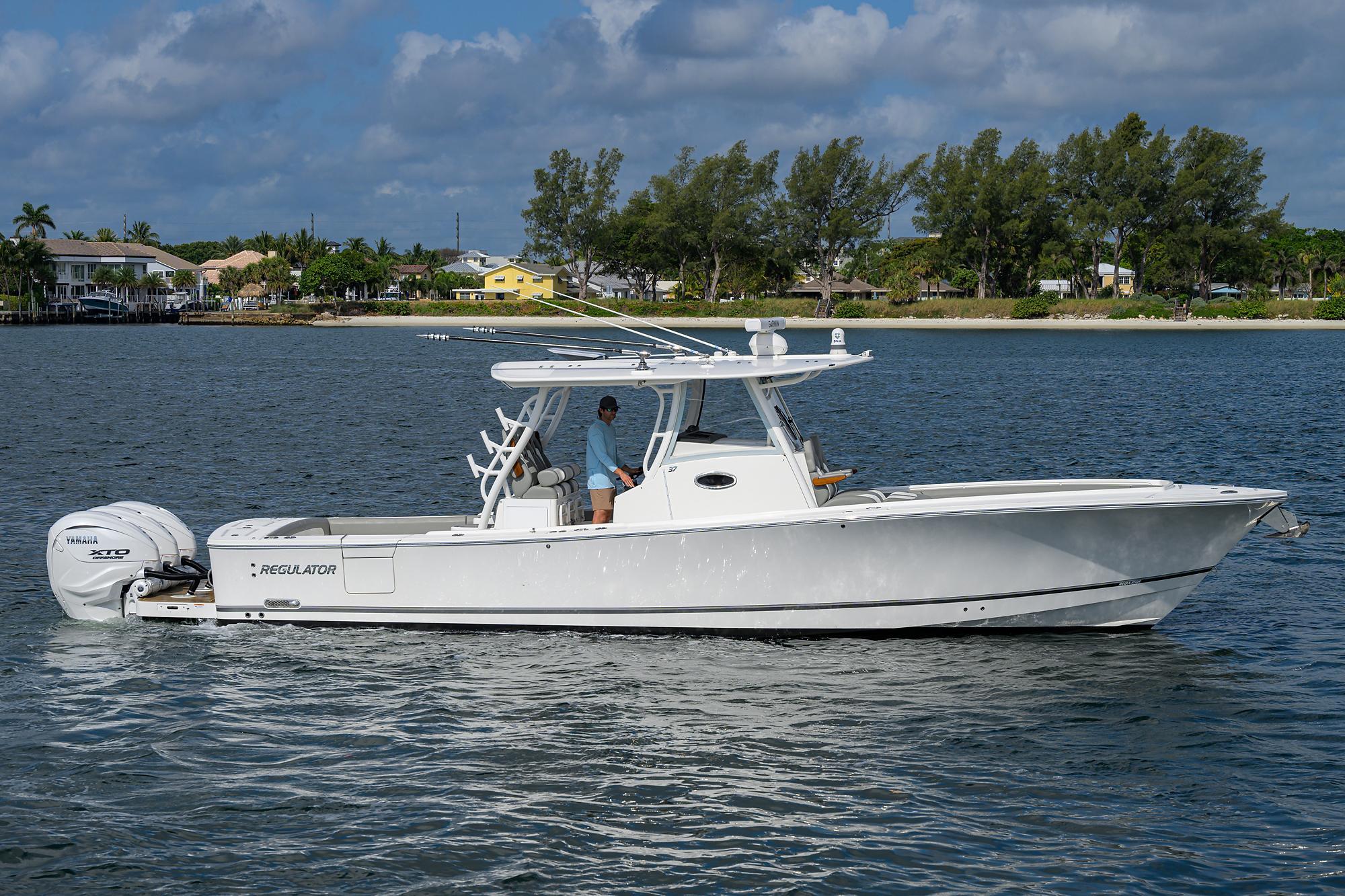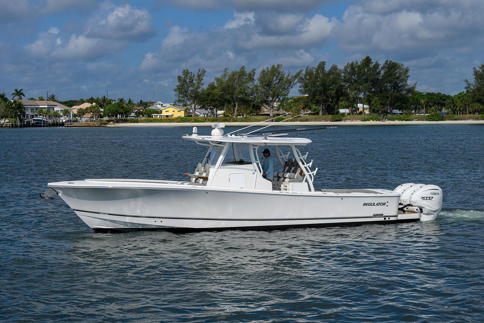 Bring all Offers! Cleanest 37' on the market. Low low hours. Loaded with every option Regulator has... fishing package and upgraded stereo system! SeaKeeper 5 | StarlinkTriple White Yamaha XTO Offshore® 450 4-Stroke Engines with DES Tilt Helm and DEC – Plus Helm Master® EX Joystick w/ Multimode Set Point™Garmin Offshore 37 package: Dual 22" GPSMAP 8622 Multi-touch widescreen chartplotter/ sonar displays, VHF 215 AIS radio with dual 8' antennas, GMR 424 xHD2 4kW Open-array radar, Airmar B275LHW with wide beam 1kW CHIRP transducer and Yamaha EX autopilot, Plus black flushmount electronics face and remote mic.Fully Accessible, illuminated pump room beneath aft bench seatStarboard boarding and dive door with removable folding ladder311 qt in deck insulated, illuminated, macerated aft fishbox (2)Refrigerated transom fishboxEX Autopilot with Waypoint DecelerationElectronic Key Switch with Wireless FobSynthetic Teak Marine Decking for Bracket Automated Rear Shade-Deep GreyGEMLUX Bluewater Outrigger Bases with 22' Carbon Fiber Collapsible Poles GEMLUX Double Rigger Kit Spray Curtain EnclosureT-Top Storage CompartmentDiamond Quilted UpholsteryTeak Accents(10) Additional Forward Gunwale Conventional Rod Holders12k BTU Air-Conditioning System with Vents at Helm and Aft Bench Seat Cockpit Freshwater TRIPLE Engine FlushFLIR™ M-232 Thermal CameraHose Coil Racks (2) for Raw Water and Freshwater Wash DownsSynthetic Teak Marine Decking at HelmUnder Gunwale Rod StorageOnan 13.5kW Diesel GeneratorMulti-Colored Underwater LED lights (2)Electric reel hookups (2)