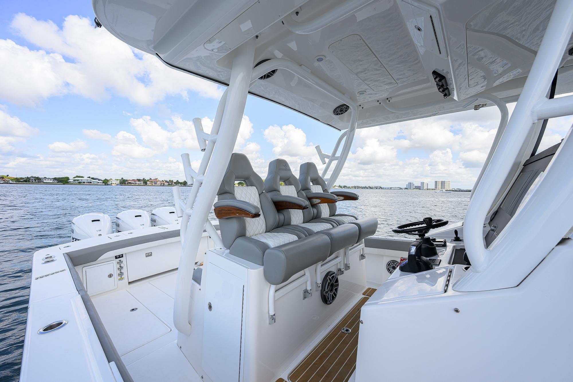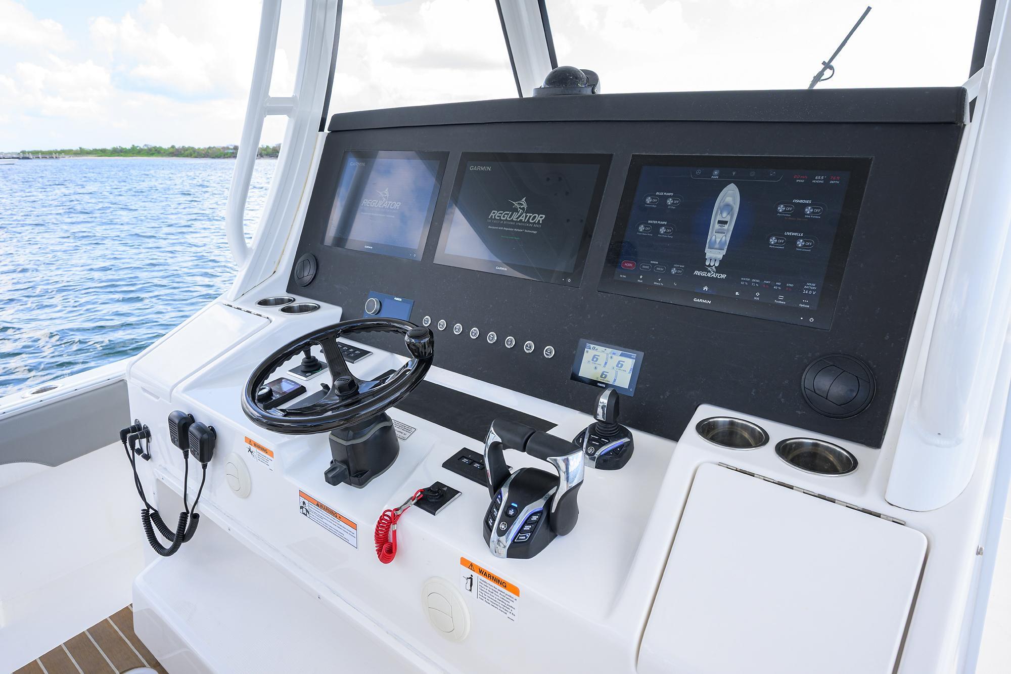 - NEW! Offshore Command Center: Features Garmin® Multi-Function Displays with Digital Switching and Monitoring, Proprietary Regulator MyHelm™ Interface for Seamless and Intuitive Connectivity of Key Functions via Touchscreen, and Wireless Key Fob