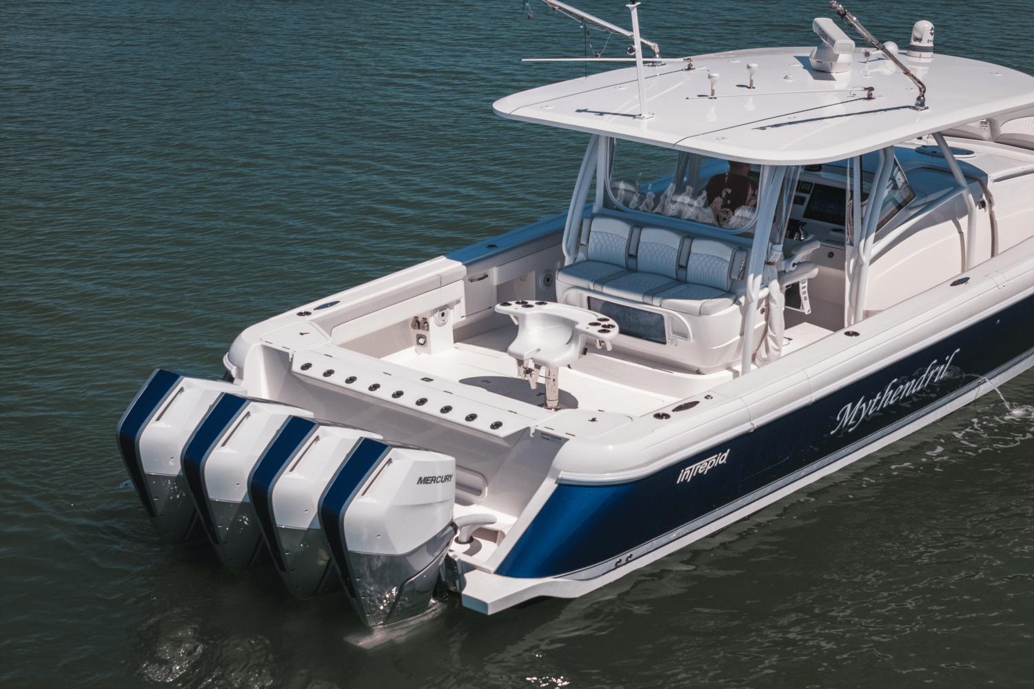 2022 Intrepid 475 Panacea – “Mythendril” | Quad Mercury V10 Power | Turn-Key ExcellenceIntroducing Mythendril, a striking example of the highly sought-after Intrepid 475 Panacea—expertly repowered with brand-new quad Mercury 400 V10 engines (with Platinum warranty until 8/2027) for exhilarating performance and uncompromising reliability. Renowned for its versatile layout, unmatched build quality, and offshore capability, this 47' Intrepid blends sportfishing prowess with luxury cruising comfort.From her deep-V hull and signature smooth ride to the expansive bow lounge, premium helm seating, and thoughtfully appointed cockpit with integrated dive door and livewell, Mythendril is equally equipped for tournament fishing, elegant entertaining, or weekend escapes. Whether you're chasing pelagics or relaxing at the sandbar, she delivers a refined, commanding presence on the water.This vessel shows pride of ownership throughout and is ready for immediate enjoyment—no waiting, no compromises. Mythendril is the turnkey performance center console you’ve been waiting for.Some Key electronic features:Electronics & Audio/VisualThis Intrepid is outfitted with a comprehensive Garmin and JL Audio package, designed for serious offshore navigation, entertainment, and safety.Navigation & Helm SystemsDual Garmin 8622 multifunction displays with twin GPS antennasGarmin Fantom 54 Open Array RadarGarmin steer-by-wire autopilot with wireless controllerGarmin GSD26 sounder module with dual 1kW chirp transducers (high & low)Garmin GMI20 digital depth display and weather systemGarmin network hubs, NMEA2000 backbone, and full engine data interfaceCommunications & SafetyIcom M400BB VHF with flush-mount kitKahlenberg single trumpet air hornFLIR M332 night vision camera with riser kit and dedicated cablingGost NavTracker insurance/security packageAudio/EntertainmentFusion Apollo stereo head unit with USB interface and satellite radio tunerJL Audio system including:Four pairs of 7.7" JL speakersTwo 10" JL subwoofersJL 8-channel amplifier and dedicated sub ampCustom wiring, speaker wedges, and professional installationAdditional EquipmentSmart ducer, deep drop outlets, and custom hydraulic hose kitHigh-quality 8' digital VHF and AM/FM antennas with ratchet mountsProfessional installation with dockside commissioning by Intrepid factory and local electronics specialists