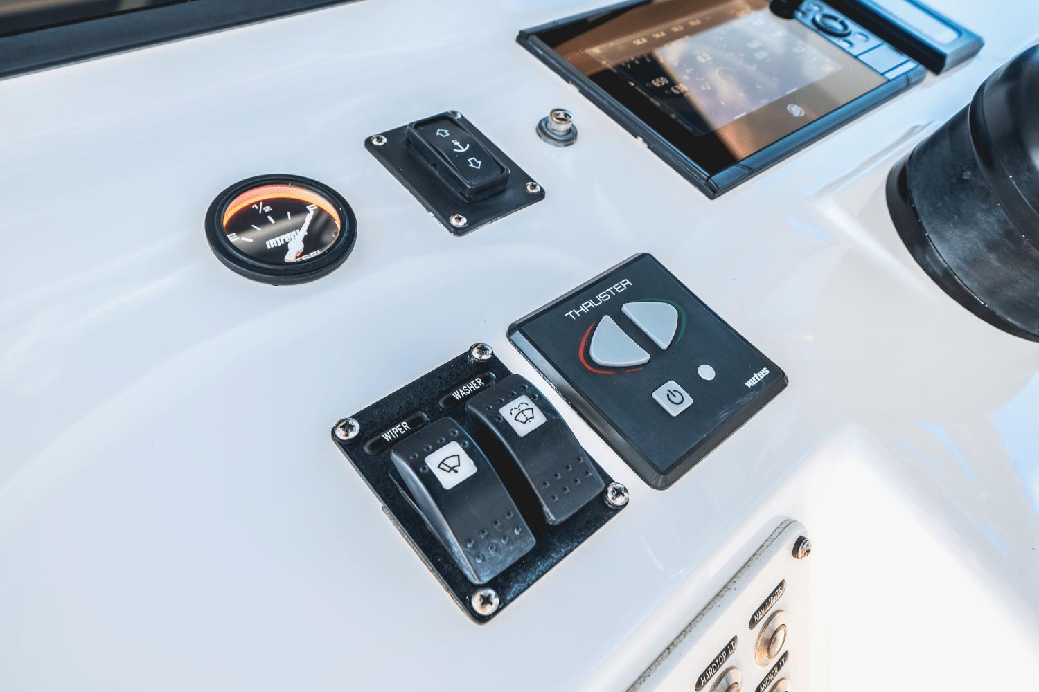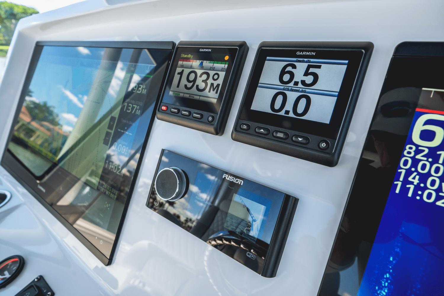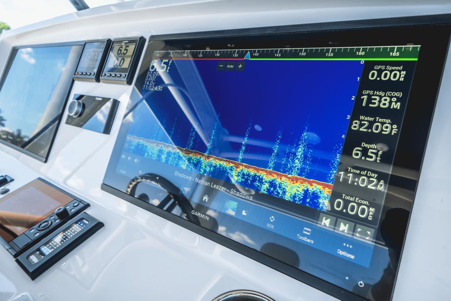 The helm of Mythendril is a commanding center of technology and performance, designed with both the seasoned mariner and modern adventurer in mind. Outfitted with a state-of-the-art Garmin electronics suite, the vessel offers redundant, crystal-clear navigation and fish-finding capabilities on dual large-format multifunction displays. These high-resolution touchscreens provide full access to: