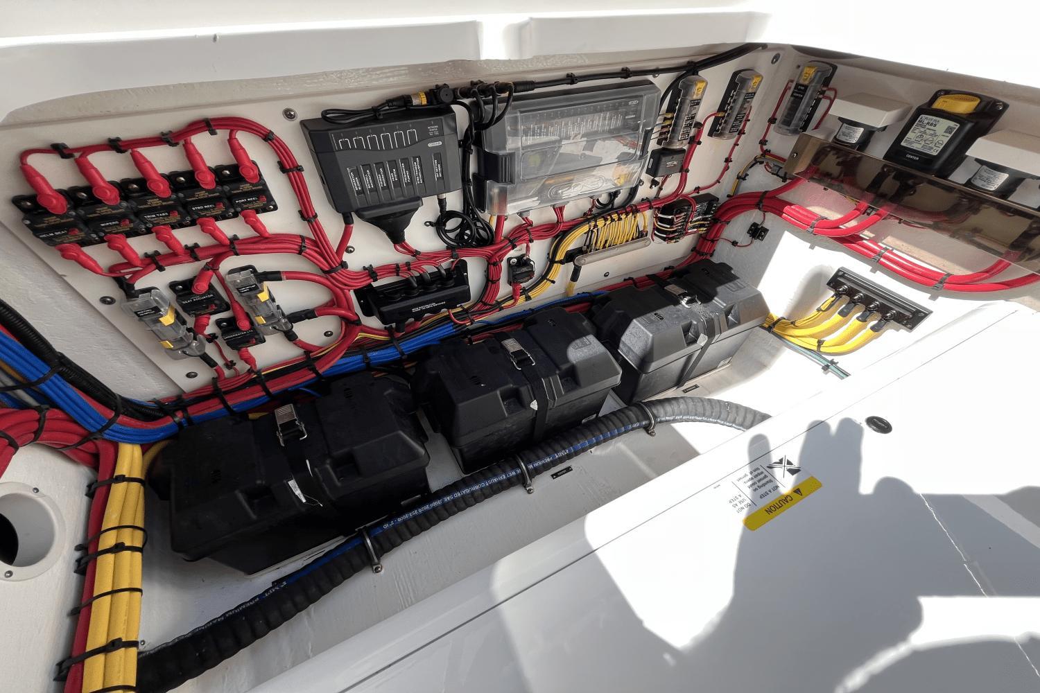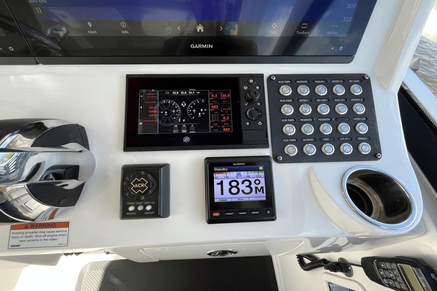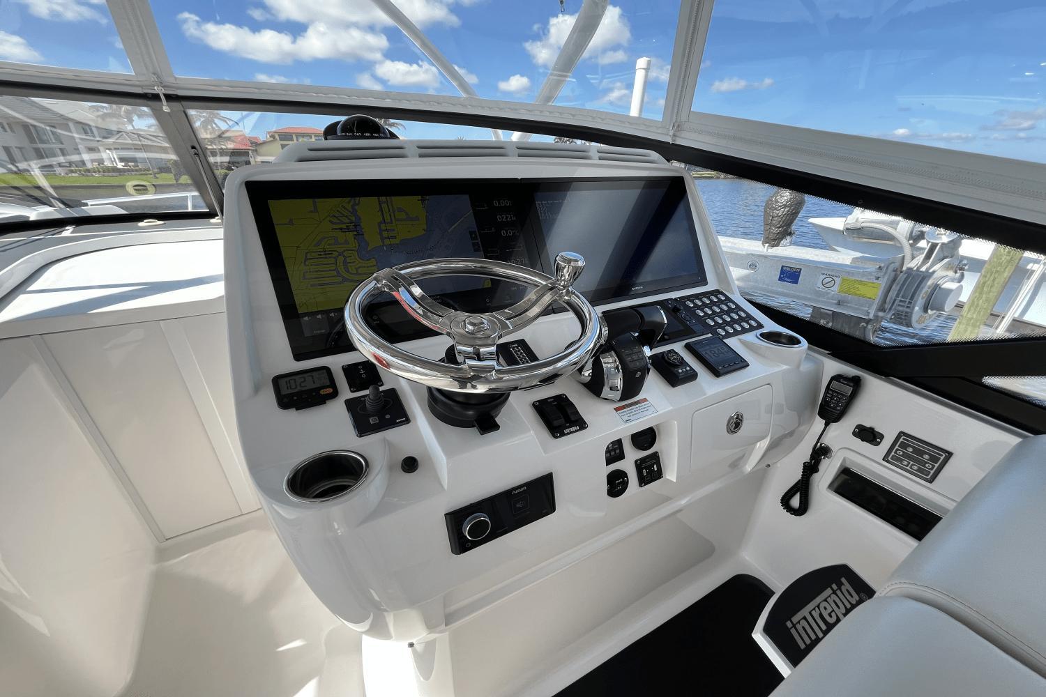 This Gorgeous 438 Evolution is very well optioned is exceptionally clean and was cutom ordered/built for the original owner. Intrepid chose this 438 to use in their 438 video for You Tube, please see the video link. There are 329 hours on her 450 Racing Engines and were serviced last in October 2024. This vessel has been summer stored at River Forest in Labelle Florida in the middle of the state so she has never had any Storm Damage.Please contact the Listing Broker for your personal viewing appointment.Optional Equipment:Triple Mercury 450 Racing Engines - 329 Hours - Serviced October 2024Extended Range Fuel Tanks - 548 GallonsEngines Custom DecalsTriple Engine Automatic Flush SytstemHull side Paint Mercedes-Benz 047 Aluebeam Silver AMG ImronBoot Stripe N0759 Flaming RedUnderside of Hard Top Painted High GlossHull side dive door with swim ladderStainless steel windshield frameCustom Fiberglass arch 438Trim Tabs - Hydraulic Hi-PerformanceBigle Pumps (4) - High Water Alarm aft bilge pumpShore Power with Battery Charger2nd Shore Power Cord 30 amp with 50 foot cordBow ThrusterWindless - Stainless Steel Anchor with 300 feet of Stainless Steel ChainUpgraded Generator - Kohler 11 KWElectric Hot Water HeaterCustom Helm Seat, Dual Pedestal Electric Up/Down/Fore/AftFold Under Swim LadderCockpit Coaming BolsterElectric HeadMacerator for Holding TankAir Conditioning CabinAir Conditioning CockpitSolid Surface Counter TopWood Flooring Cabin and Bath SoleIcemakerSingle Burner StoveTransom Shower Hot and ColdFolding Rear Bench SeatFreshwater Wash Down for Anchor525 Gallon Fuel - 50 Gallon DieselCockpit Lights LED (4)Belloca Steering Wheel with Deluxe KnobRaw Water WashdownStarboard and Port Livewell with Window and LightDiamond Pattern Upholstery Upgrade for Cockpit Seating7 Rod Holders Built into Splash Well6 Rod Holders on Aft Hard Top4 Mate Series Rod Holders on Gunwale2 Led Spreader Lights Aft of Top6 Lights on Underside of Hard TopRecepticles for Electric Reels in CockpitExtra 110 Volt Electric Outlet in Cockpit AftExtra 110 Volt Electrical Outlet underneath DinetteUnder Water Lights - 2 facing aft, 2 facing down67.7 JL Audio Speakers on Underside of Hardtop Flush MountedAdded USB Outlets to Cabin and Master StateroomCustom Single Drawer Refrigerator in GalleyWatermaker - Is pickled and needs new membrane filtersTwin Garmin Screens with Chartplotter, Radar and Fish FinderGarmin Auto PilotIcom VHF RadioAigen Antenna for WiFi and Sat TvWhite Stamoid Covers for cockpit seatsWhite Stamoid Covers for front and side windshieldsWhite Stamoid Cover for aft cockpitAft Cockpit SunshadeListing Broker - Brian Kemmis 239-222-5907