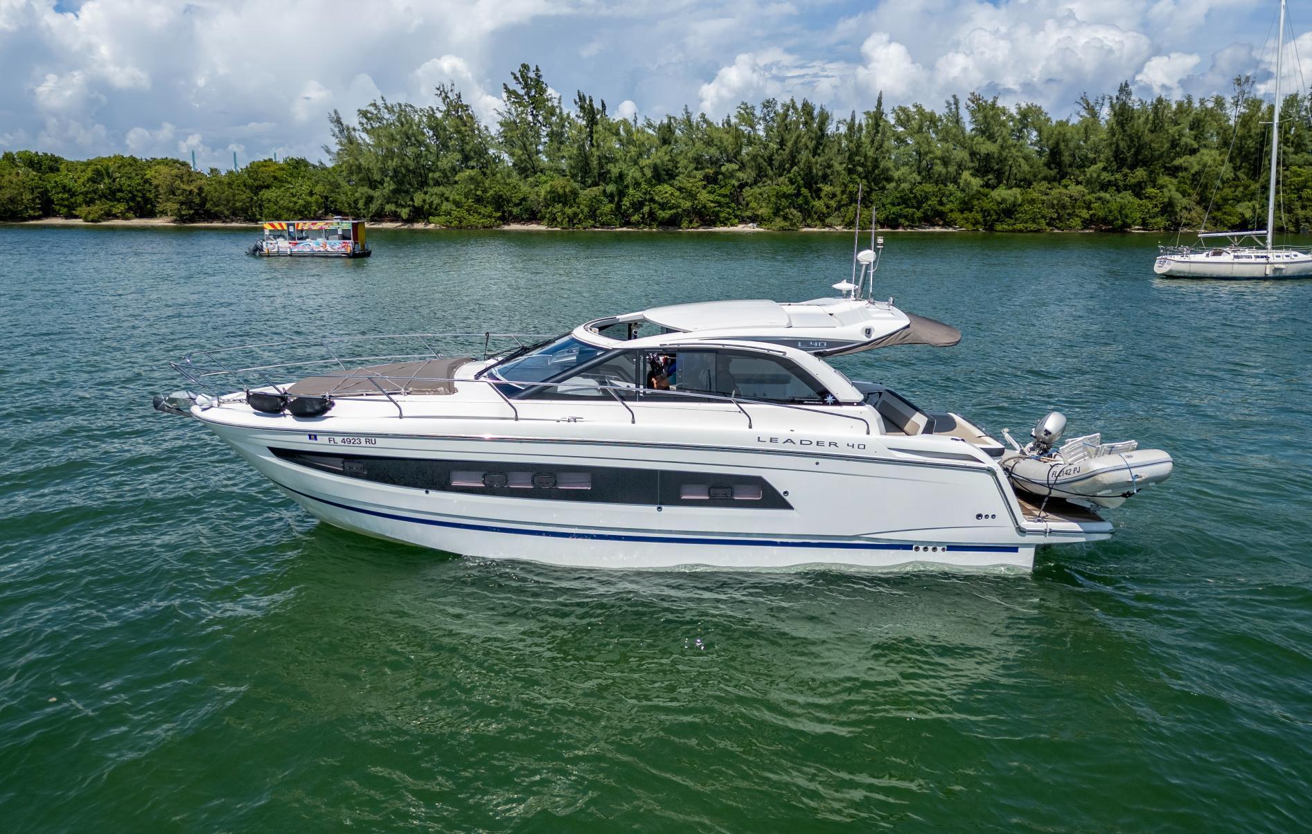 20,000 PRICE ADJUSTMENT! QUALITY TRADES CONSIDERED! Discover the perfect blend of performance, style, and reliability with this 2019 Jeanneau Leader 40. This sleek and modern sport cruiser is powered by twin Volvo Penta Diesel D6 engines with stern drives, renowned for their efficiency and dependable performance. These engines have been meticulously maintained, with recent servicing ensuring they are in top condition for your next adventure.One of the standout features of this Leader 40 is its lift-kept status, meaning the hull has never been exposed to the elements for extended periods, and no bottom paint has been applied. This pristine condition not only enhances performance but also preserves the boat's value.Key Specifications:Length Overall: 40 ftBeam: 12 ft 5 inEngines: Twin Volvo Penta D6 Diesel Engines with Stern DrivesEngine Hours: Low Hours, Recently ServicedFuel Capacity: 200 gallonsWater Capacity: 87 gallonsCabins: 2 Spacious CabinsHeads: 1 Full Head with Separate ShowerTop Speed: Approx. 33 knotsCruising Speed: Approx. 26 knotsStep aboard to experience a luxurious interior featuring two well-appointed cabins, a full head with a separate shower, and a spacious salon with plenty of natural light. The cockpit is designed for entertaining, with ample seating, a wet bar, and easy access to the swim platform.Whether you're cruising along the coastline, enjoying a day of water sports, or planning an extended voyage, this Jeanneau Leader 40 offers the perfect balance of comfort and performance. Ready for immediate delivery and adventure, this boat is a must-see for serious buyers.Contact us today to arrange a viewing and step into a world of unparalleled yachting pleasure with the 2019 Jeanneau Leader 40.