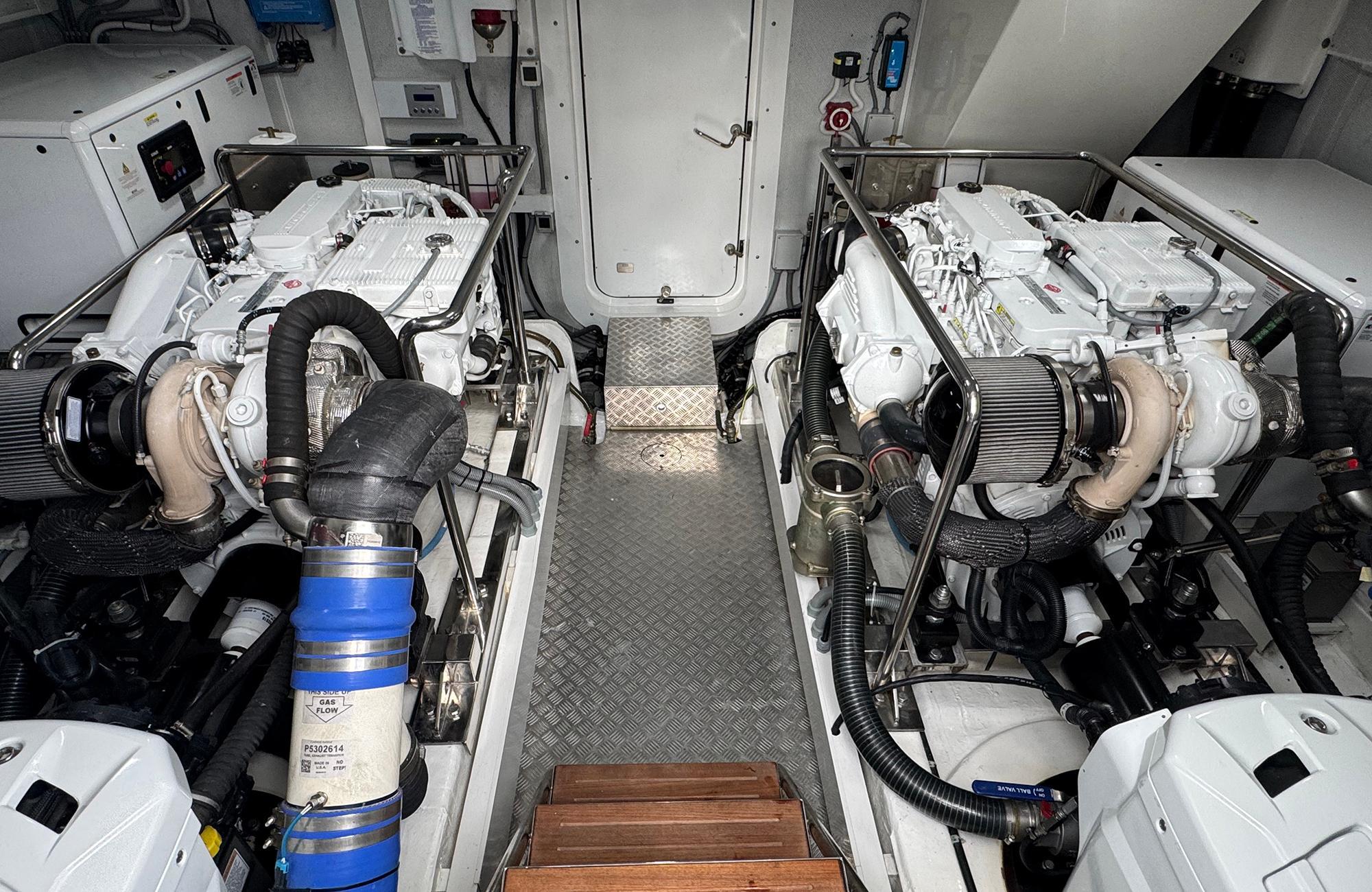 - Stairway built-in to port and starboard side from swim platform to aft deck with stainless steel tube gate doors