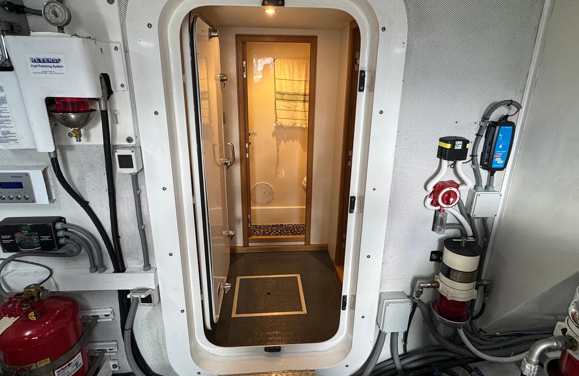 - Fuel fill fittings for tanks recessed into house side and starboard locker