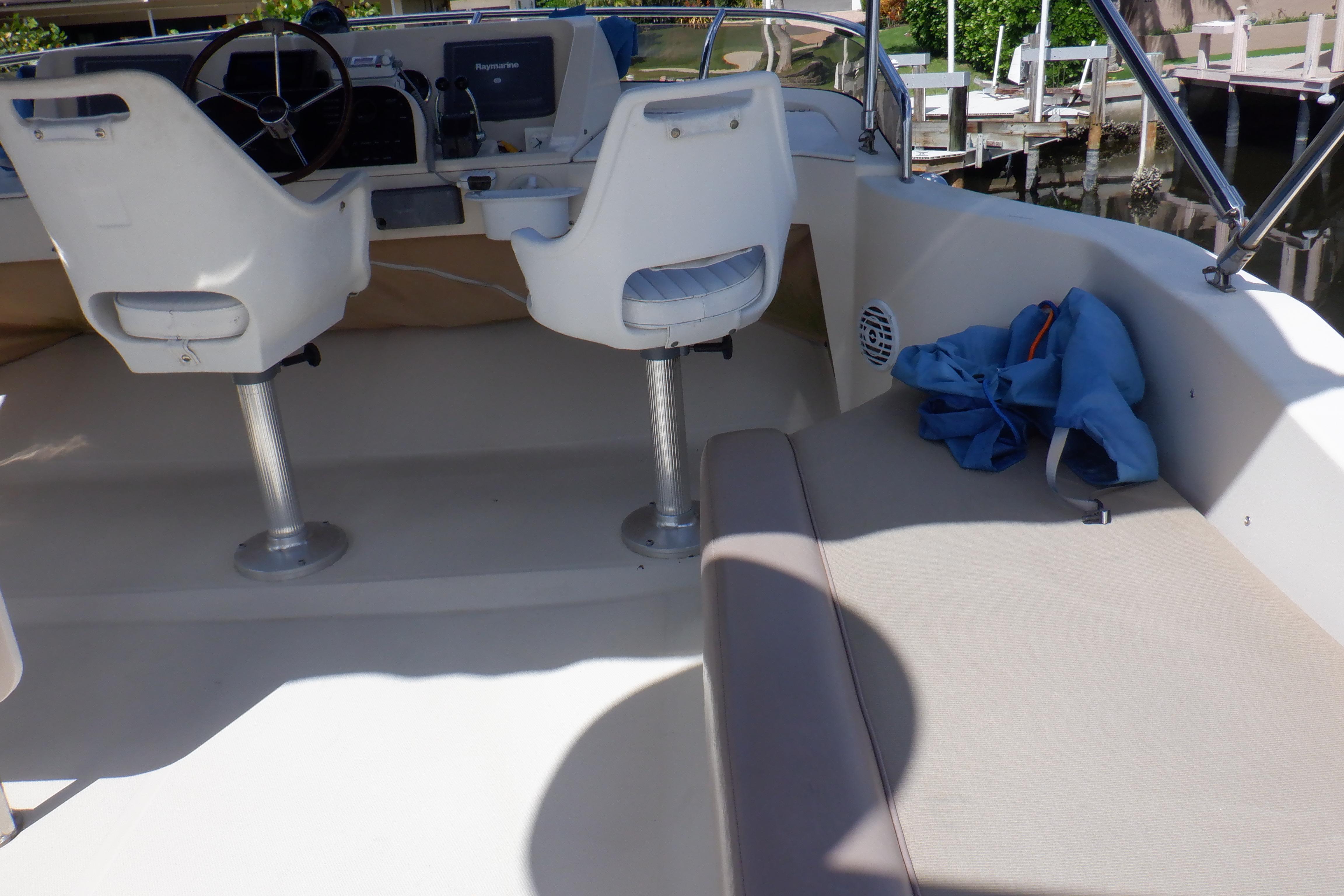 2006 Mainship 34 Trawler – Twin Yanmar Diesels, Generator, A/C, Blue Hull – Must Sell!Major Price Improvement Now $129,000Explore the water in comfort and style with this well-equipped 2006 Mainship 34 Trawler—a true cruising flagship built for liveaboards and long-range adventurers. Featuring twin 240HP fresh water–cooled Yanmar diesel engines, dual-zone air conditioning and heat, 8kW Kohler generator, and flybridge.Needs Attention (Price Reflects AS IS Condition):Hull sides need paintingNeeds Bottom paintNeeds Bridge enclosureNeeds Electronics upgradedKey Features:Twin Yanmar 240HP Diesels – Fresh water cooled with recessed props for shallow water cruisingDual-Zone Air Conditioning & Heat – Climate control in salon and stateroomKohler 8kW Generator – Quiet and efficient onboard powerFlybridge – Comfortable upper helm with ample seatingBeautiful Custom Wood Flooring – Throughout salon and stateroomSpacious Accommodations:Sleeps 4: Private centerline queen master stateroom + ultra-leather salon sleeper sofaCedar-lined closets, reading lights, cherry wood interior, halogen lightingEntertainment Ready: Flat-panel TV, Bose speakers (salon & flybridge), Denon stereoFully-Equipped Galley:Corian countertops, stainless steel sink, designer faucetMicrowave, two-burner electric range, AC/DC refrigerator/freezer, and generous storageNavigation & Electronics:Raymarine E-80 Radar & GPS ChartplotterRaymarine VHF Radio, autopilot with rudder angle indicator, flush-mount compassMechanical & Electrical:Dripless shaft logs, bronze struts/rudders, Racor filters, hydraulic steeringHot water heater, GFCI protection, dual 30A shore power, battery chargerHigh water alarm, automatic bilge pumps, bonding system with zinc anodeDeck & Exterior:360° walk-around fiberglass decks, stainless steel rails, anchor windlassFiberglass swim platform with ladder, transom door, molded steps to bridgeFolding mast, dockside water, raw water washdown, custom cockpit cooler
