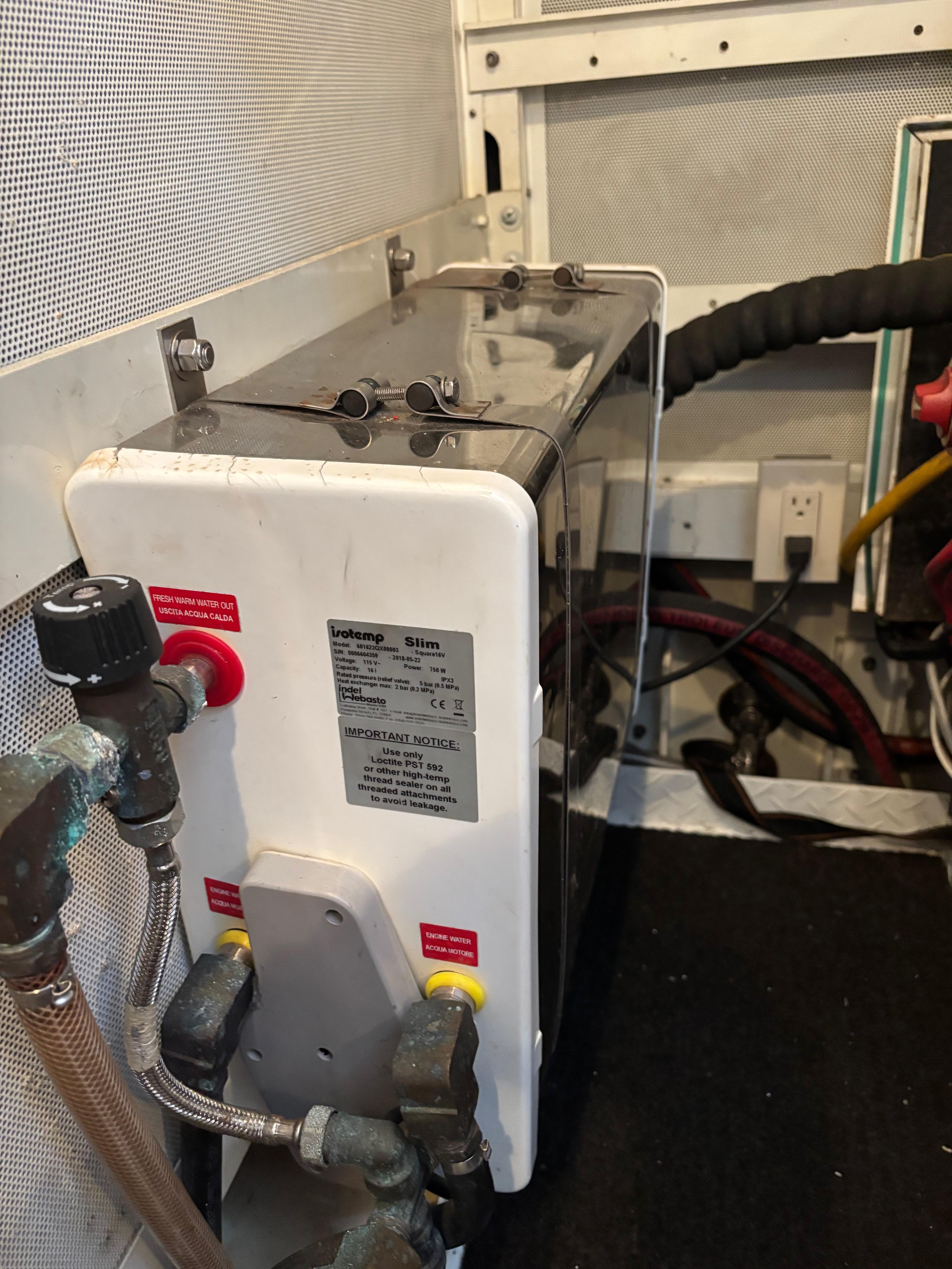 (2) Webasto AirTop 2000 forced air diesel heaters, 2,000W each; one to warm the main salon and another in the aft cabin with extra outlet in the head compartment.