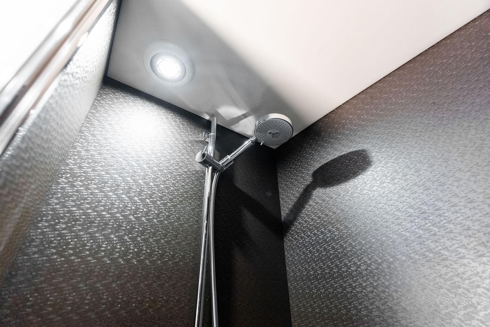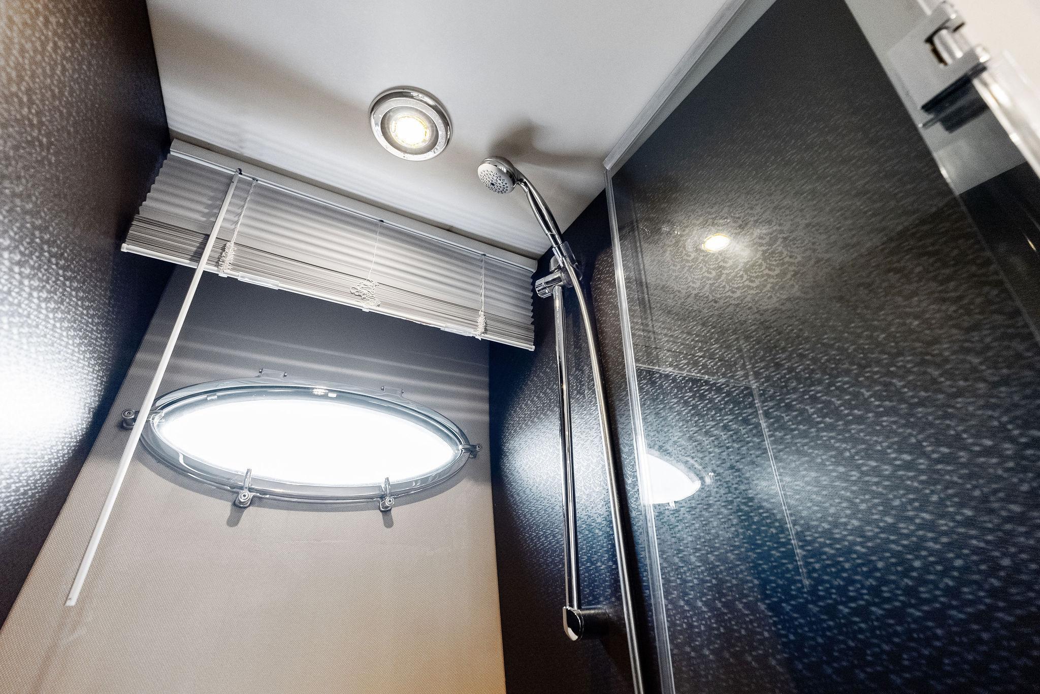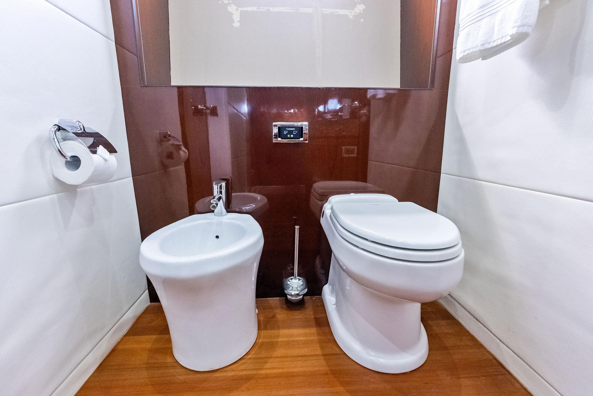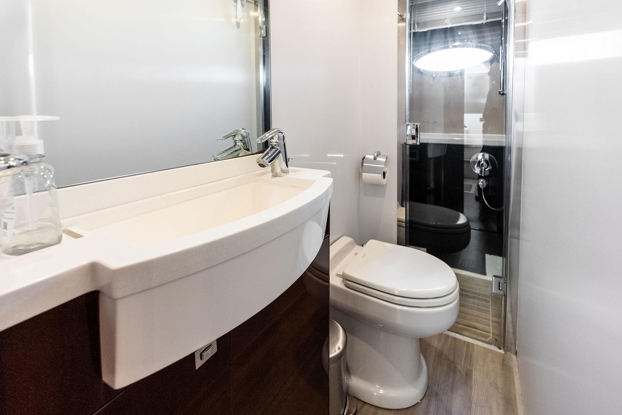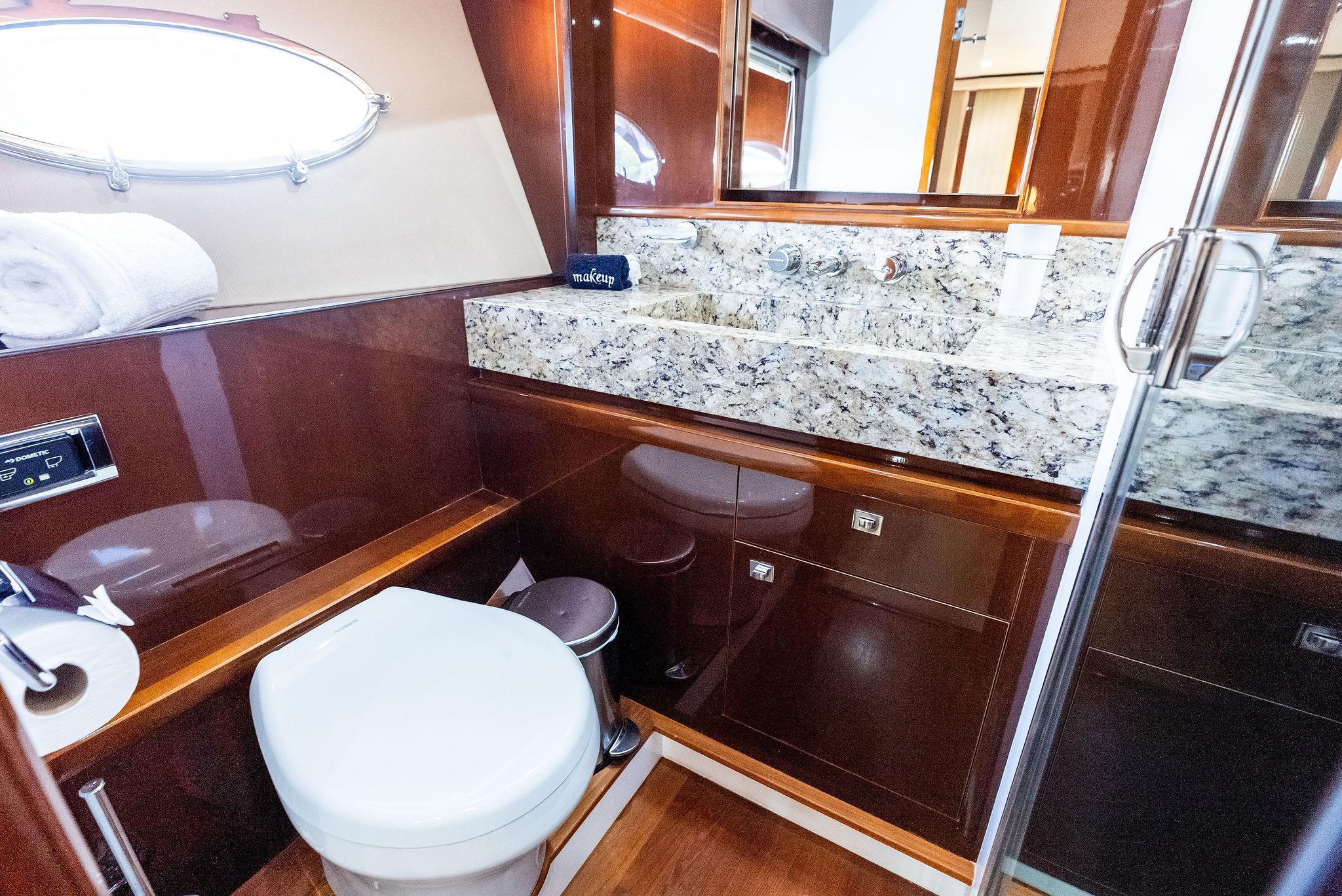 - Separate shower compartment with automatic pump out and custom teak shower sole