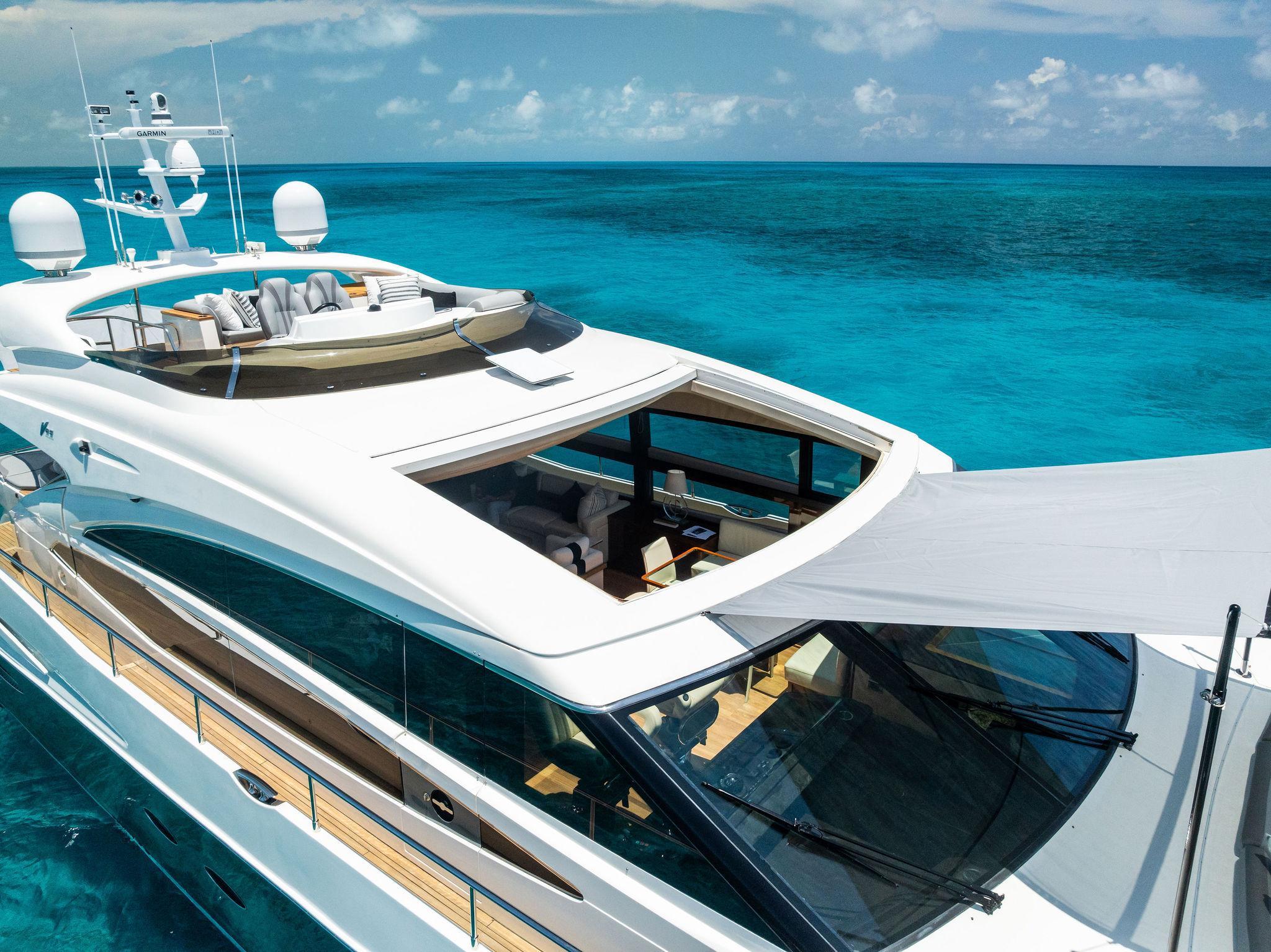2009 Princess V85-S | 85 - MOJO IIEasy to see at Ocean Reef Club, FloridaThis exceptionally rare Princess V85-S, hull # 7, is equipped with reliable, up-to-date CAT C-32 1925 HP engines, delivering a top speed of over 30 knots - perfect for those who love fast yachts and want to reach their destination swiftly. Her bullet proof CAT engines, low generator hours, continual maintenance program, upgrades, and thoughtful options make MOJO II a great, sleek, intimate flybridge express. MOJO II shows as a much newer vessel having received a fresh bottom in May 2025 including prop speed at Norseman. Her teak decks are freshly sanded and all exterior gelcoat shines with fresh wax. The exterior cushions are new.The yacht features four ensuite cabins accommodating up to eight guests, a fully-fitted galley, and well-designed indoor and outdoor spaces. Additionally, she boasts an enormous garage capable of housing a tender and a jetski, making her ideal for enjoying the nautical lifestyle.Privately used by 3 owners, the cabins have all new soft goods with custom mattresses. MOJO II offers the highest specification levels, including a Seakeeper, IG gyros, twin Onan generators, tropical strength air conditioning, bow and stern thrusters, a hydraulic swim platform, and many other features.