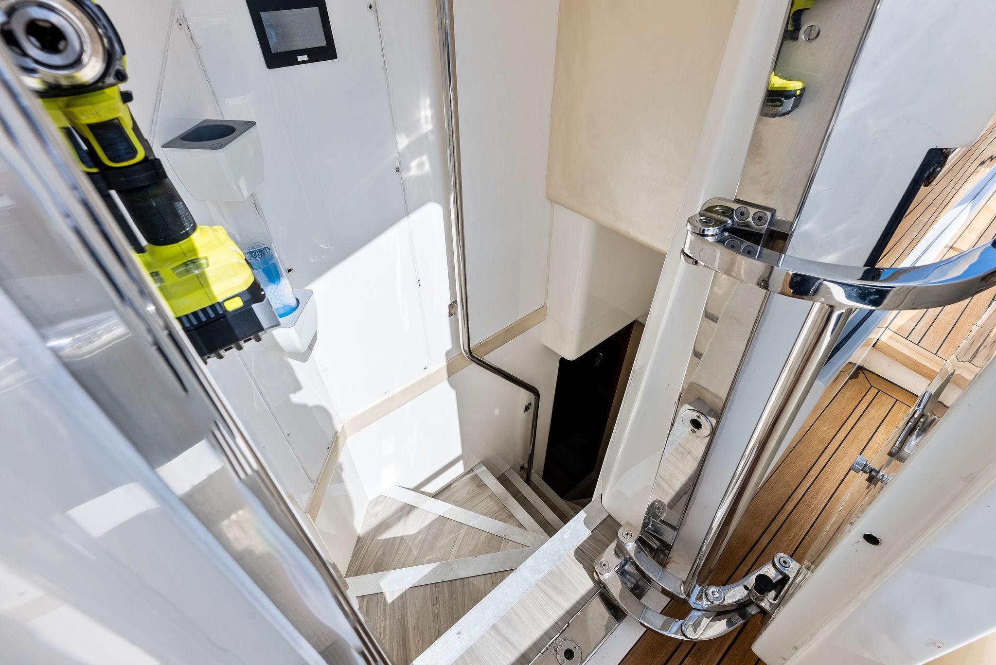 - Stainless-steel framed aft saloon doors (triple sliding)