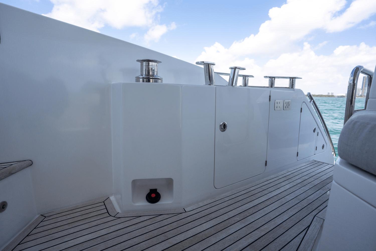 - Teak throughout Yacht on Flybridge, Side decks, and stern steps