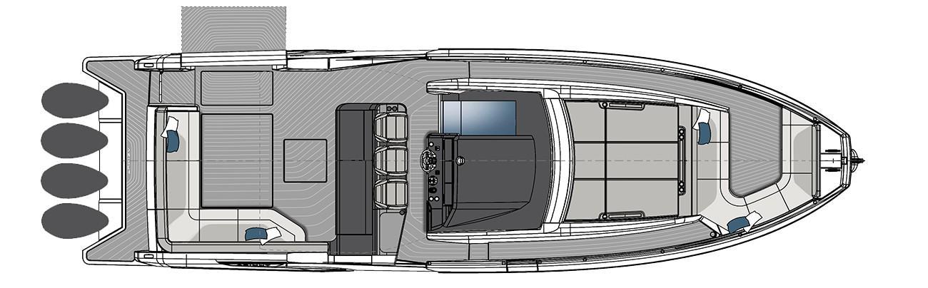 The first sporty and elegant outboard weekender, Verve 40 is more sophisticated than a walkaround, more stylish than a center console and more spacious, safe and sturdy than a day cruise