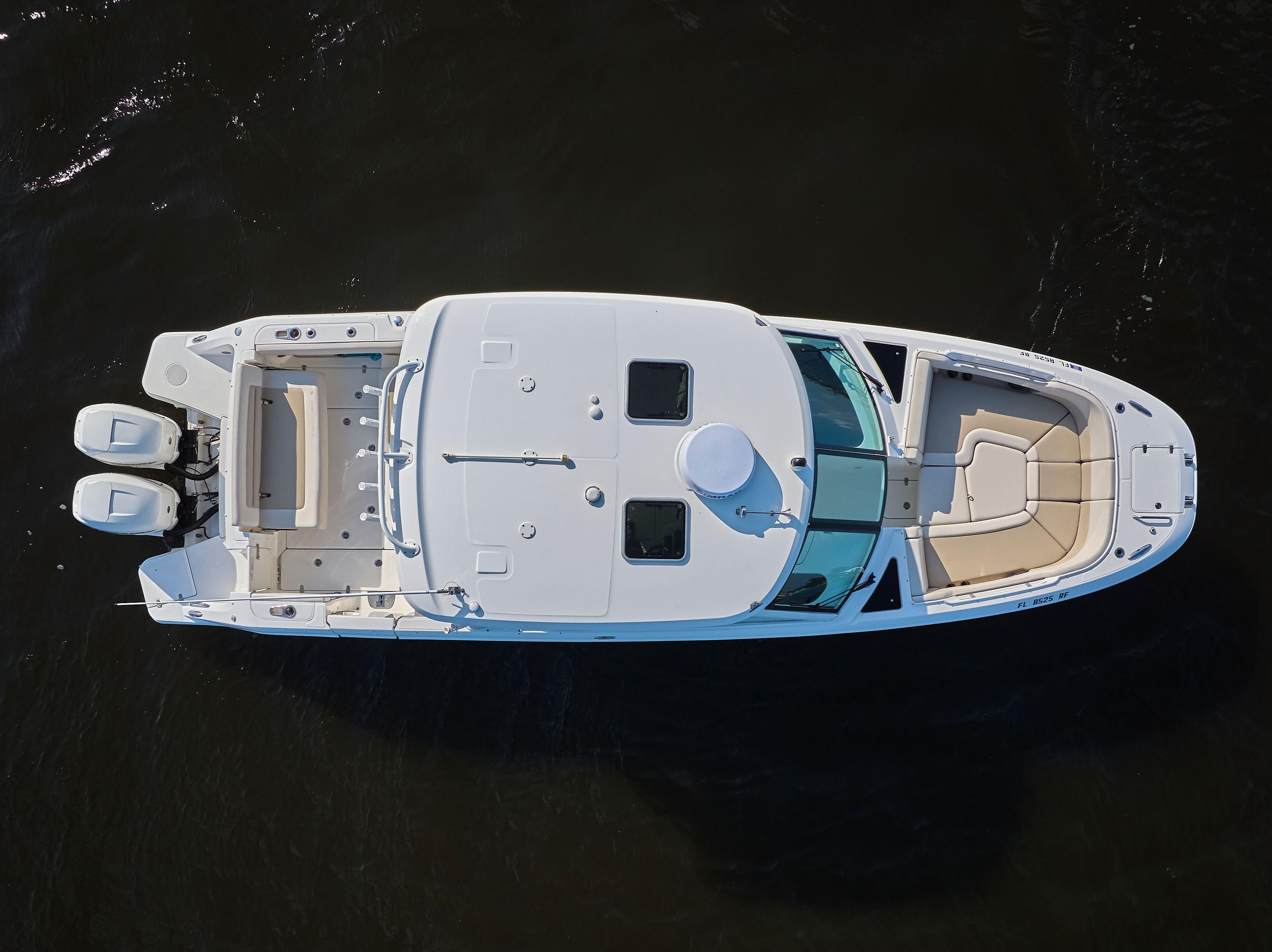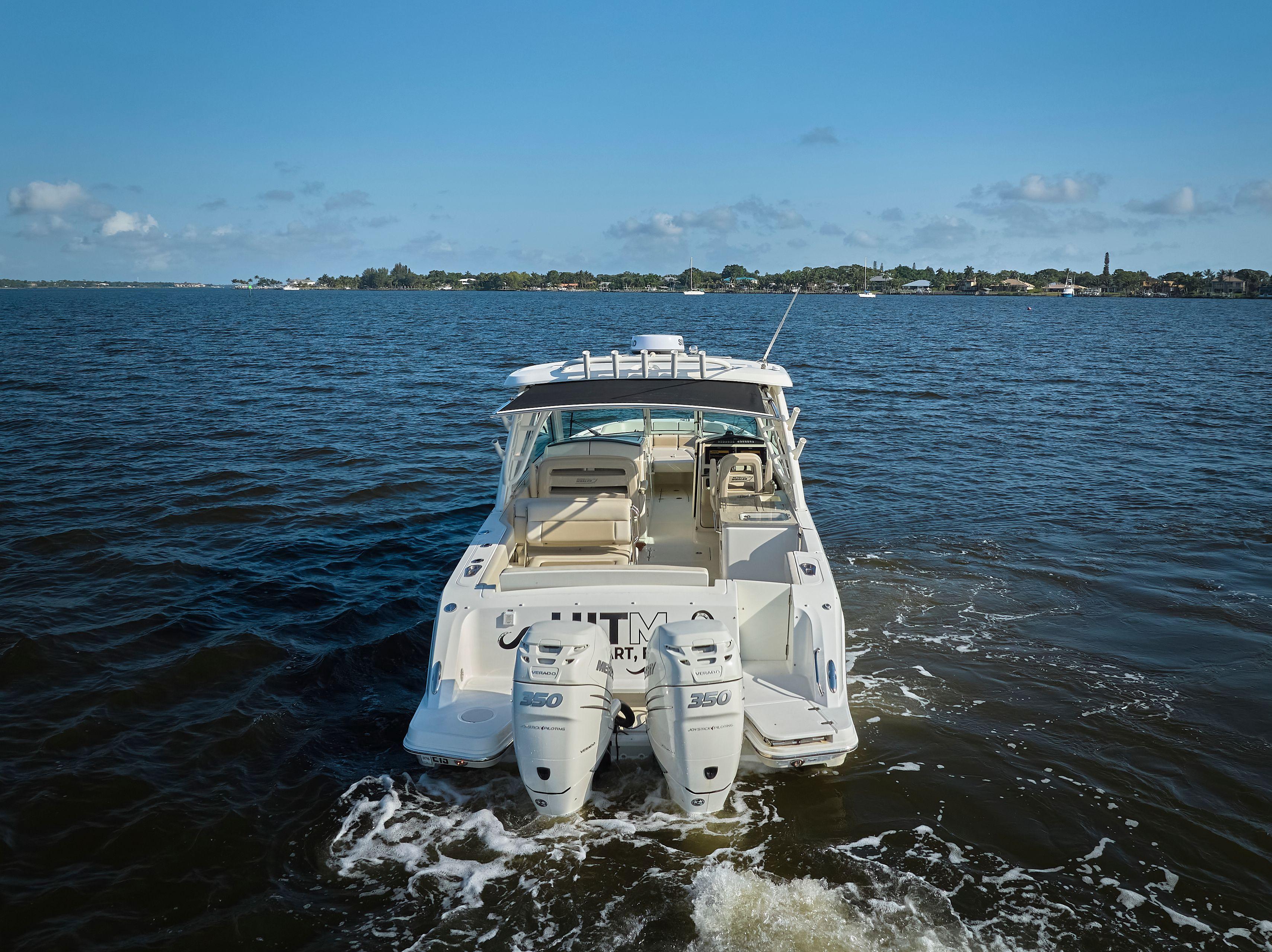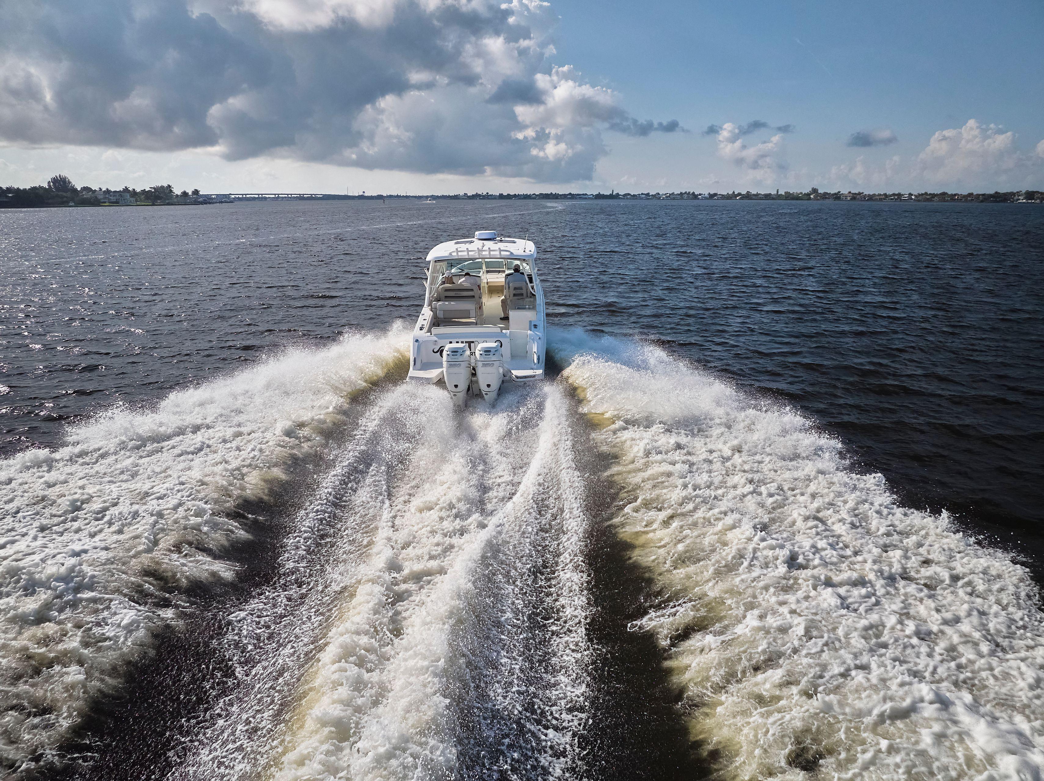 - White Dual Mercury FourStroke 350 Verado engines with hydraulic power steering