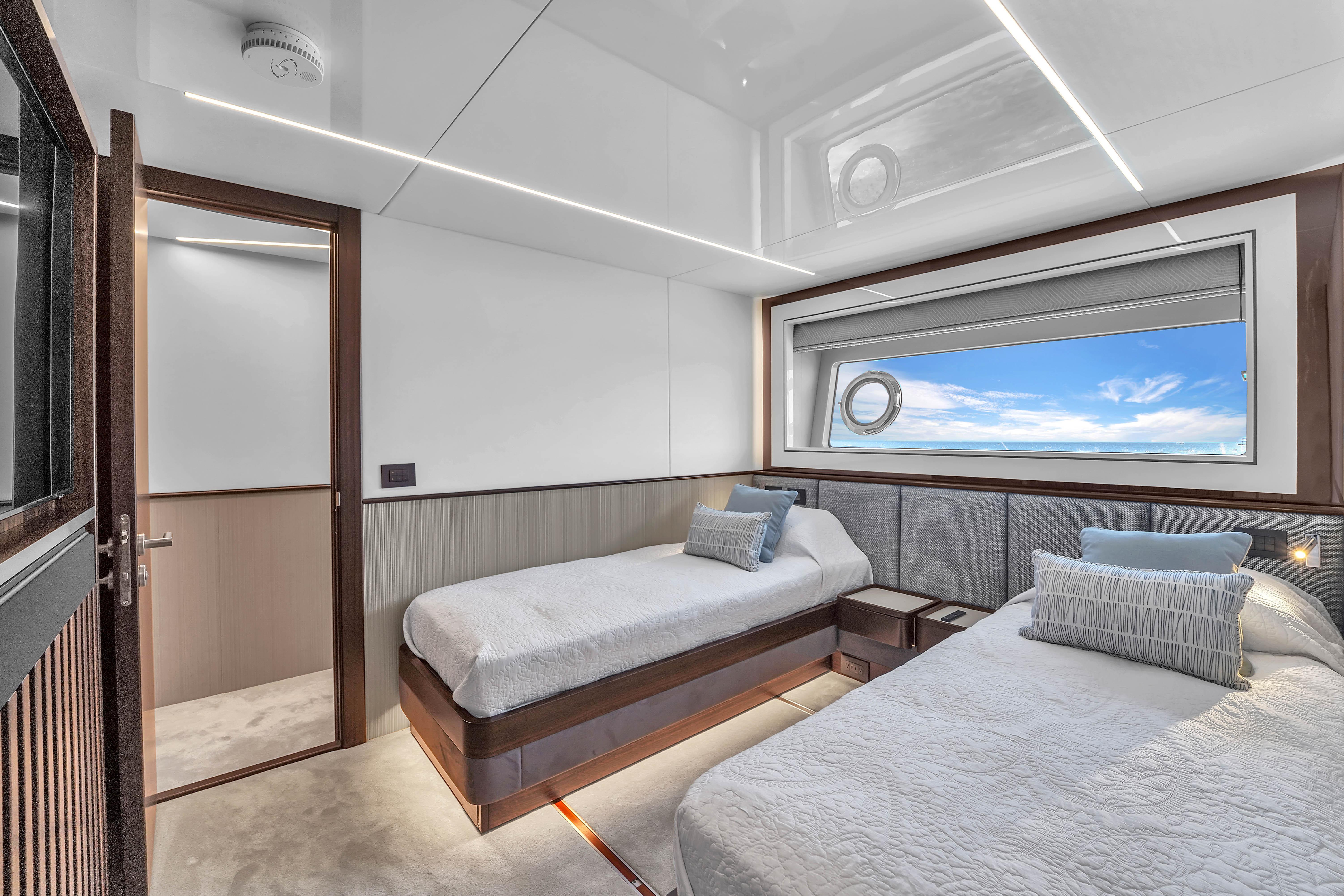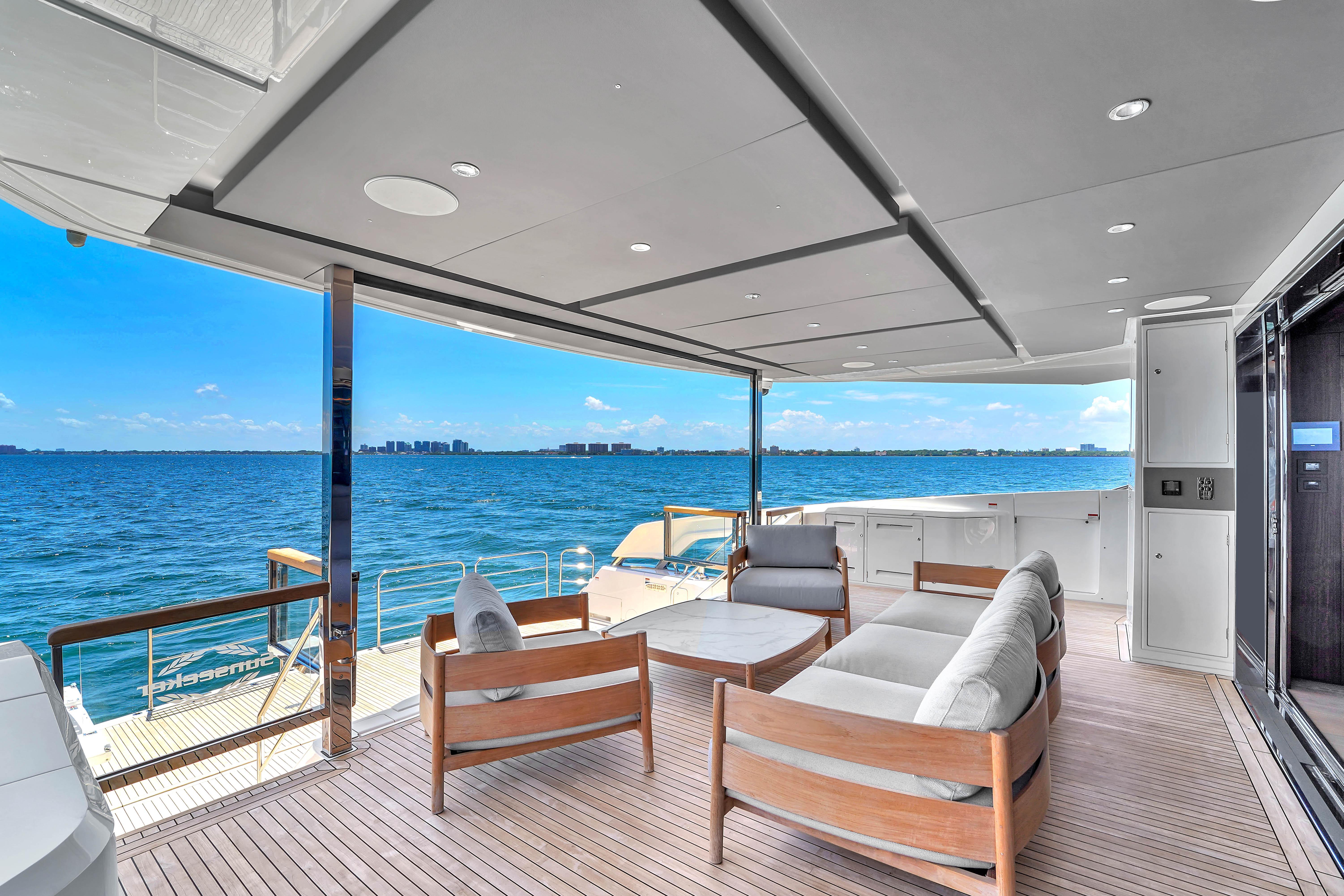 Leasing Option AvailableThe all-new Sunseeker Ocean 182 combines innovative design with spacious luxury, offering a tri-deck layout ideal for long-range cruising. With a beam of 24 feet, this 88-foot yacht maximizes interior volume, featuring expansive salon windows, a stunning upper deck sky lounge, and multiple alfresco entertaining areas. Powered for performance and crafted with Sunseeker’s signature elegance, the Ocean 182 redefines comfort and style on the open sea