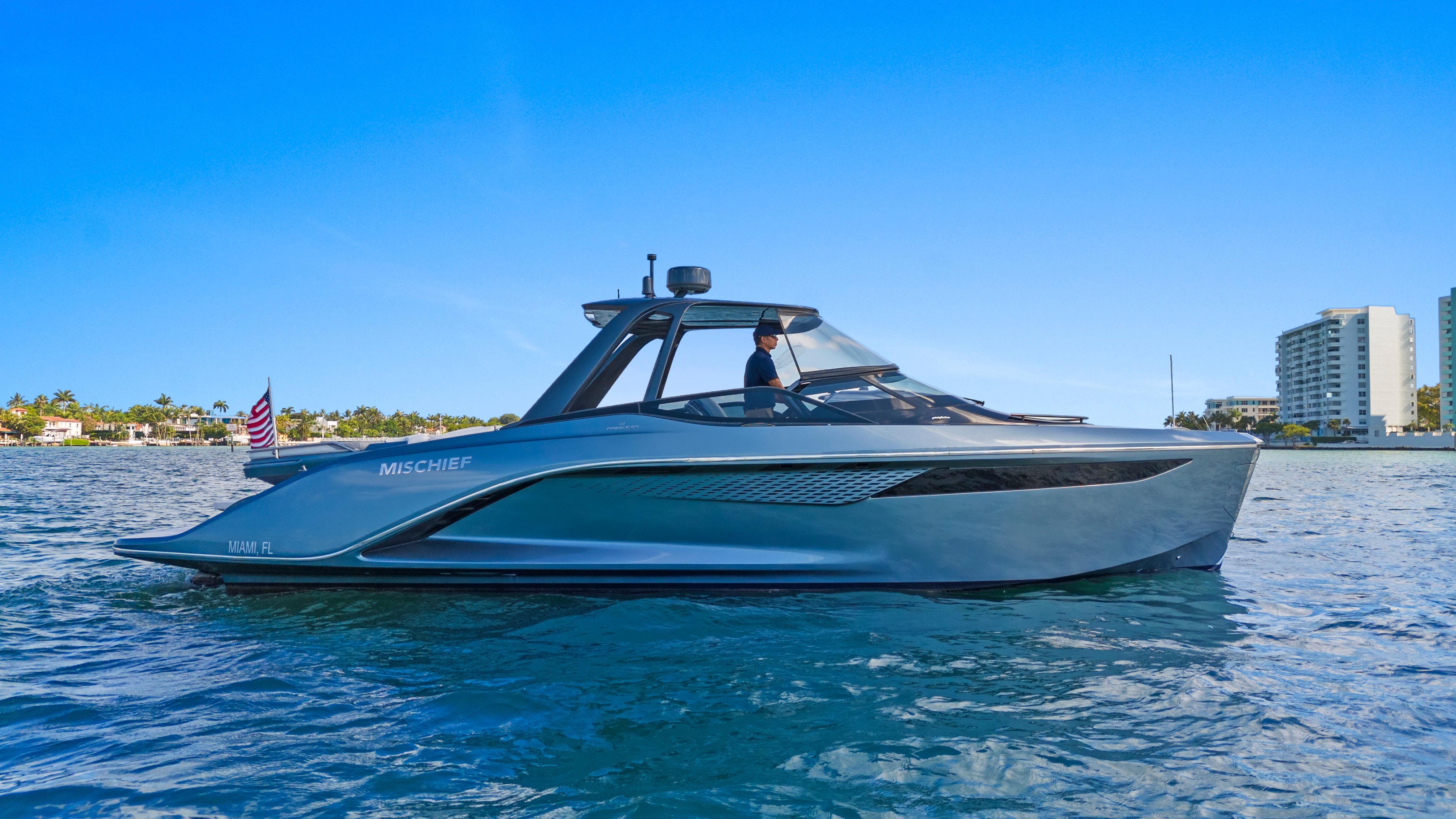 2021 PRINCESS R35 - Unique Hardtop EditionPininfarina Italian Design - Princess Yachts QualityExtended Volvo Warranty Through 6/2026!!!OWNER & BROKER WILL CONSIDER ALL TRADES!!!Introducing the Princess R35 with Hardtop—a rare opportunity to own one of the most advanced and visually stunning performance yachts ever created. This model combines radical innovation with timeless elegance, featuring a lightweight carbon fiber monocoque hull, Active Foil System (AFS), and a custom-designed carbon fiber hardtop that adds both function and flair.Built in collaboration with BAR Technologies and the iconic Italian design firm Pininfarina, this R35 redefines what’s possible in a 35-foot sports yacht.Key Features:Carbon Fiber Hardtop – Offering shade, enhanced aerodynamics, and a bold visual profileCarbon Fiber Monocoque Hull for lightweight strength and agilityActive Foil System (AFS) developed by BAR Technologies for enhanced stability, active trim and dynamic corneringSleek Exterior Design by Pininfarina—striking, elegant, and aerodynamicSpacious Cockpit with premium upholstery, configurable seating, and fold-out sunbedsContemporary Interior with cabin accommodation for two, integrated galley, and a luxury wet-room-style bathroomDigital Helm Console with intuitive touchscreen navigation and engine management systemUp to 43 Knots Performance with exceptional handling and ride comfortDeck EquipmentCarbon Fiber Hard TopAft Sunshade with two carbon support polesAft sunbathing area with handrails and drink holdersCarbon fiber boarding gangwayRadar AutopilotAuto trim and stabilizationWindshield Eisenglass protectionDrawer fridge located below helm seating8 underwater lights total - 6 Lumitec rgb with poco controller, 2 factory Lumishore blue/whiteForward view camera and display on forward bulkhead in lower salon, also linked to helm displayExterior upholstery in Comfort Exterior Dolce CapelinEsthec laid transom platform, cockpit deck, foredeck, steps to side decks, and side decksSelf-Stowing Stainless Steel Anchor with Powered Launch & RetrievalSelf-stowing 16kg stainless steel anchor with 80ft of chainDiscrete retractable stem head roller with automatic anchor launches and retrievalPowered wind deflectors to reduce airflow to the cockpitFull set of IMCO navigation lightsAdjustable triple helm seatTeak folding removable table with deck mounting sockets in two positionsExterior seating and sunbeds in reticulated foamLED deck lightingWaterproof speakers (2) + Subwoofer and linked to Naim audio system in salonLiferaft storage lockerSwim ladderHot and cold transom showerCovers include mooring cover, helm/nav seat cover, and table coverWaterproof USB charging pointIcemakerNavigation Equipment2x Volvo Garmin 17" color multifunction displayInternational VHFElectro-hydraulic active foil and ride control interface at helmPower-assisted hydraulic steering systemSystemsOnan 4kW generator (190 Hours)Reverse cycle air-conditioning/heatingJoystick ControlSterndrive trim controlsAutomatic fire extinguishers (with manual override)Electric bilge pumpsInterior Silver Oak satin wood finishEsthec saloon floorsU-shaped sofa which converts to a double berthDining tableNaim audio system linked to interior and cockpit speakersSkylight with integrated blindsLED overhead and concealed lightingBathroom with wash basin, shower, and electric toiletGalley with stainless steel sink with mixer tapDrawers and storage cupboardsFridgeIcemakerPowerTwin Volvo V8 (860 hp)Extended Volvo warranty (6/2026)This 2021 Princess R35 Hardtop is a rare and fully equipped example in turn-key condition, ideal for those seeking performance without compromise. Whether you're cruising at speed or relaxing at anchor, this yacht offers an unparalleled combination of innovation, luxury, and style.Inquiries Welcome – Contact Today to arrange a viewing