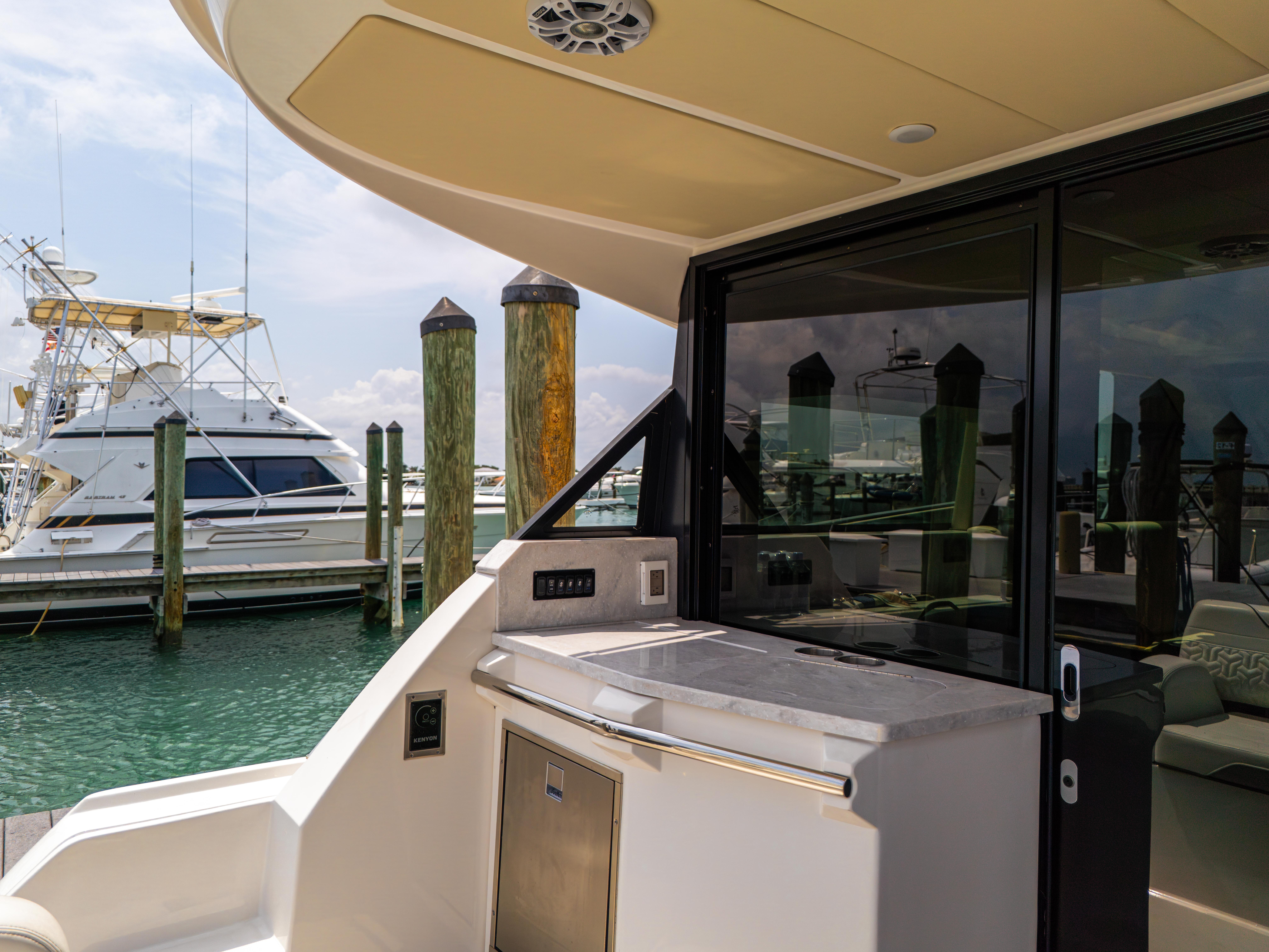 Take advantage of the Only Pre-Owned Outboard Powered 2023 Regal 38 FXO on the market! This Regal 38 FXO is ready to go with just 175 hours of local boating on its Triple Yamaha F300s with Joystick!The 38 FXO has the following factory installed options:Steel Grey Hull Color, Black Bootstripe, Titanium Upholstery, Diesel Generator, Bow Thruster, Seakeeper 3, Aft Privacy Door, Salon Table, Cockpit Seagrass Mat, Windlass Anchor, Aft Cockpit Refrigerator, Aft Cockpit Teak Table, Forward Cabana Sunshade, Garmin 22" Display Lower and Upper Helms w/B60 Transducer, Garmin HD Closed Dome Radar, Satellite Marine Weather, Yamaha Joystick w/Full Maneuverability and Auto Pilot for Lower & Upper Helms, Black Bottom Paint. The owner installed custom gray sunbrella canvas for all upholstery and Hull Shield to help prevent barnacle growth. The boat was just fully serviced on all Engines, Generator, and is ready for its next owner!