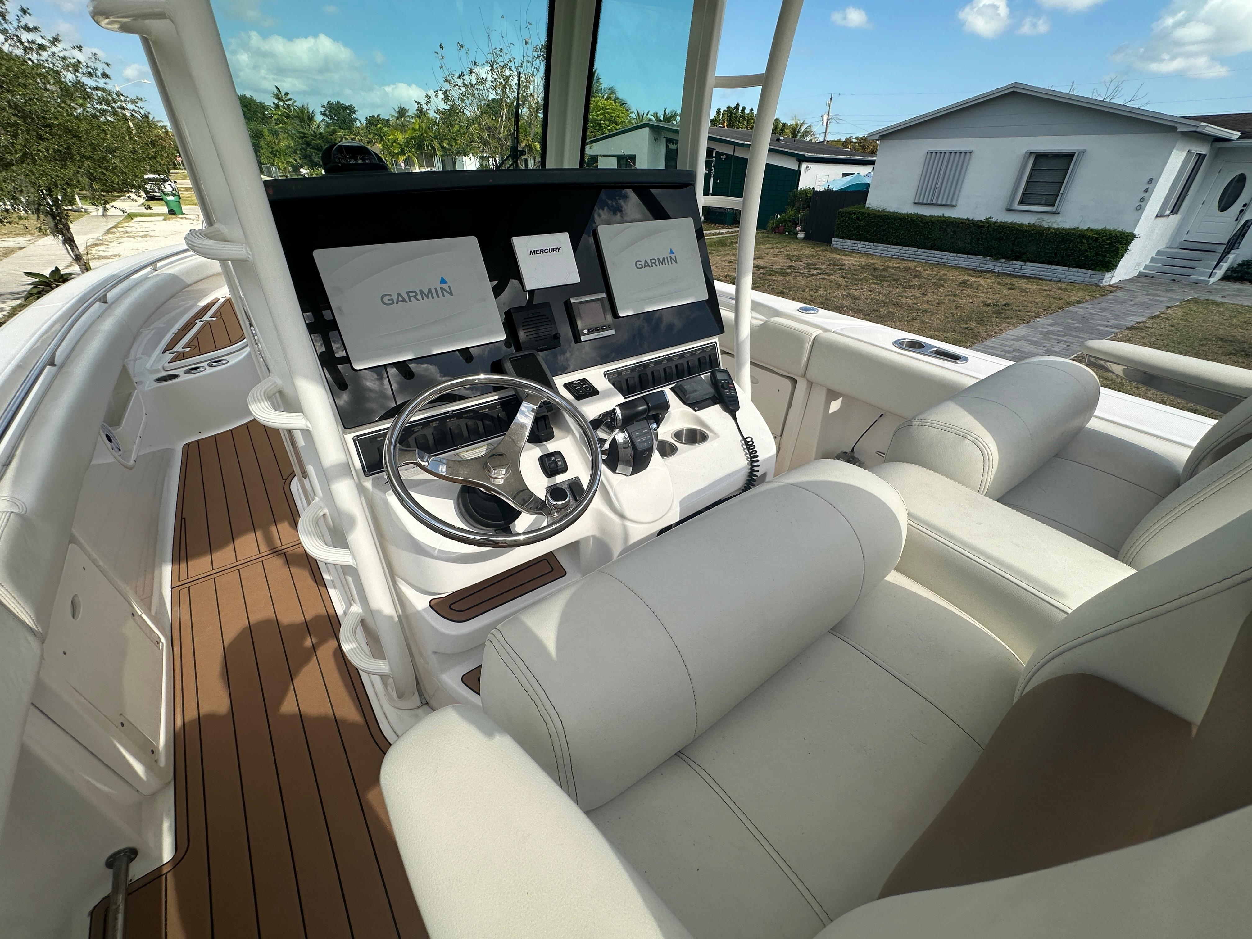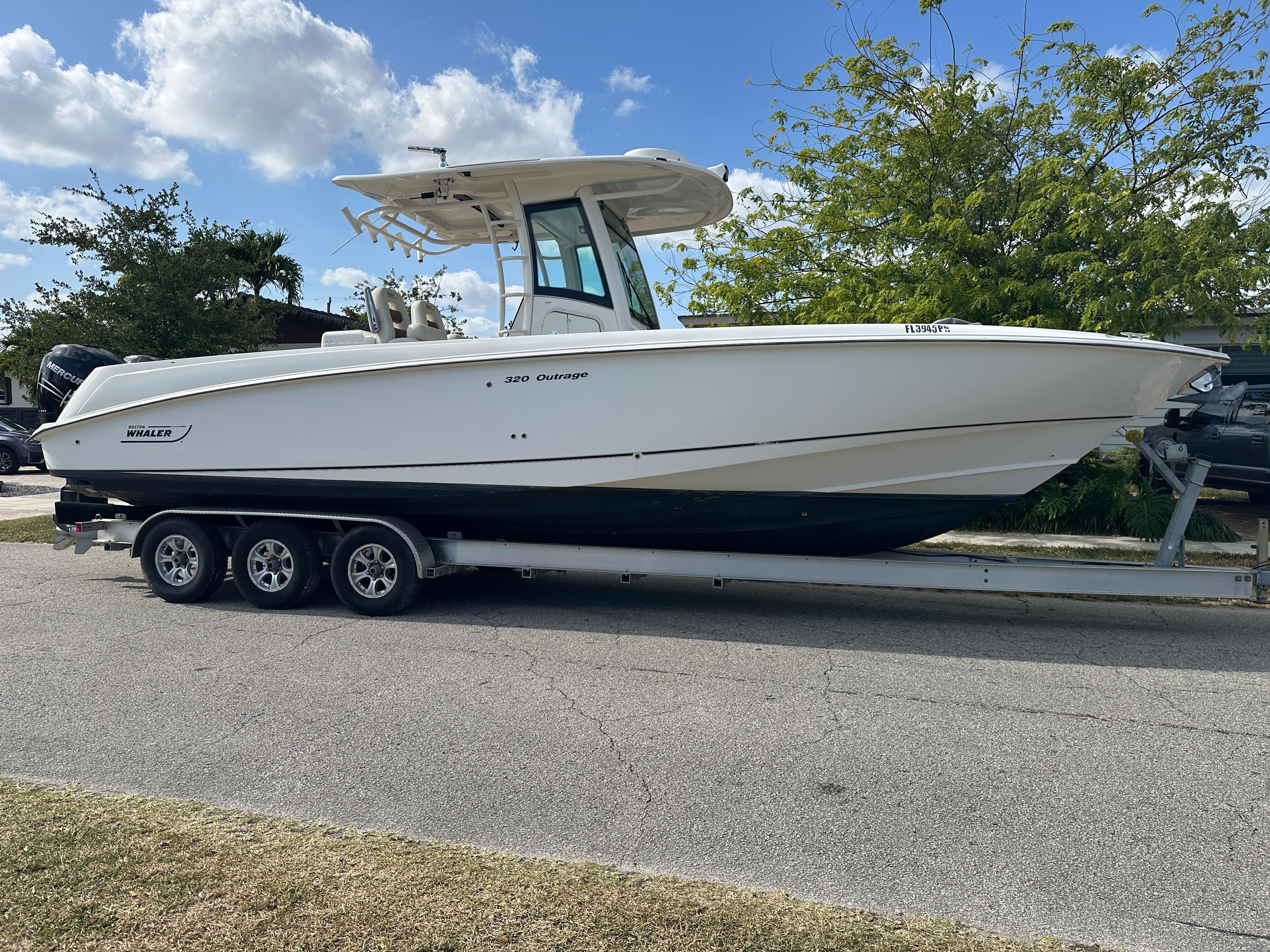 2013 Boston Whaler 320 Outrage repowered 2019 Mercury 350hp Verado with only 180hours !!! LIFT KEPT BOAT FINANCING AVAILABLEUPGRADED DUAL GARMIN ELECTRONICSGARMIN DOME RADARCAPTAIN CHAIRSSEADECK RECENTLY INSTALLEDSHE IS READY FOR THE BAHAMAS OR LOCAL SANDBAR The roomy 320 Outrage, with wide walkways and an expansive cockpit, is both an admirable fish-fighting boat and provides generous entertainment. Premium fishing features include the deluxe leaning post with livewell, three in-floor fishboxes, and under-gunnel rod racks. The 320 Outrage boasts a design with bountiful storage, including lockable rod storage and a forward 80-gallon in-deck cooler for staying hydrated during longer offshore cruising. For maximum on-board pleasure, the optional Summer Kitchen provides an electric grill, freshwater sink, cutting board, additional drawers and storage, and a pull-out refrigerator and freezer. Fish, cruise or do both; the 320 Outrage is up to the task.