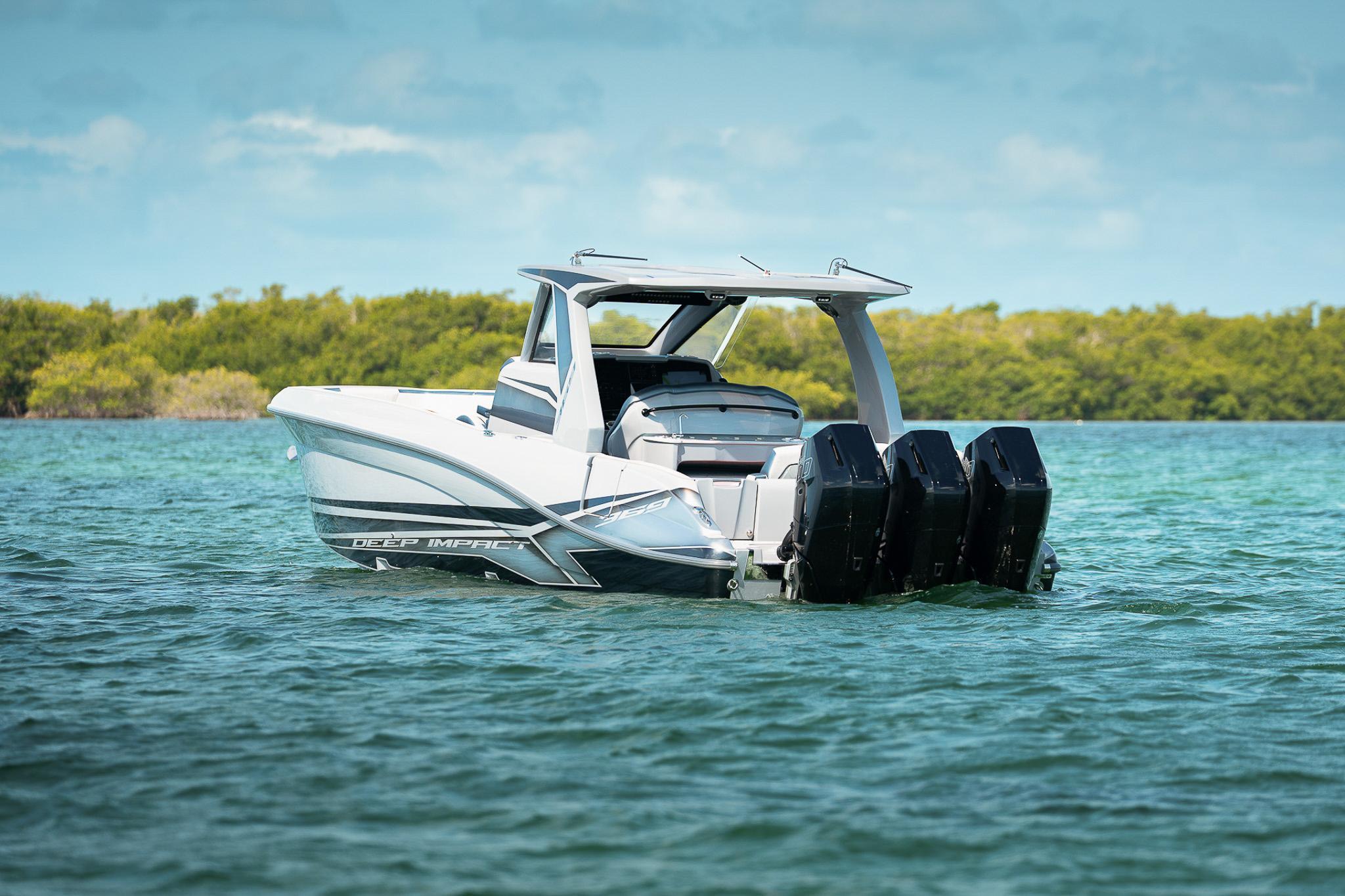 BRAND NEW 2025 DEEP IMPACT 369 SPORT!Just as Large as ANY Competitors' 39-foot BoatBuilt for Offshore, we'll go up against ANY competitors' 39-footerFeatures of this 369 Sport include: Triple Mercury Racing 400R V10Air Conditioner with InverterMercury VesselView 70317" Garmin GPS 86171KW Transducer w/ Garmin GSD 25 Sounder ModuleGarmin VHF 315 Marine RadioGarmin Full ShadowCaster Light SystemRAM Cell Phone Charger MountRecessed Anchor Locker w/ Freshwater WashdownBow Storage CompartmentBow Seating(4) Fwd Under Gunnel Cupholders w/ (1) USB PlugFwd Deluxe Lounge SeatStainless Bow RailsFull Cabin with Head, Day Bed and SinkTriple Helm Seat with Drop Down BolstersBacklit LED Switching System(4) LED Cupholders on Top of HelmFwd and Aft Spreader LightsMulti Colored Under Gunwale and Hard Top LightingPort and Stbd Insulated Fish BoxesUnder Gunwhale StorageWindows in ConsoleTransom Seating w/ Cooler(8) Pull CleatsWindlass, 300' Rode, 15' ChainTrim Tabs 335 Useable Gallons of Fuel32 Gallons of Fresh WaterDive Door w/ Stainless Swim Ladder Custom Paint Grab RailsAnchor Locker Freshwater Wash Down Custom Stitching Pattern in Seating InsertExtreme JL Audio Sound Package Recessed Shower in the Hard TopSummer Kitchen w/ Pull Out Yeti Tundra CoolerCustom Paint Option Two: Painted Hull from Rub Rail to Water Line - Muli Colored, Gunwale Accent, Deep Impact LogoCustom FlooringCustom Painted Engines