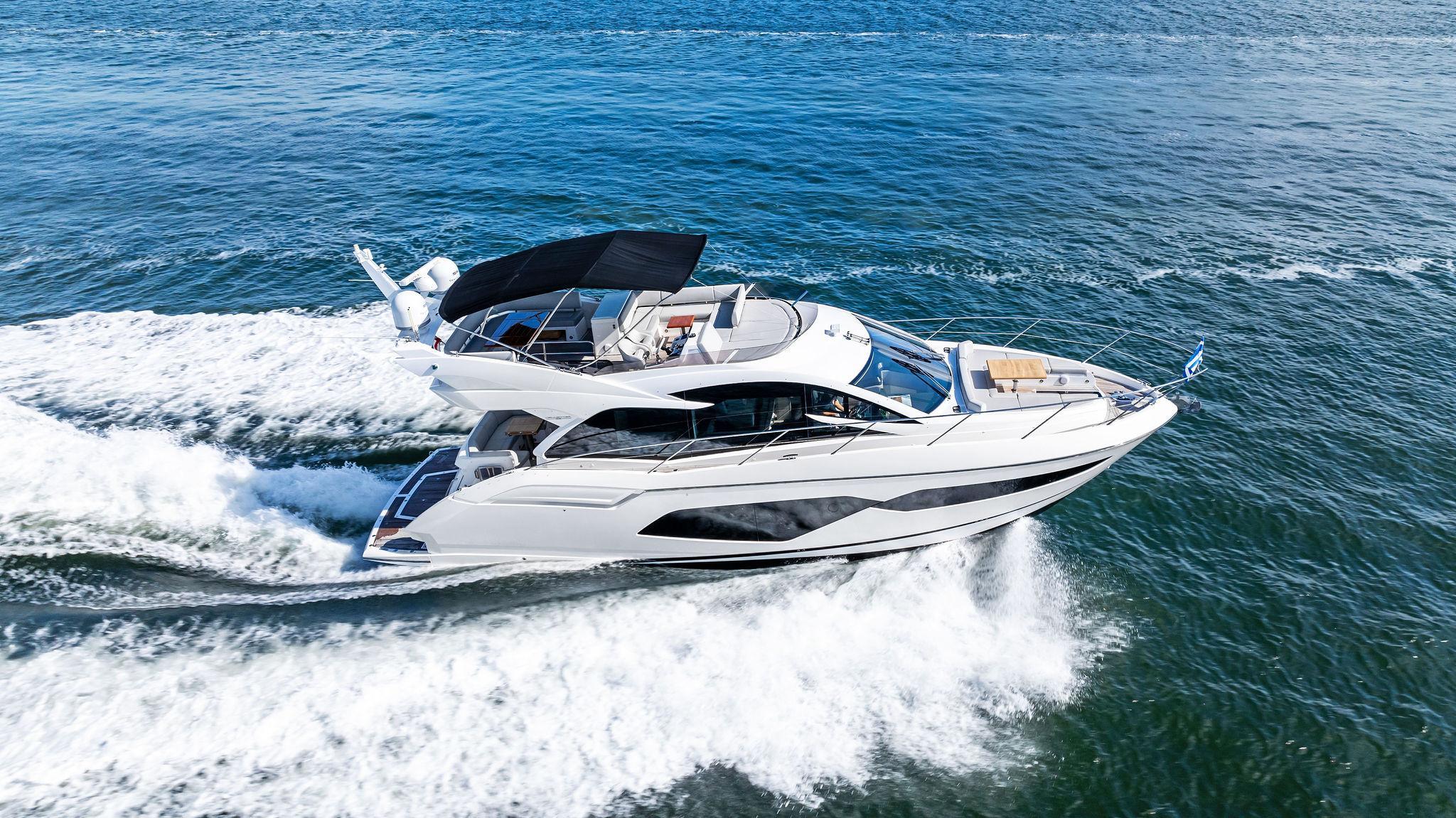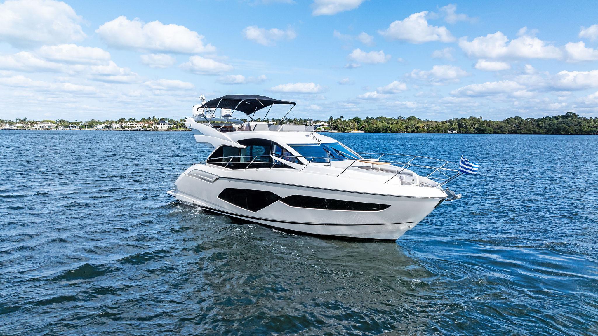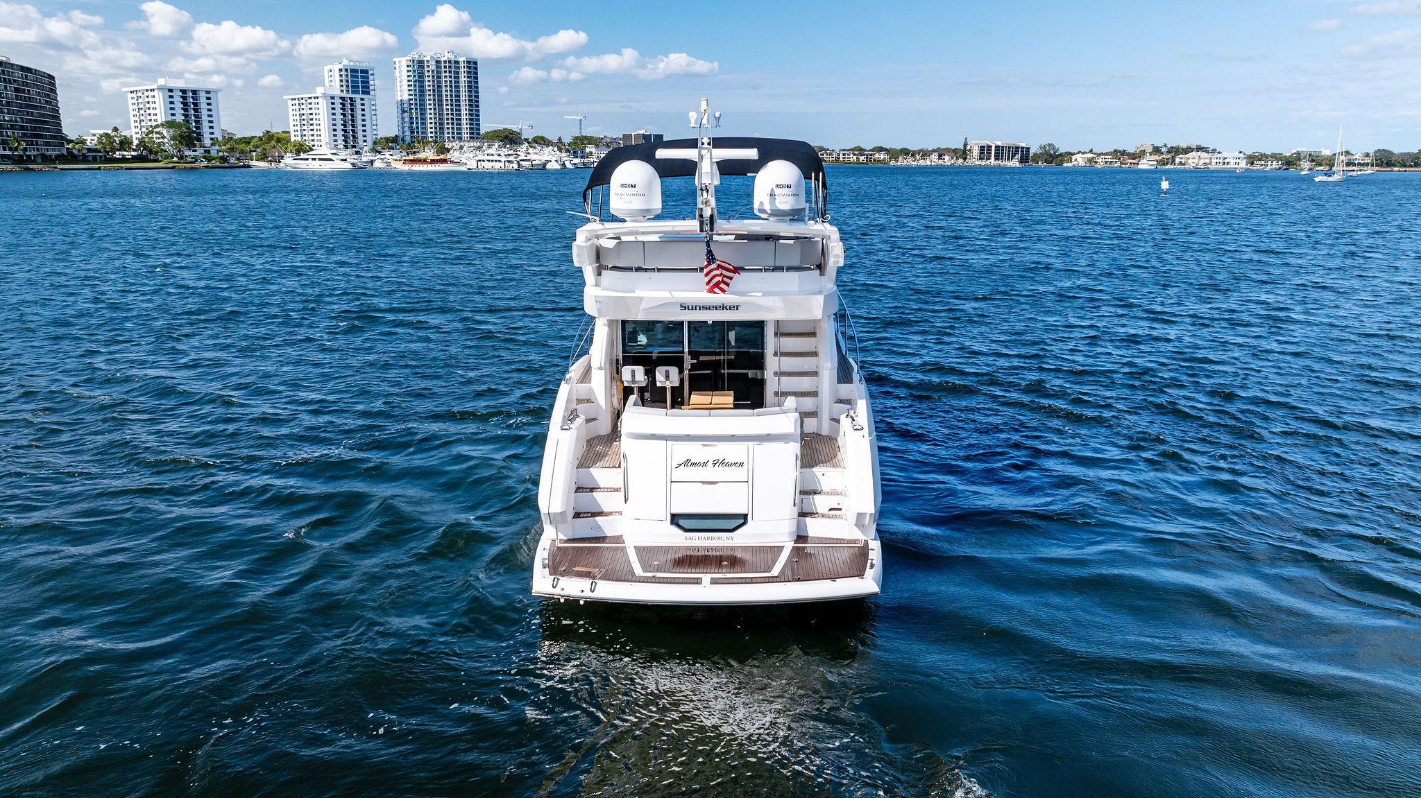 Almost Heaven, a 2021 Sunseeker Manhattan 52, is a stunning blend of luxury, space, and performance. Located in Singer Island, Florida, she is offered by Italian Yacht Group and stands out as a great boat for sunbathing and relaxation. Designed for effortless entertaining, her open layout and expansive flybridge create the perfect setting for enjoying the sun and sea in total comfort.Spacious Flybridge Living: As a luxury flybridge for sale, she boasts an open and airy upper deck with a generous seating area, sun loungers, and a wet bar. It’s the ideal space for socializing, dining, or simply soaking in breathtaking ocean views.Seamless Indoor-Outdoor Flow: Her main deck is designed for ultimate sociability, featuring a bright and inviting salon with floor-to-ceiling curved glass. The open cockpit, aft galley, and bow seating area create multiple spaces to relax and entertain.Effortless Performance: Equipped with powerful engines, she delivers smooth cruising and excellent handling. Whether exploring coastal waters or venturing offshore, she provides a stable and exhilarating ride.With her sleek design, sun-drenched spaces, and luxurious comfort, Almost Heaven redefines what it means to enjoy the water. Contact Italian Yacht Group to discover this luxury flybridge for sale in Singer Island, Florida.