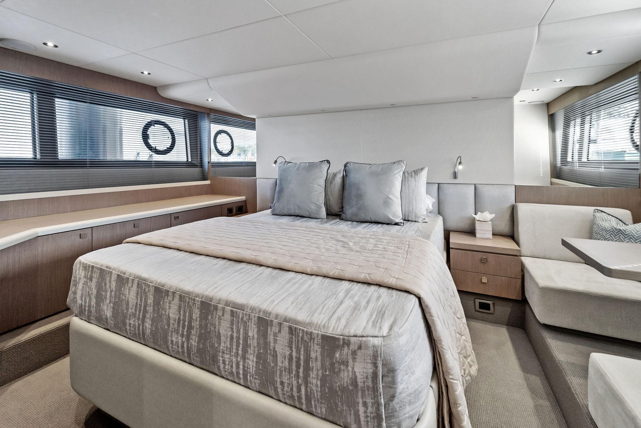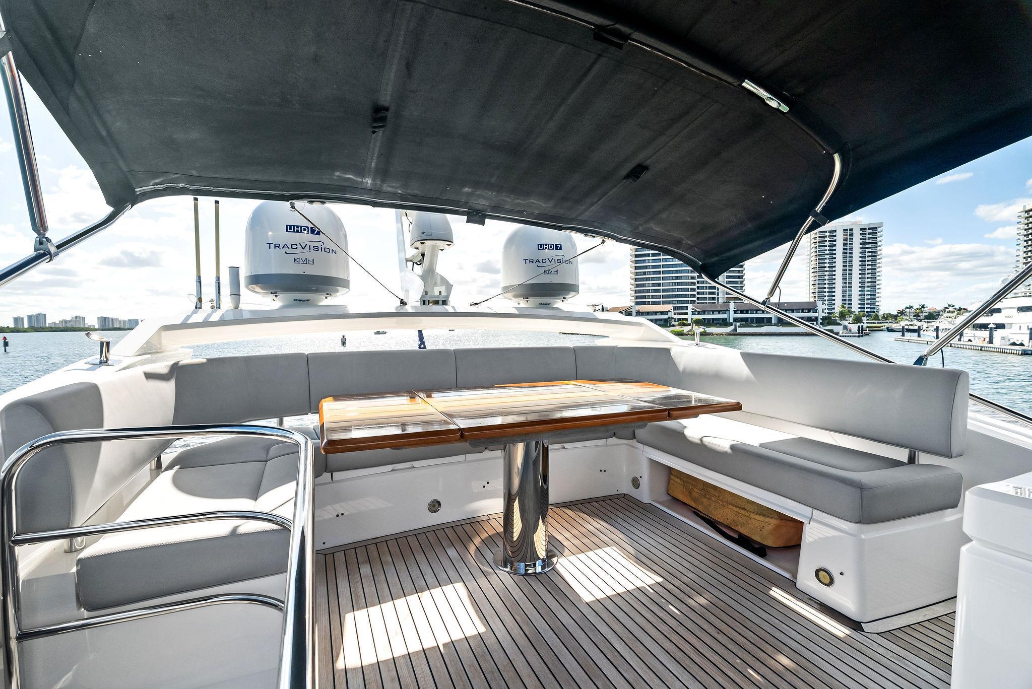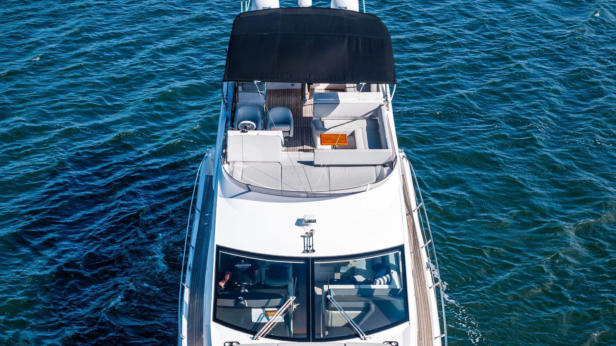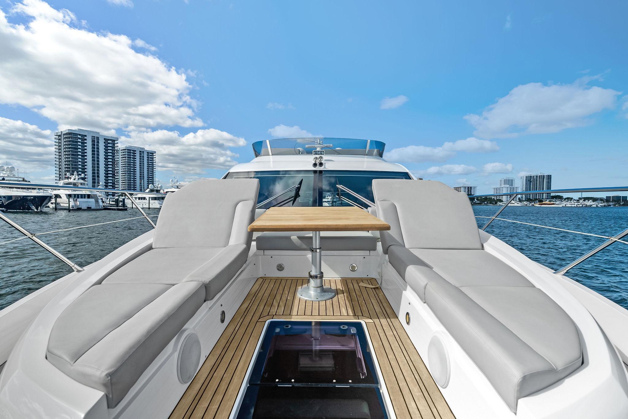 Almost Heaven, a 2021 Sunseeker Manhattan 52, is a stunning blend of luxury, space, and performance. Located in Singer Island, Florida, she is offered by Italian Yacht Group and stands out as a great boat for sunbathing and relaxation. Designed for effortless entertaining, her open layout and expansive flybridge create the perfect setting for enjoying the sun and sea in total comfort.Spacious Flybridge Living: As a luxury flybridge for sale, she boasts an open and airy upper deck with a generous seating area, sun loungers, and a wet bar. It’s the ideal space for socializing, dining, or simply soaking in breathtaking ocean views.Seamless Indoor-Outdoor Flow: Her main deck is designed for ultimate sociability, featuring a bright and inviting salon with floor-to-ceiling curved glass. The open cockpit, aft galley, and bow seating area create multiple spaces to relax and entertain.Effortless Performance: Equipped with powerful engines, she delivers smooth cruising and excellent handling. Whether exploring coastal waters or venturing offshore, she provides a stable and exhilarating ride.With her sleek design, sun-drenched spaces, and luxurious comfort, Almost Heaven redefines what it means to enjoy the water. Contact Italian Yacht Group to discover this luxury flybridge for sale in Singer Island, Florida.