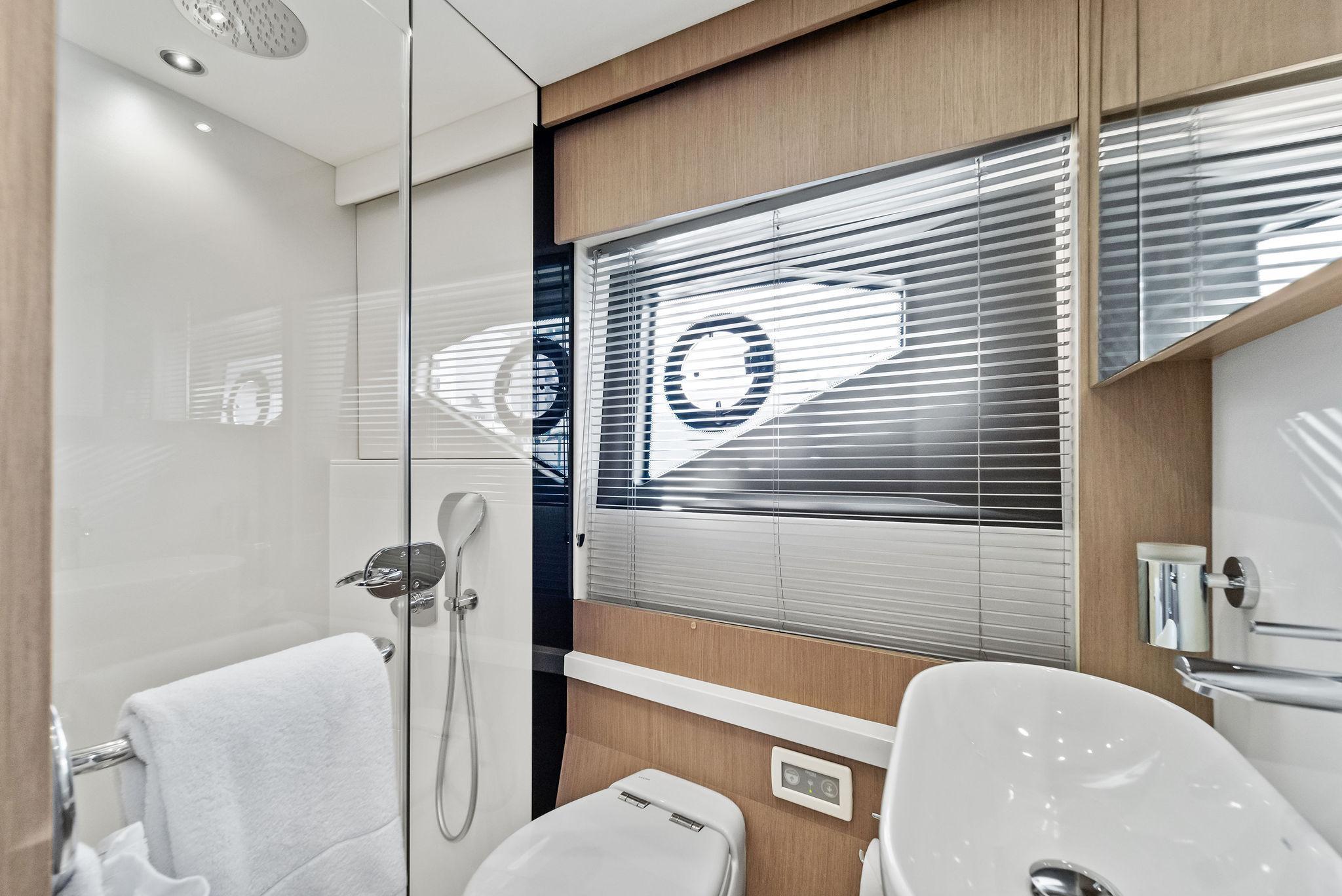 - Fresh water marina connection Electric toilets with holding tank