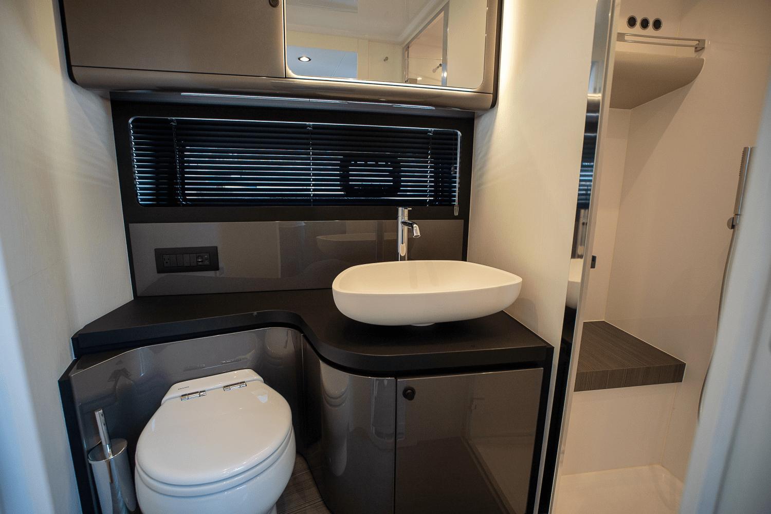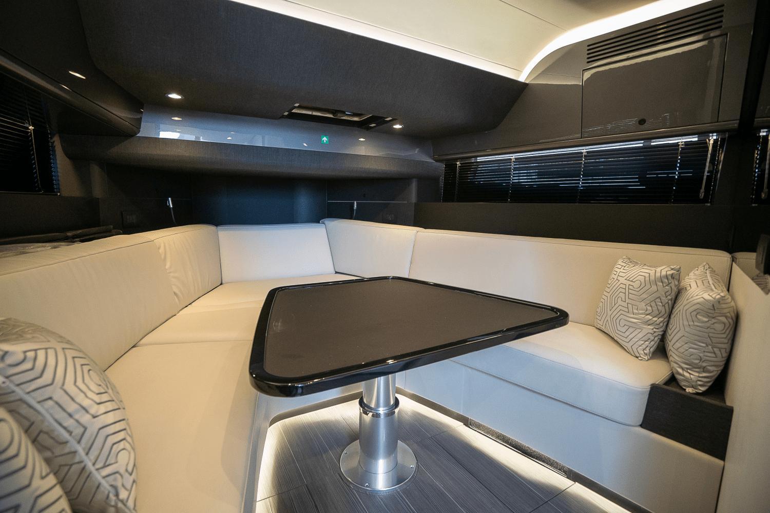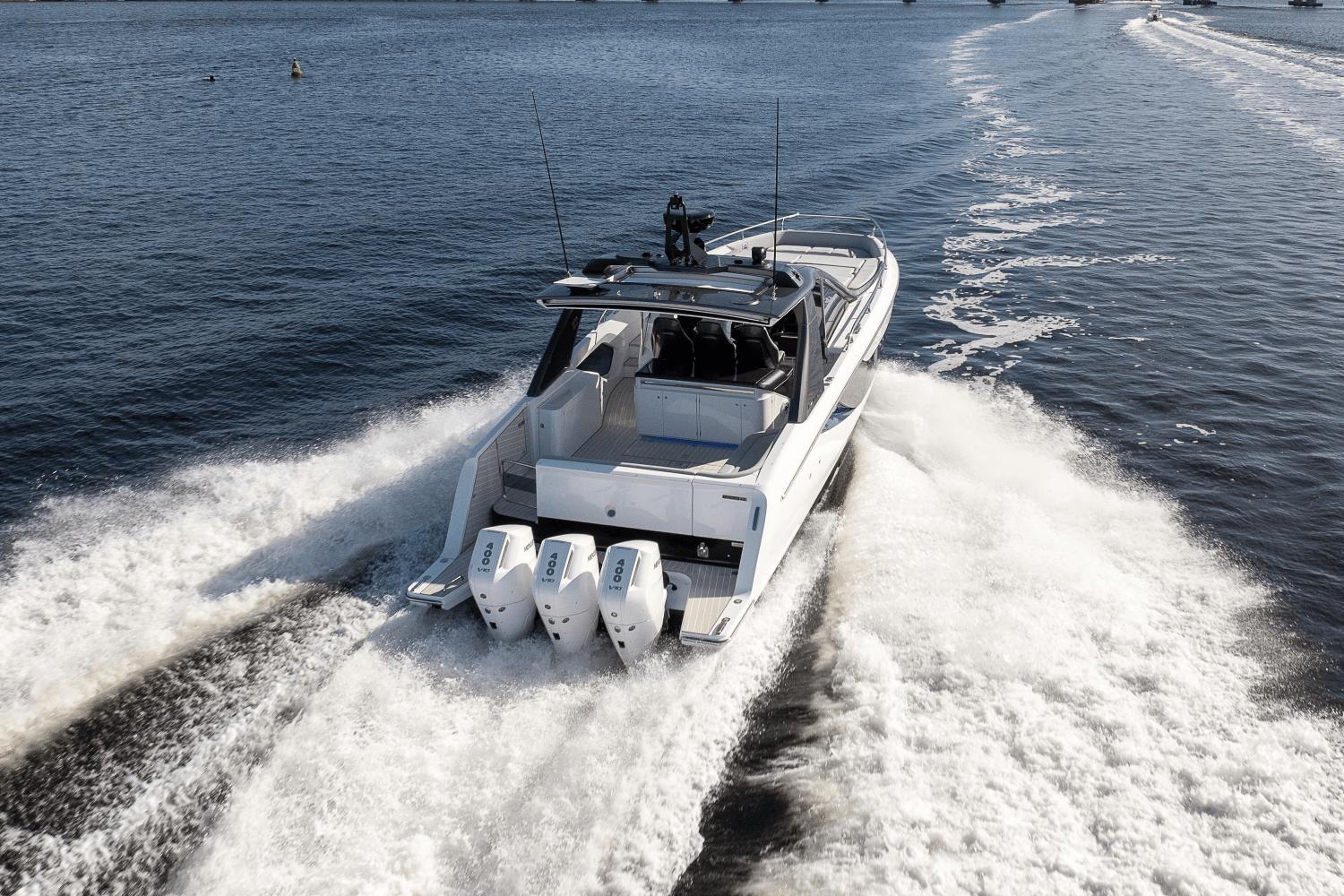 The ultimate boating machine. The Azimut Verve 42 is not merely an innovative outboard, but it is one of a kind. Combining the adrenaline-inducing performance of a true sports boat with an extraordinary level of comfort and livability, it removes the word "compromise" from yachting vocabulary. The hull has a deep V and central stern tunnel, based on the famous Stepped "V" Ventilated Tunnel (SVVT) developed and patented by Michael Peters. The classic deep V with two steps and a central stern tunnel improves the boat's longitudinal stability when turning at high speed. Designed to reduce water resistance significantly and deliver excellent performance without affecting the size and proportions of the hull, the SVVY hull guarantees extraordinary directional stability even when turning. A side folding bulwark creates a comfortable swimming platform with a retractable ladder for easy access to the sea.A window on your wake. The helm station has been enhanced with a hull side window reaching the bulwark that creates a remarkable sense of continuity with the outside world. Indeed, the driver enjoys a special bond with the water, particularly at high speed, when the wake that is clearly visible on either side of the boat seems to become part of the yacht's structure. Triple Mercury propulsion. With three Mercury outboard engines rated 400 HP or 450 HP, Verve 42 has a top speed of 45 knots and cruising speed of 33 knots. The Mercury V8 450s are the ideal propulsion system to guarantee top performance for boats with a dynamic and sporty DNA like the Verve 47. Ideal for light, fast boats, they deliver a better weight/power ratio than more powerful options, quick and responsive handling, and an optimized cruising speed. The choice of these outboards has made it possible to achieve important design goals including the lowest displacement possible and better maneuverability, guaranteeing a pleasurable, safe and, sporty driving experience.