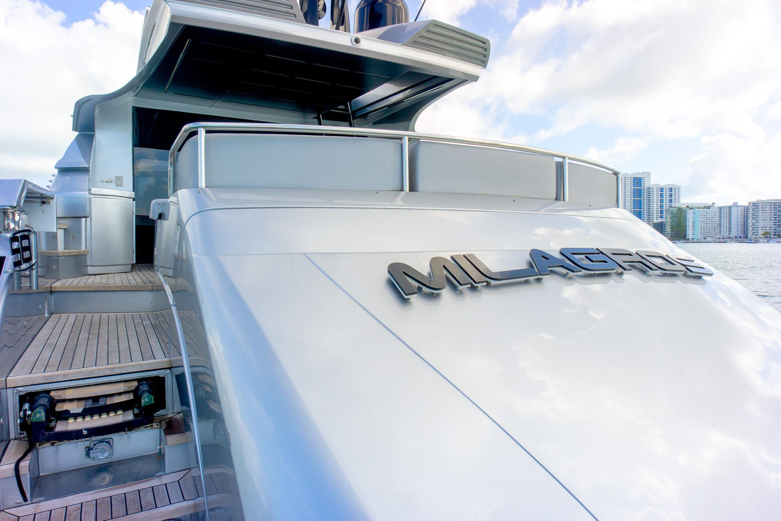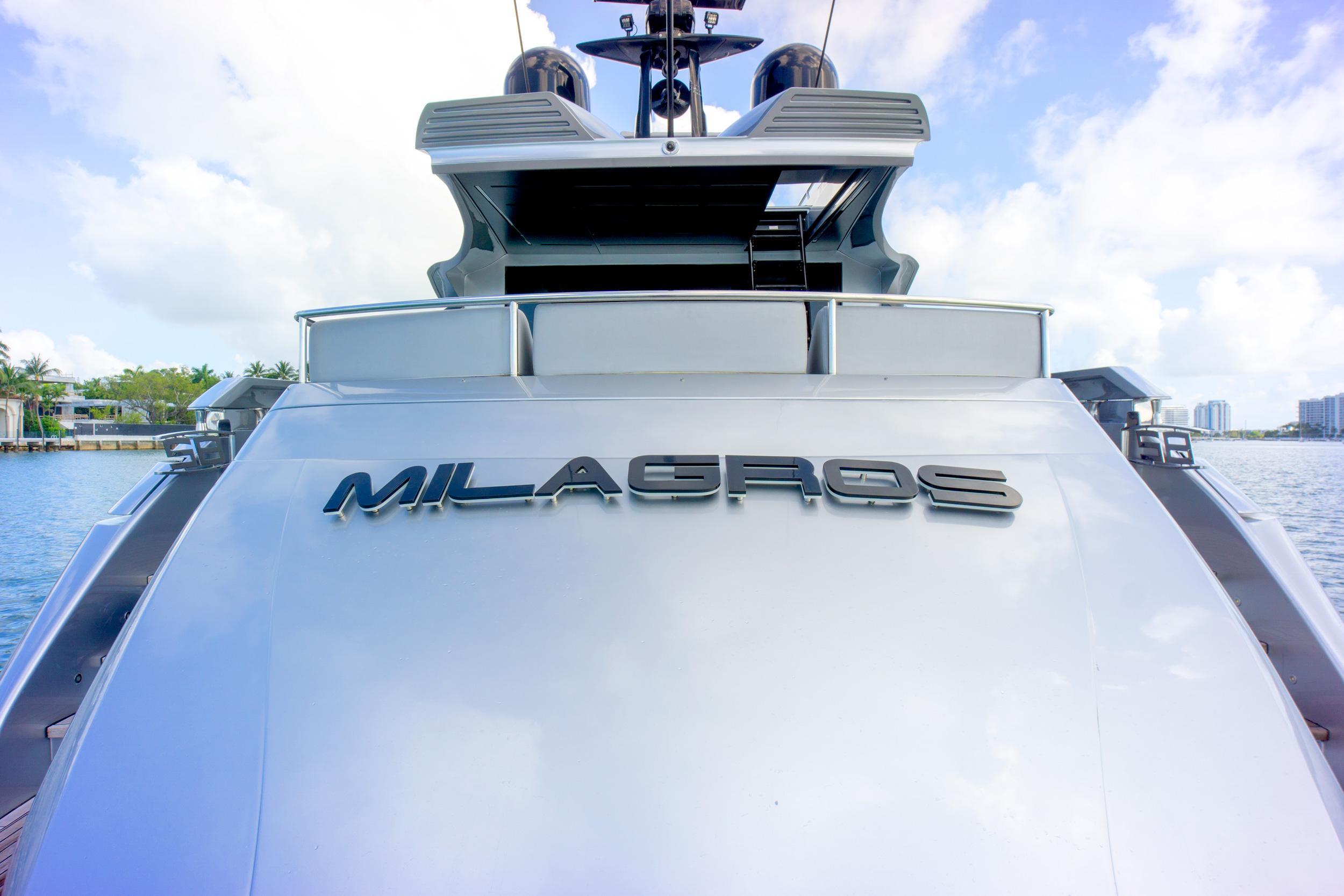 Powered by Twin 2435 HP MTU 16V2000M93 motors with only approx 1900 well-maintained hours !! Equipped with Furuno Electronics- 120 Mile Radar- Auto Pilot- Hydraulic Steering- Bow Thruster- Stern Thruster- Two 23Kw Kohler Generators - Seafari watermaker- Lofrans- Electro Hydraulic Passerelle- Swim Platform- Underwater Lighting**Service Completion Notification** January 2025. 2000-hour engine service is complete. The seller invested $100,000 to ensure optimal performance and reliability. For any questions, please reach out. Thank you!2013 Pershing 82The 82-foot (25m) motor yacht is a sleek, stylish head-turning yacht with incredible speed, a striking interior and outstanding outdoor living areas.She tops out at 47 knots and has a cruising speed of 38 knots — allowing you to get to where you want to go at lighting speed. Pershing describes this model as “a missile disguised as a yacht.” Motor yacht MILAGROS was built for the American market, featuring Searex Surface drives with auto trim that provide full-speed maneuvering.In addition to her incredible speed, the yacht’s interior is adorned with oak flooring, oak cabinetry, Italian fabrics and custom tilework. Large windows throughout create an abundance of natural light and a fresh ambiance. She accommodates six guests in three stylish staterooms. Her master suite is a luxurious haven complete with a king-size bed and en-suite bath. Her additional guest staterooms, also located below deck, include a queen VIP and a twin stateroom — both with en-suite baths. All staterooms showcase Fendi linens. Additionally, the luxury yacht features a media room below deck for guests to enjoy their favorite shows and movies in a more private setting.MILAGROS features two spectacular decks that are perfect for unwinding, socializing and entertaining. The bow features a large sunpad for lounging, as well as seating with a retractable awning. Her aft deck features alfresco dining as well as an additional large sunpad. Her flybridge continues to delight with a driving station and sunpad. Magnificent 360-degree views can be enjoyed as MILAGROS thrills her guests piercing over waves to her next destination.-Newly installed Air Conditioner unit -Newly installed Hydraulic pump -Surface drives refurbished-Both Prop Refurbishedoffers the most brilliant response to the toughest of challenges: combining pure luxury & exhilarating speed. Her outer profile is aggressive enough to let one sense the performance of what this yacht is capable of, but her interior is tastefully blended with the finest Italian fabrics & woodwork.- 3 cabins- 3 Heads- 2 Crew in 1 Cabin Main DeckBright, roomy, and rational, she is a pleasure to be aboard, and the saloon feels unusually spacious thanks to the decision to place the galley below, in the crew quarters. Sitting directly beneath the saloon, it connects to the main deck and dining area via a curved, six-step companionway on the port side.Lower DeckThe guest accommodation is accessed down a forward companionway where you're instantly greeted with an additional entertainment space upon descent. Just aft, a full-beam owner's suite gets the lion’s share of space, with its walk-in wardrobe, excellent glass-doored shower and head compartment and deckhead-mounted TV. The king-sized berth, below an enormous window. There is also a conveniently located fridge for beverages, and an adequate amount of storage lockers and drawers in the owner's suite. The port guest stateroom is adjacent to the entertainment room below deck, and the VIP accommodation is just forward.We are about to take her out now for hydraulic workWe are going to do 2k engine services