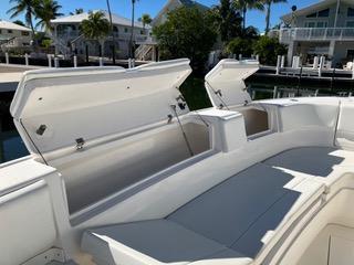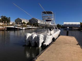 2016 40 ft. Intrepid with TowerREPOWERED with 2022 Triple 400HP Mercury Verado Engines with Platinum warranty until 2027color night vision boateye 360Upgraded Dual control mercury throttle/control systemImron PaintGarmin electronics gpsmap 84xx/86xx/87xxDetachable Tower fully rigged with electronics and driving stationMain fuel tank holds 307 gallons, reserve tank holds 95 gallons40-Gallon Freshwater Tank20-Gallon Waste TankWindlass anchor system with stainless steel anchorBennett Trim tabs (dual control, upper and lower stations)Bow thruster (vetus)Custom helm seatingEnclosed walk in head with shower and storage (full stand up space)Garmin radar systemLight bar installed on top of hardtop for driving and docking at nightFusion radio system with Bluetooth and USB connectionJL audio speakersUpgraded Rupp marine outriggersFold out dive door with very stable ladder suitable for walking up with tanks onPlenty of storage throughout the boatUpgraded 4 blade stainless steel propellers80-Gallons floor livewell with dual pump sea chest livewell system High flowCustom insulated cooler below back helm seat with cushion cover11'1" Beam providing a very stable riding boatThis Intrepid is built to do it all, very well rigged for fishing or a great boat for the familyFold out back bench(12) Rod holders and rod storageFish boxes with macerator pump to drainGhost security systemManufacturer Provided DescriptionThe sea-worthy design of this stunning 40-footer begins with our signature transverse stepped hull with huge free boards for the utmost in safety, stability and handling. Creature comforts include an expansive head with vanity and sink, and chaise seating that converts to a luxurious sun lounge/daybed at the push of a button.The bullet-style console, an innovative, aerodynamic design to maximize visibility, exudes the sheer power and style of this 400 Center Console. At the helm, with optional power seating, tilt wheel and seating choices, a massive dashboard features the latest flat screen technology and ergonomic accessory switches installed to the owner’s preferred specifications.A serious array of fishing amenities include a 5’2” forward in-floor insulated fishbox with macerator pumps, 9-foot gunwale rod lockers, a variety of optional large bait wells, and 15 stowage compartments. In addition, Intrepid will always customize each boat to suit the owner’s personal fishing style with options such as a fiberglass T-top supported by sturdy 3-inch diameter bars, outriggers, rod racks, additional bait wells and the latest in electronic and navigational packages.FeaturesIntrepid White Gel CoatTinned WiringNavigation LightsAuto Bilge PumpBreaker Panel SwitchesSolid Stainless SteelHardwareGuttered Cockpit Hatcheswith Self Bailing CockpitPVC Foam Core Vacuum-baggedNon-woven Multi-directional andUni-directional Fibers all Hand LaidDeck and Springline CleatsHawse Pipes for CleatsInsulated Forward Fishbox with Thru Transom Ball Valve and MaceratorNon-Skid Deck and GunwalesBow EyeIntegral Motor BracketAluminum Fuel TankHeavy Duty Vinyl RubrailRecessed Battery Switch PanelDry Lockable Storage Compartment ForwardSwim PlatformsRod/Storage Locker Forward in DeckBullet Helm Seat, Non ElectricRaw Water WashdownFolding Swim LadderPlexi Trim PackagePressurized Fresh Water SystemTrim TabsCompassThe seaworthy design of the 400 CC 40-footer conjures many adjectives. All of which will certainly be inspired by the signature stepped hull with huge free boards for optimum safety, stability and handling. A spacious head and changing room are neatly hidden in the console while plush wraparound forward seating with electric backrests and integrated or removable rear bench seating are waiting to comfort you. At the helm, optional power seating, tilt wheel and seating choices surround a massive dashboard featuring the latest flat screen technology and ergonomic accessory switches. A serious array of fishing amenities include a 5’ 2” forward in-floor insulated fishbox with macerator pumps, 9-foot gunwale rod lockers, optional large baitwells and 15 stowage compartments, as well as integrated storage that can be rigged as a cooler or a baitwell. As always, Intrepid will always customize each boat to suit your personal fishing style.