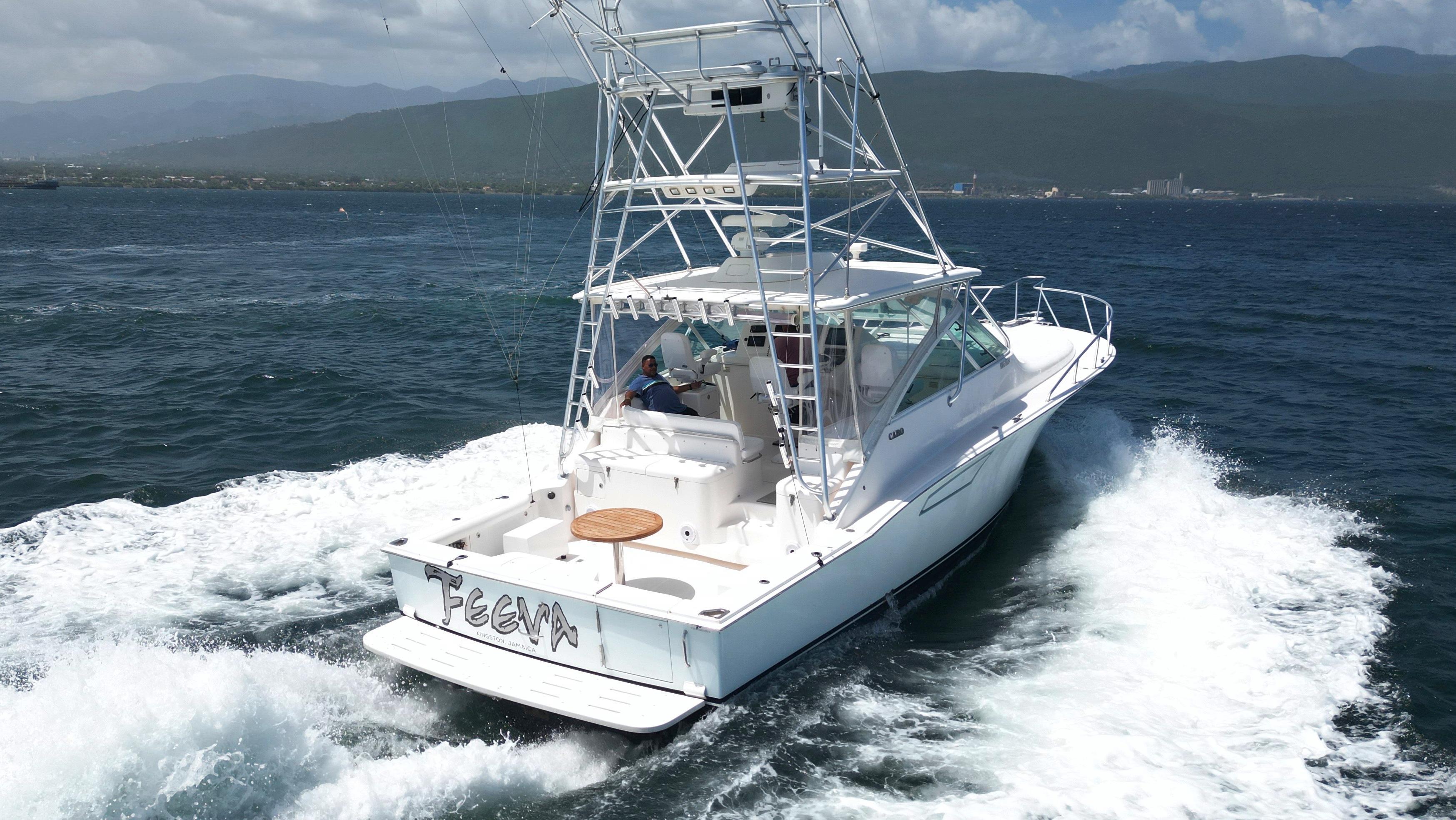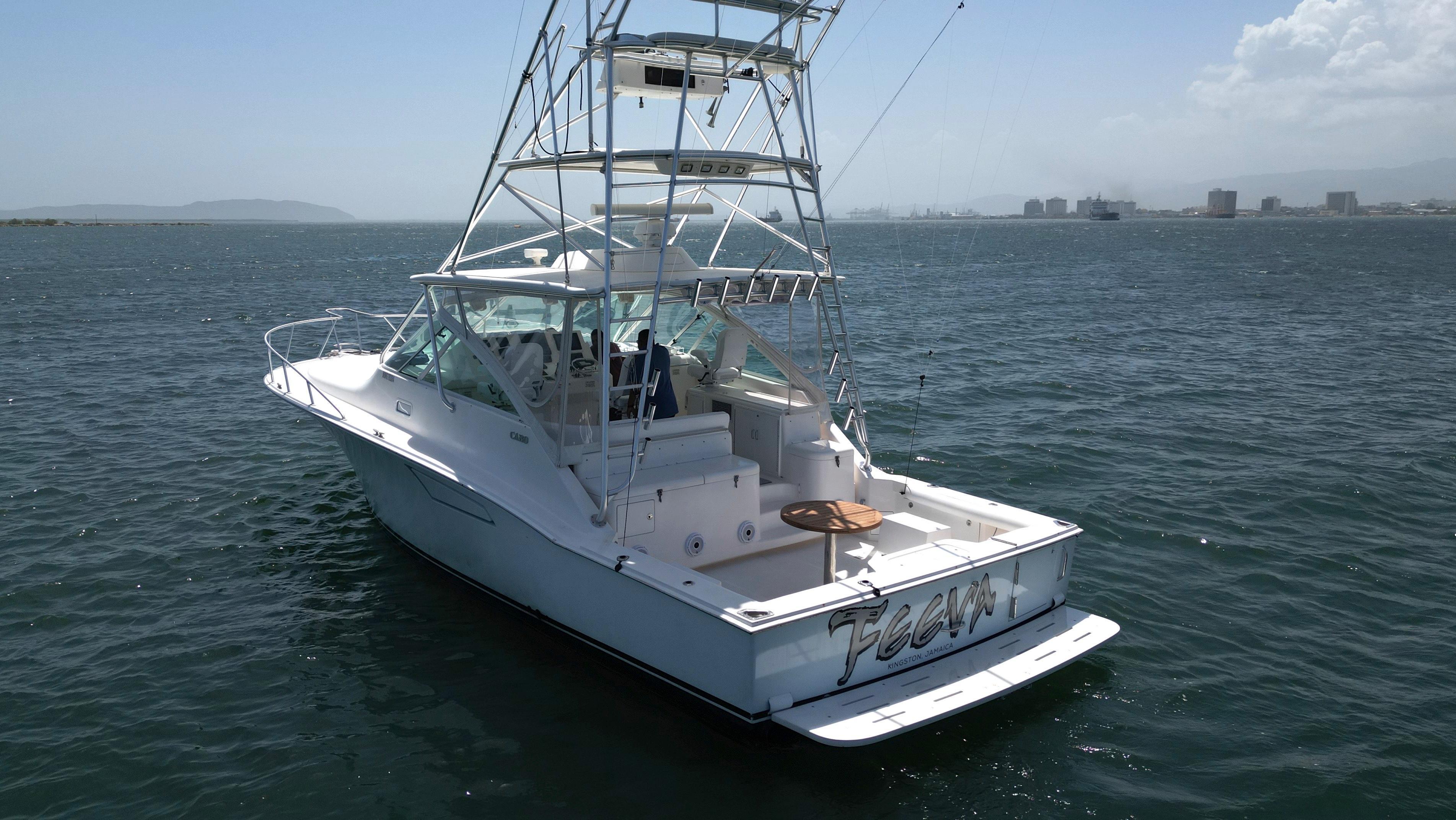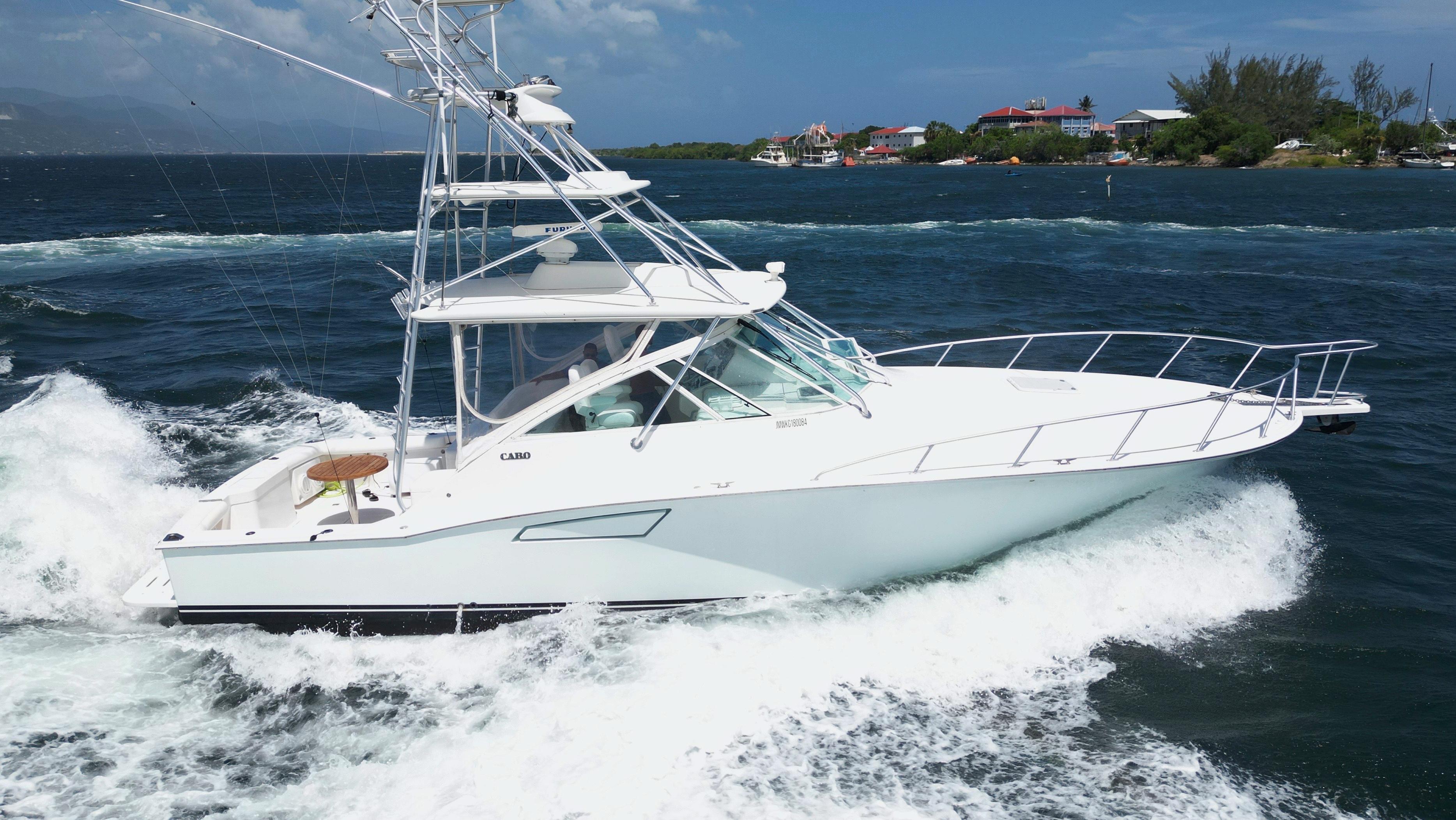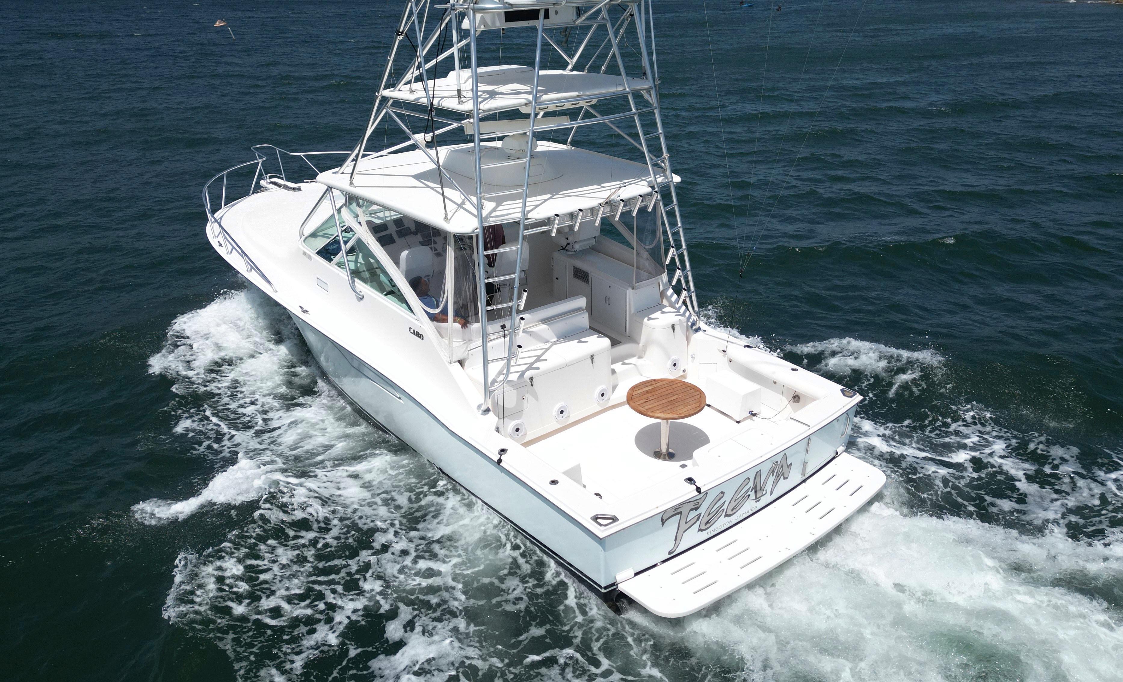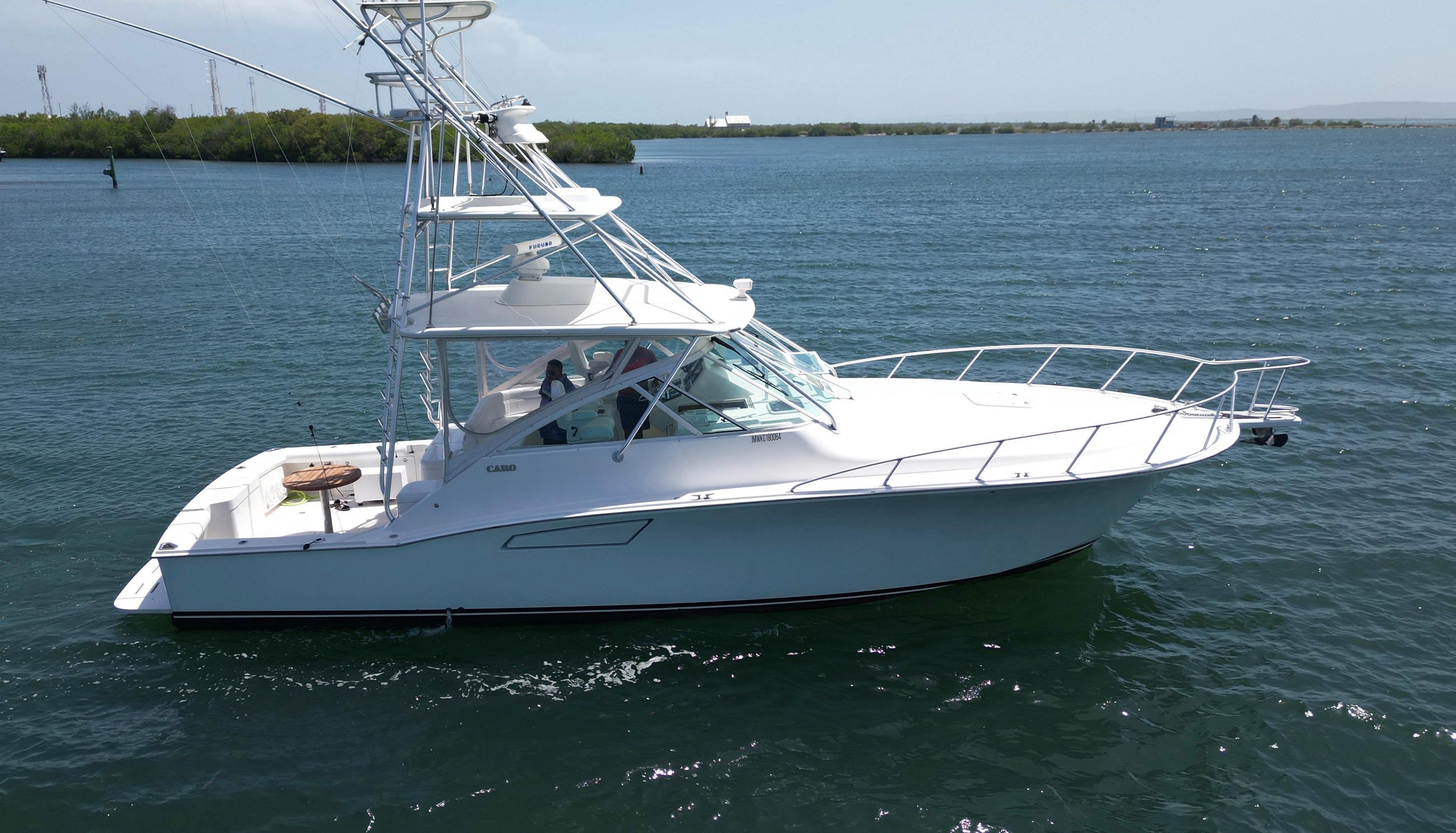 2007 40 Cabo Express with Tuna tower.Trades welcome and financing available." Feeva" is owned by an experienced boat owner. Lightly fished, mainly a beach boat. This single stateroom single head layout sleeps 4. Feeva comes with rare Caterpillar C12 engines with aprox 3300hrs. The 40 hull is the best riding Cabo they made. Feeva runs flawlessly. Fully fished rigged with extra freezers and refrigeration in the cockpit. Helm ac.Key Upgrades Include:- Recent 3000hrs service.- New cockpit upholstery/combing bolsters.- New Fusion stereo system. Over 40k.- New cockpit enclosure.- Upgraded Garmin electronics.- Recent bottom paint.- Recently tuned props.- New interior carpets.All new batteries and chargers Aug 2024Feeva comes with a teak table and a new Blue Water rocket launcher.Motivated owner. Bring offers!