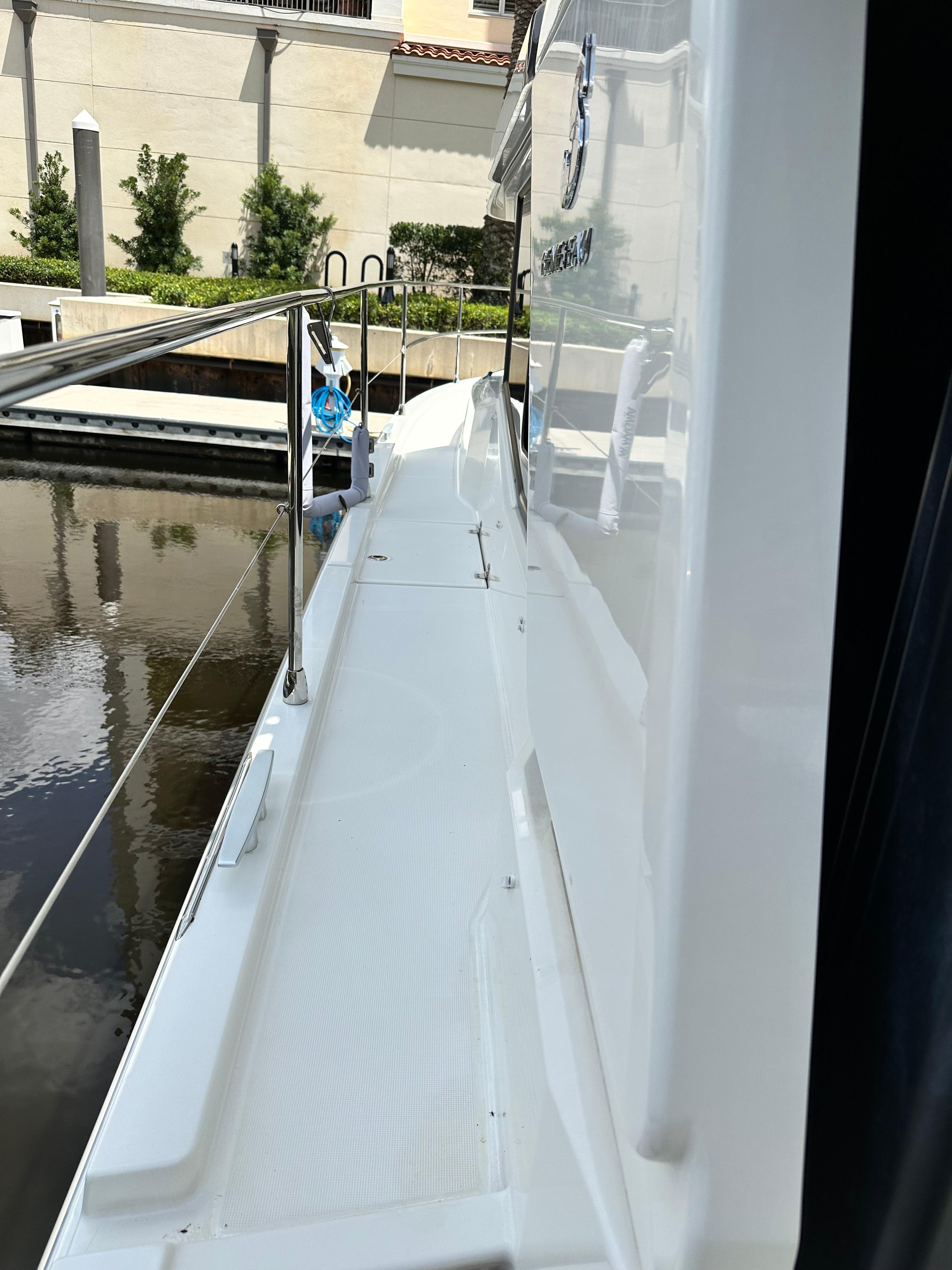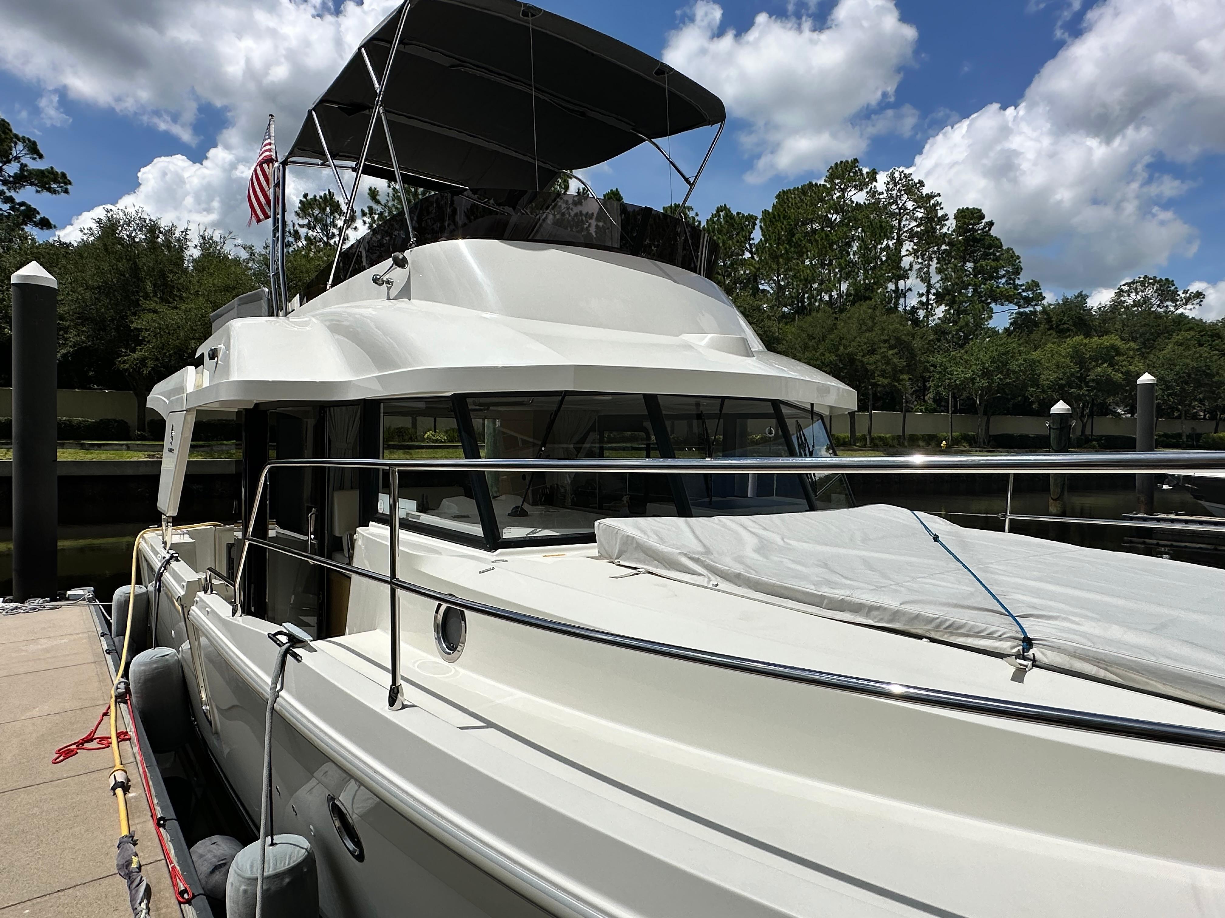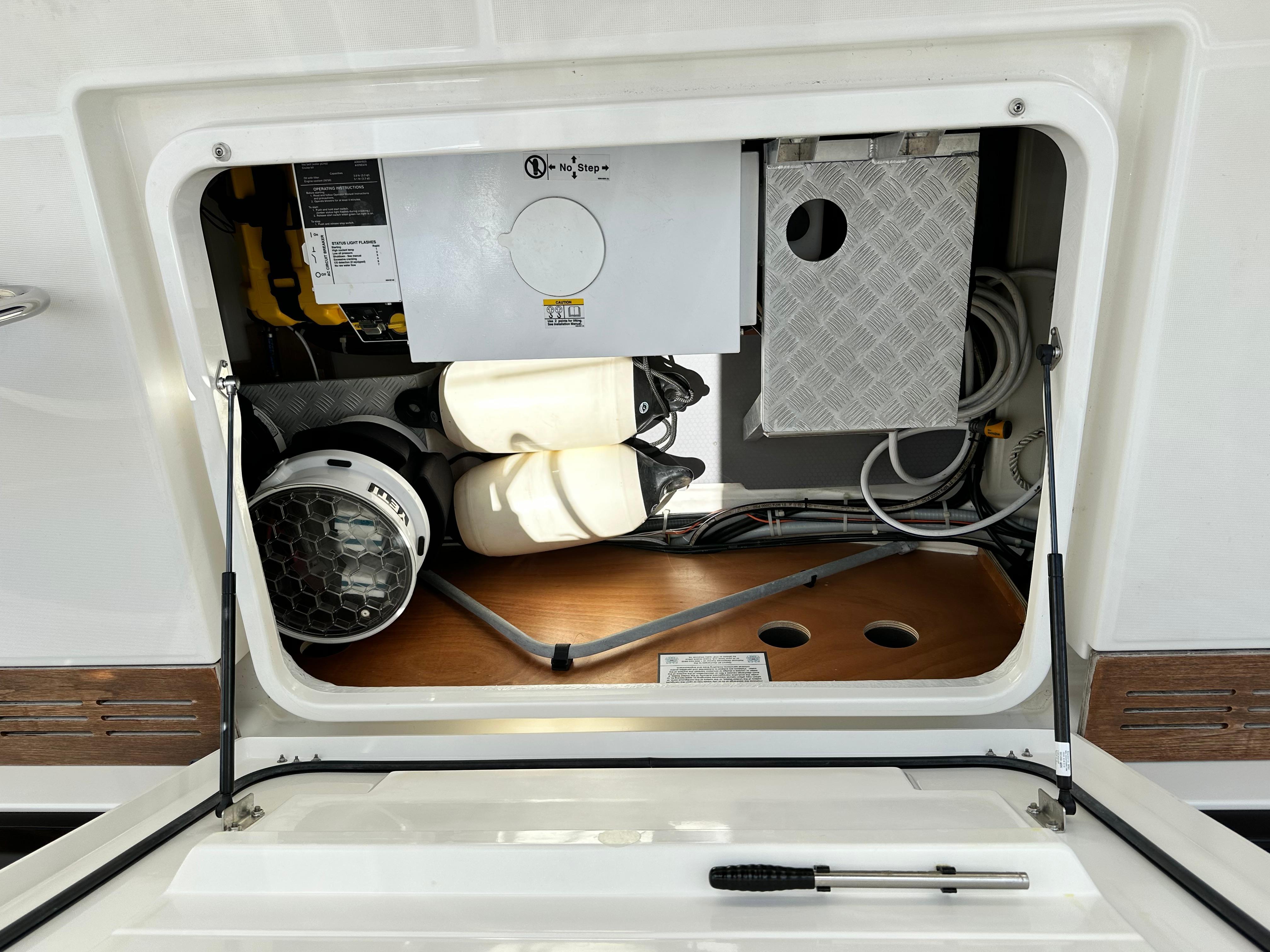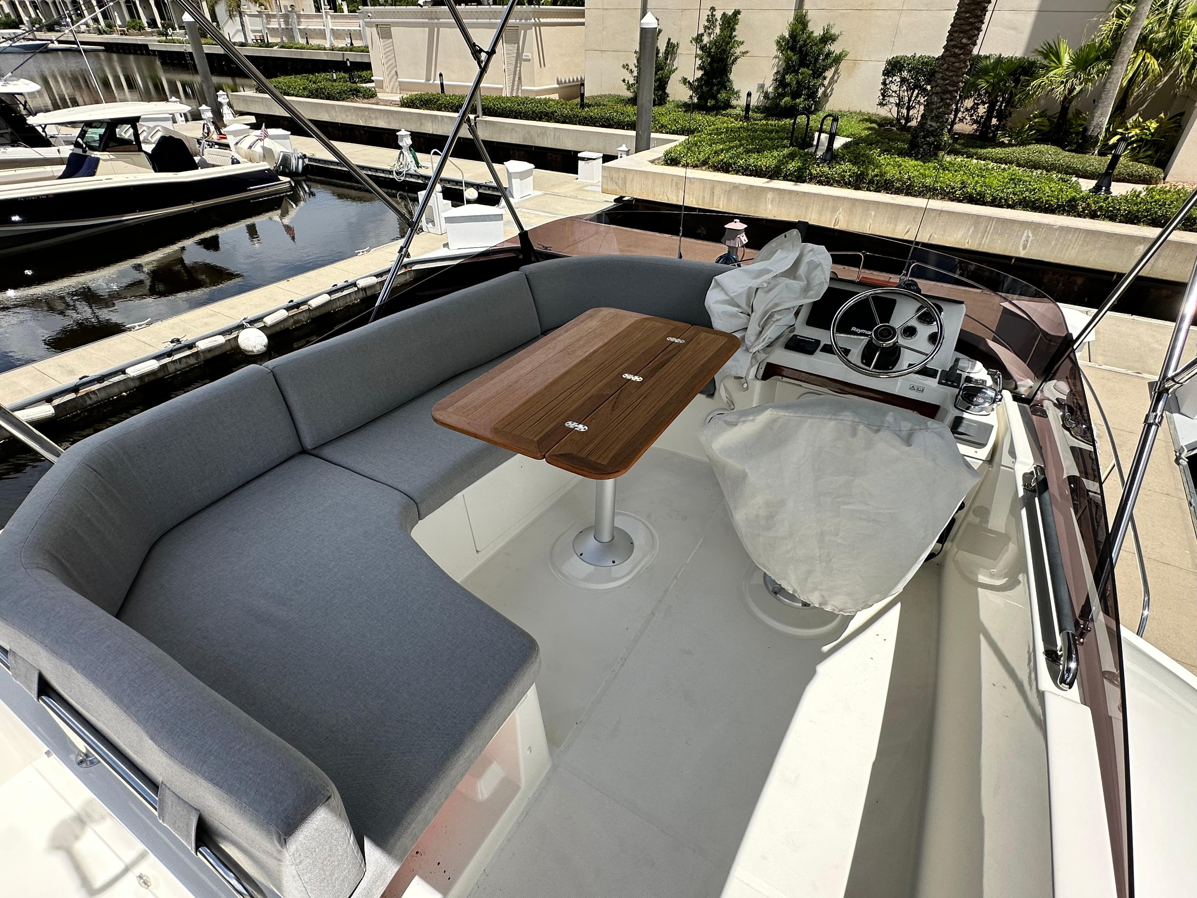 For the life of this boat she has been cleaned on the exterior twice a month and waxed quarterly.Flybridge9" Raymarine chartplotterRaymarine autopilotLenco trim tabsQuick bow and stern thruster controlsFusion stereo controlsLED overhead lightsBiminiDirectors chairsTeak folding dining tableDulce 51 grey exterior cushions with covers