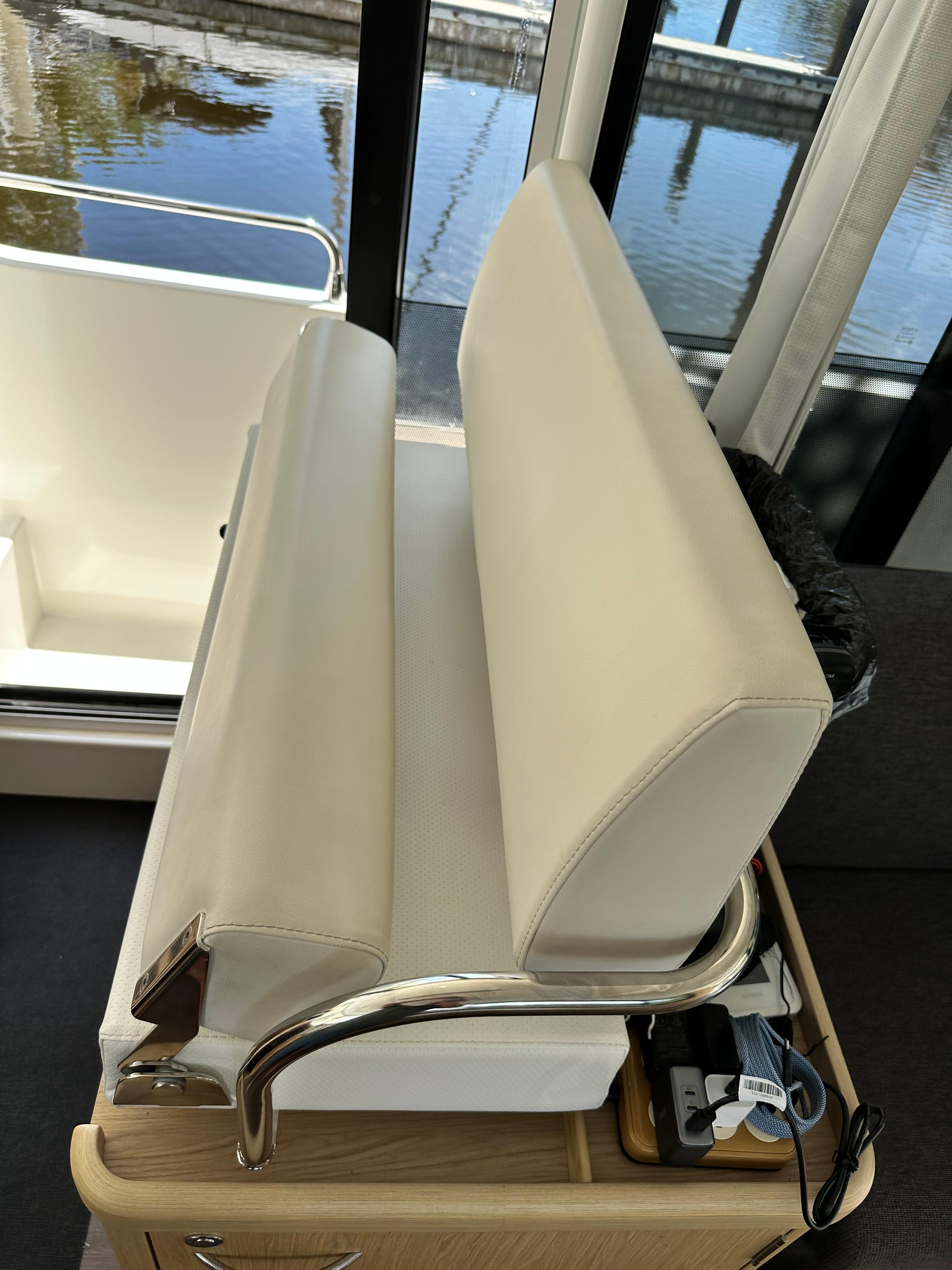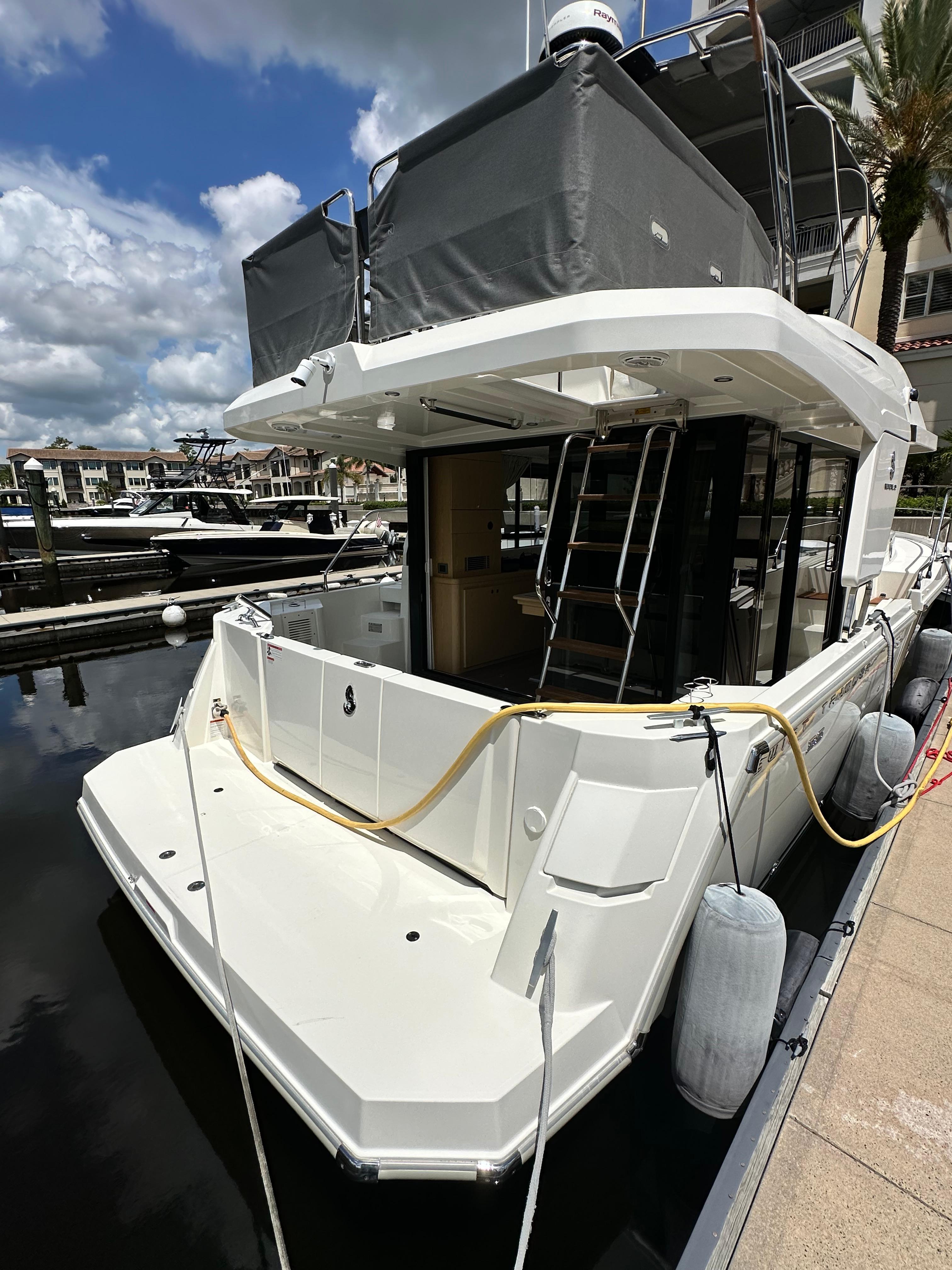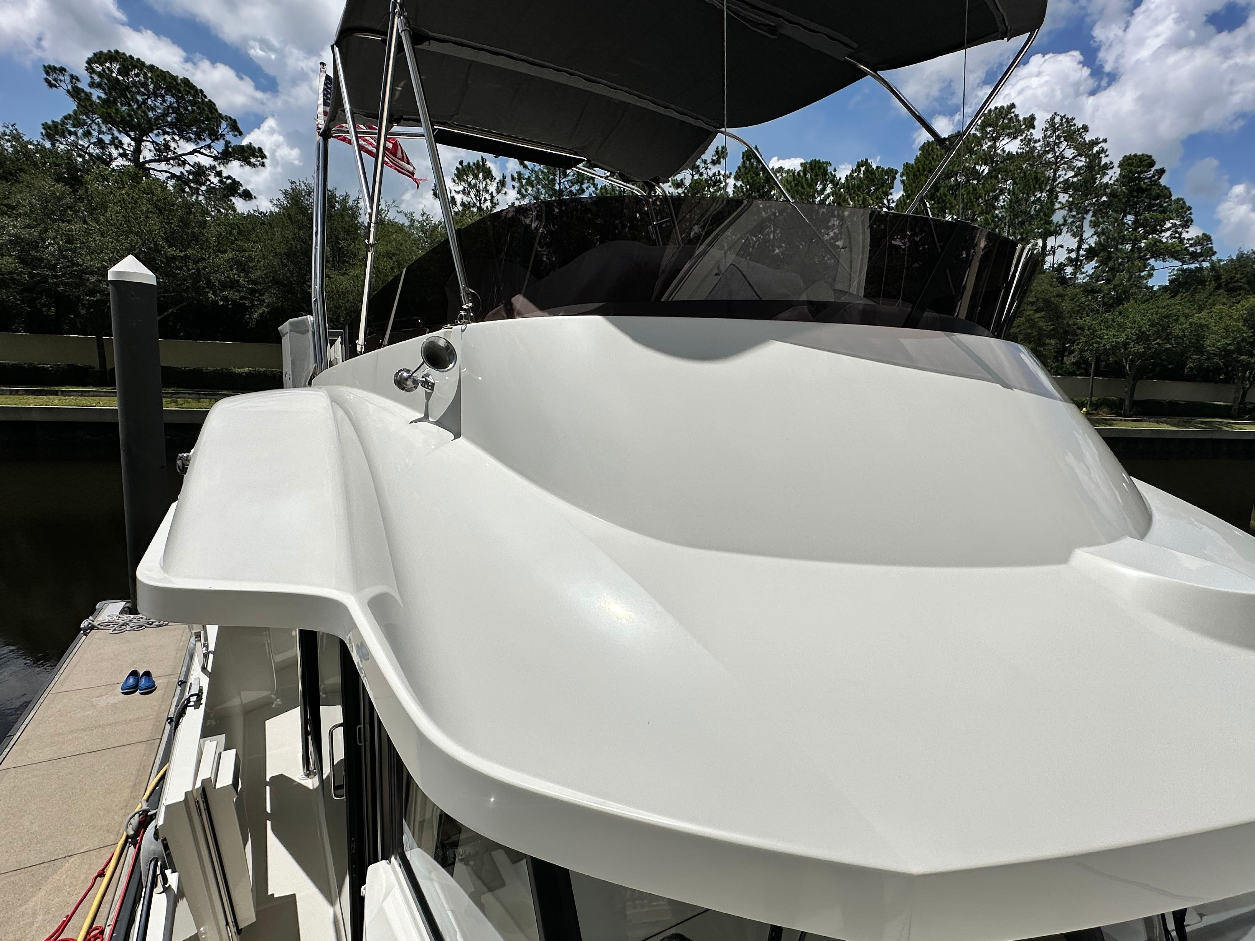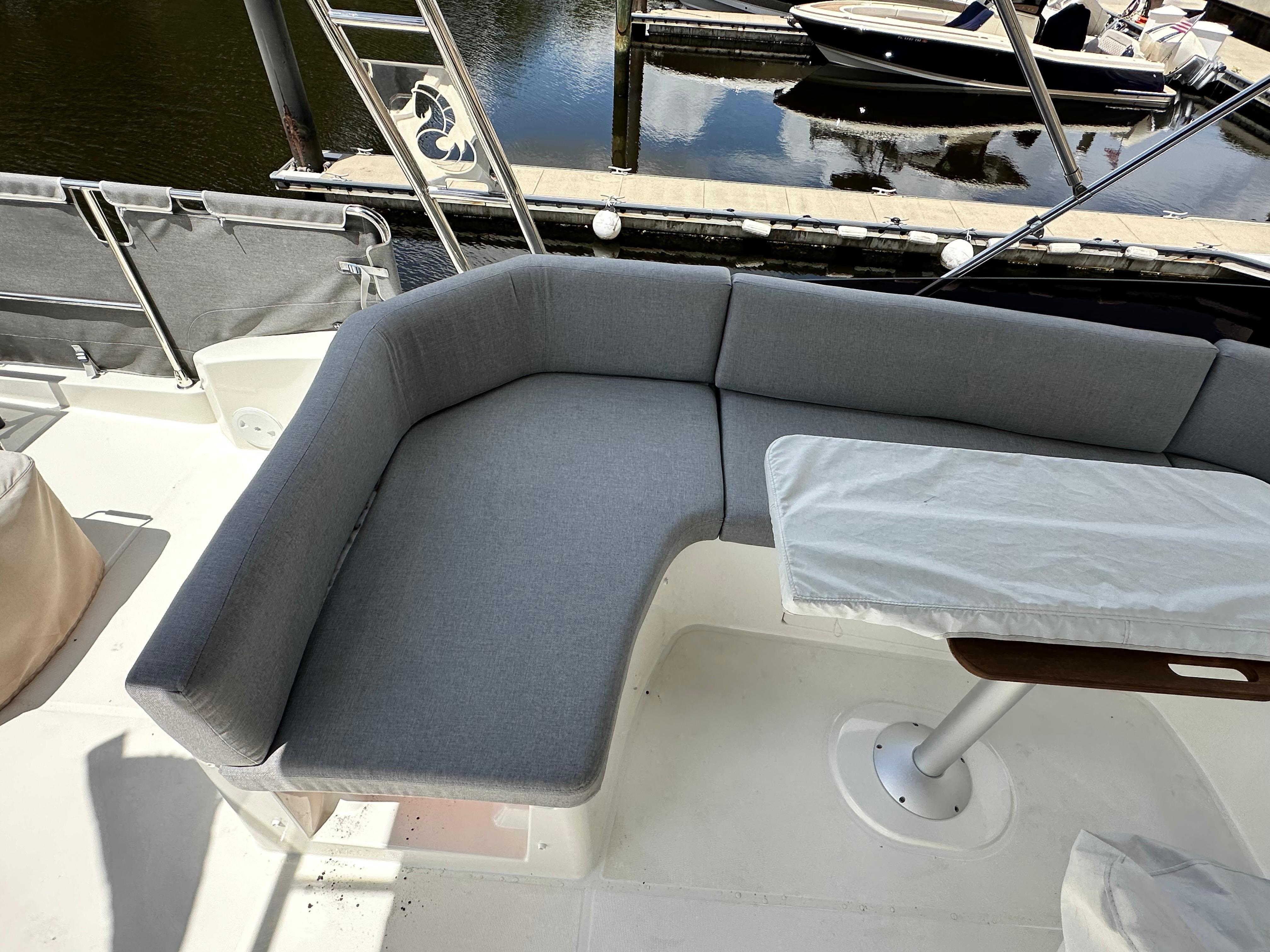 For the life of this boat she has been cleaned on the exterior twice a month and waxed quarterly.Flybridge9" Raymarine chartplotterRaymarine autopilotLenco trim tabsQuick bow and stern thruster controlsFusion stereo controlsLED overhead lightsBiminiDirectors chairsTeak folding dining tableDulce 51 grey exterior cushions with covers