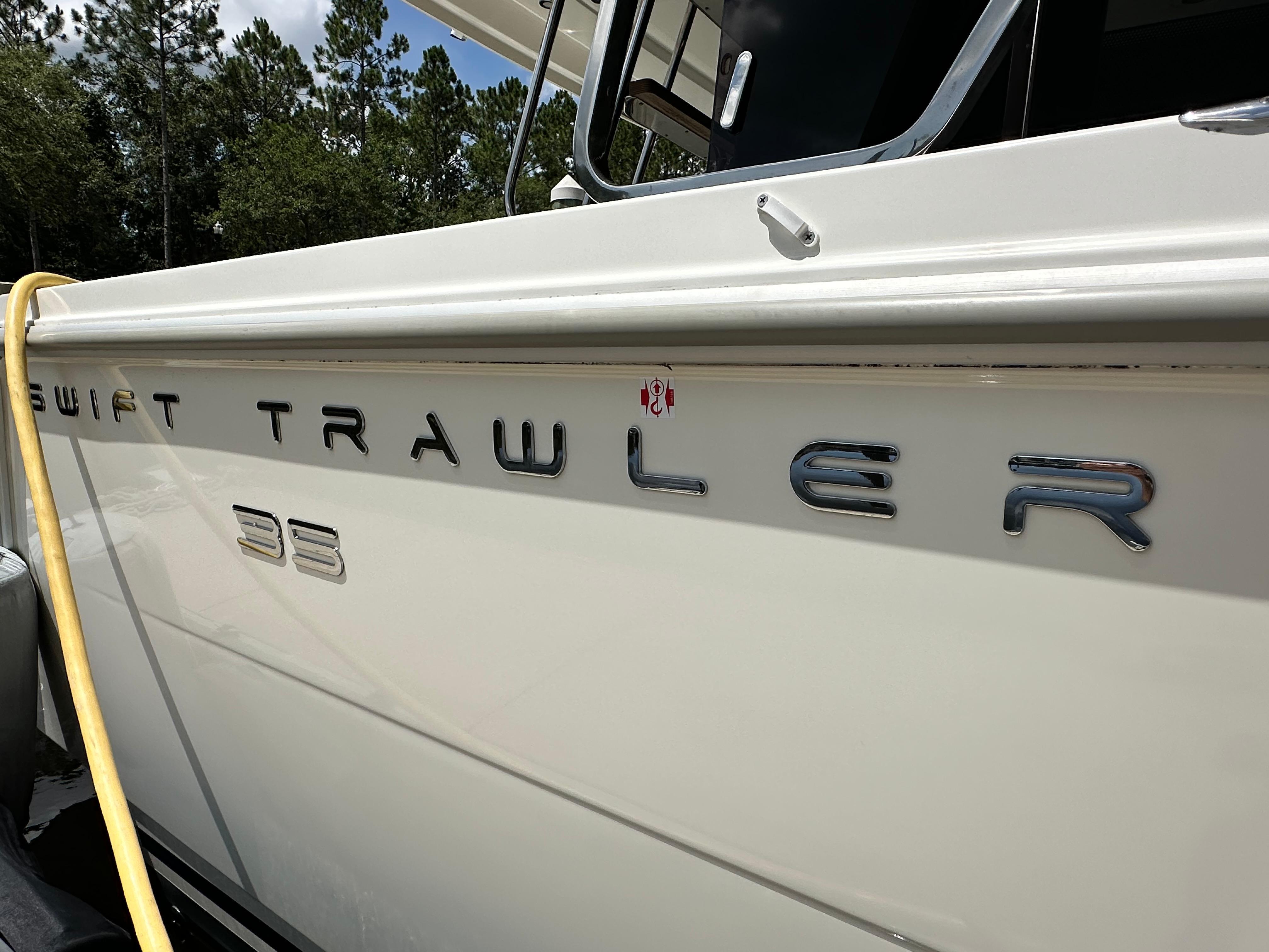 The Swift Trawler 35A safe, comfortable, and ingenious boat designed for the high seas. The many features and the size of the Swift Trawler 35 will tempt you to go on a long cruise. She has strong, harmonious lines allowing you to feel assuredly safe, a quality repeated in the design and features throughout the entire boat.This Swift Trawler 35 is a great example of the boat. She has only 165 on the engine and 49 on the generator. Her interior is light, airy and clean and ready for her next adventures. With her opening transom doors, the large main salon and well appointed galley she is ready to take you of the beaten path for extended cruising along the coast, the Great Loop or even the Bahamas.She has a stateroom with bunk beds to port and a large head and shower to the starboard. Forward is the primary stateroom with a queen bed and lots of storage for the extended trip.
