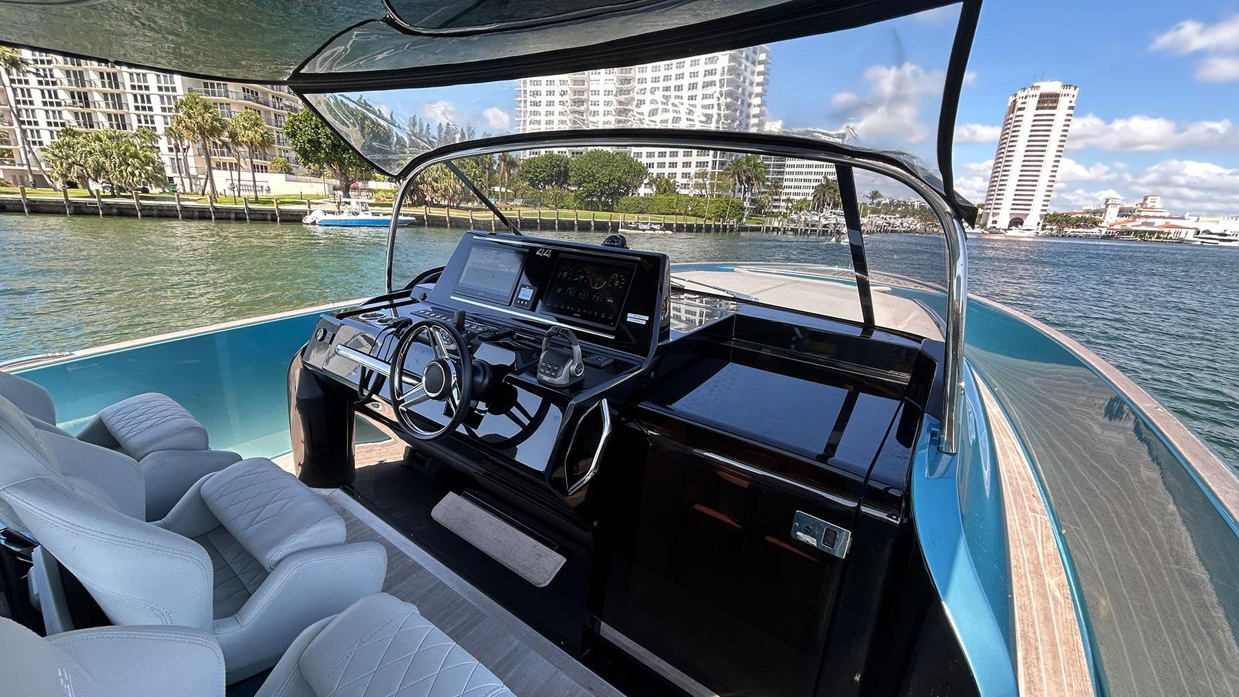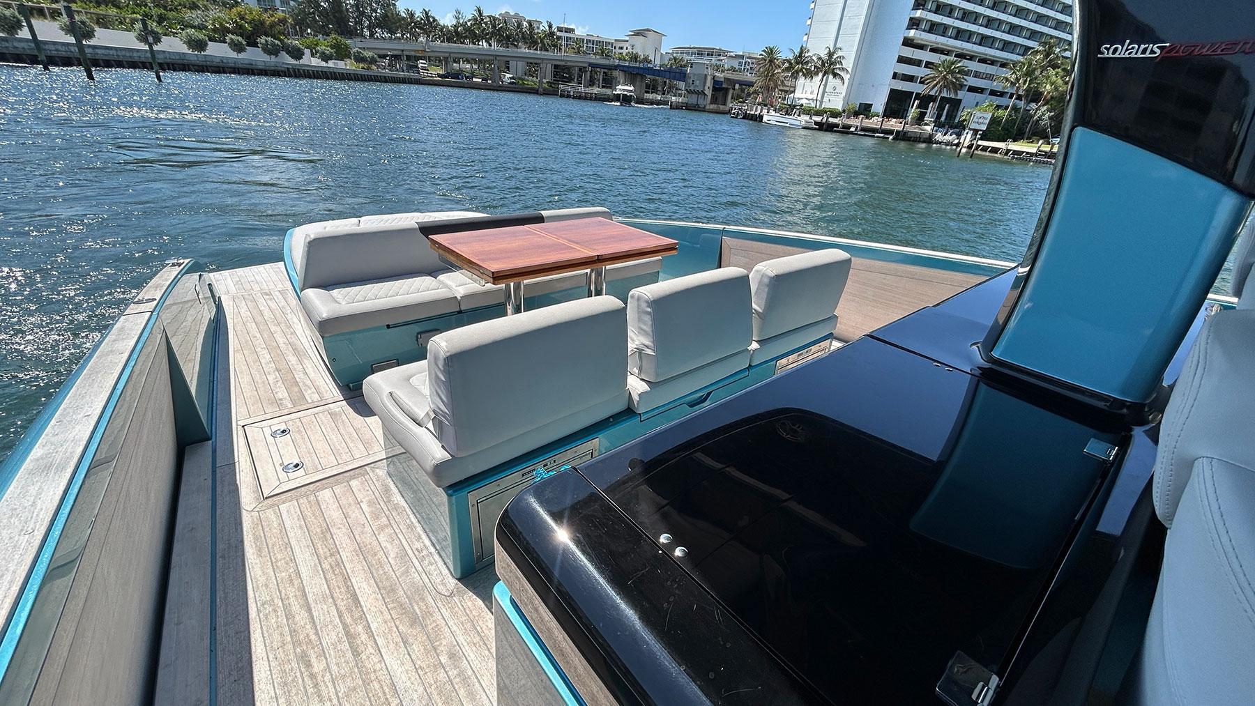 2022 Solaris Power 44 Open – This yacht is a head turner! Limited Production Metallic Blue Hull Color Key Features:- Exterior open Galley, Single-mast hard-top, Two cabins with optional Two queen berths, and bow/stern sunbeds.- Folding Side Platforms: Expand your deck space effortlessly, creating a spacious area for entertaining, lounging, or water activities, enhancing the yacht’s open-concept appeal.- Carbon Hard Top: Lightweight yet robust, the stylish carbon hard top provides shade and protection while adding a modern, sporty aesthetic.- Joystick Controls: Maneuver with precision and ease in tight marinas or open waters, making docking and navigation a breeze for captains of all skill levels. - Large Hydraulic Swim Platform: Dive into adventure with this expansive, hydraulically operated platform, perfect for swimming, boarding water toys, or relaxing by the water’s edge.This Solaris Power 44 Open is powered by twin Volvo Penta D6 IPS 650 engines, delivering thrilling performance and efficiency. The open layout boasts premium finishes, ample seating, and luxurious amenities, ideal for hosting guests or enjoying private getaways. Meticulously maintained and ready for immediate use, this yacht is a rare opportunity to own a vessel that combines innovation with timeless elegance.Contact us today to schedule a viewing and experience the 2022 Solaris Power 44 Open for yourself. Don’t miss your chance to own this exceptional yacht, ready to make your maritime dreams a reality!