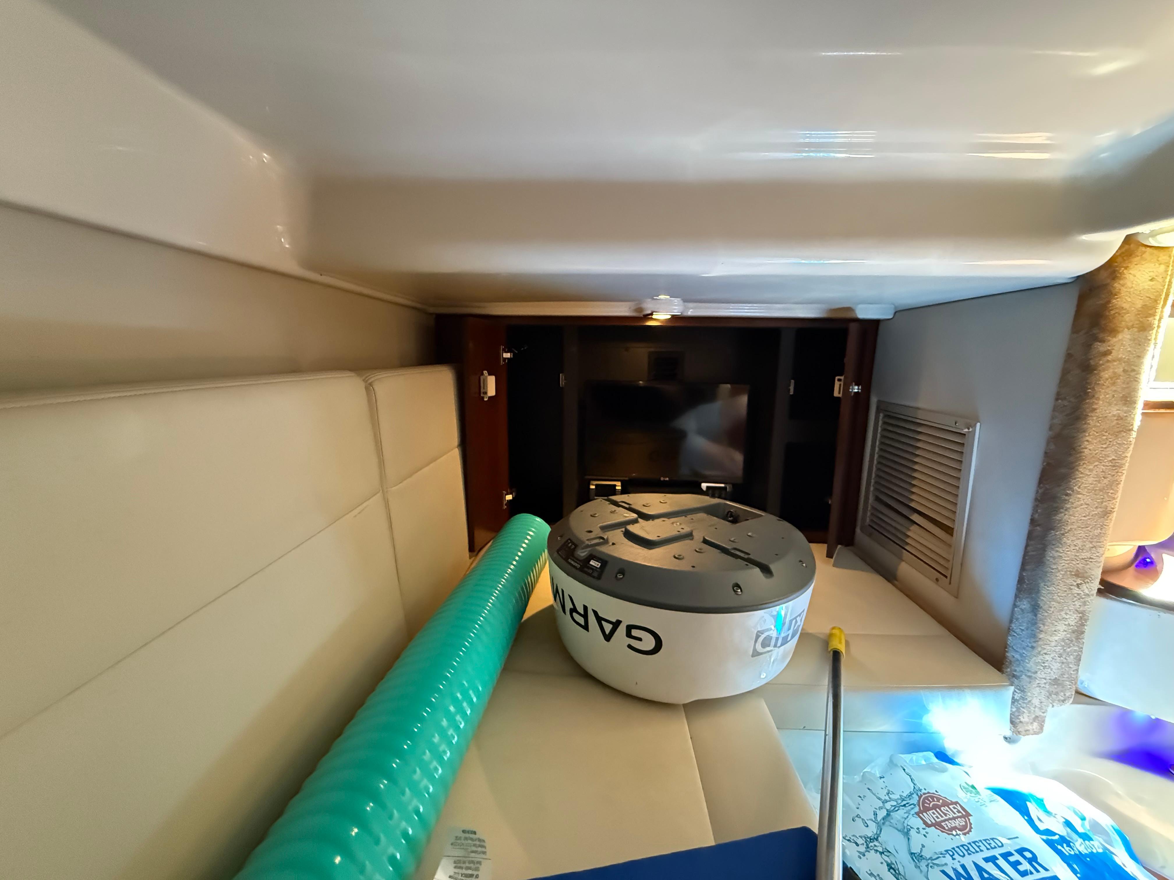 - Main Cabin Television 22" Flat Screen, Dual Positioning with DVD, Hardtop Antenna and TV Coax to Dockside