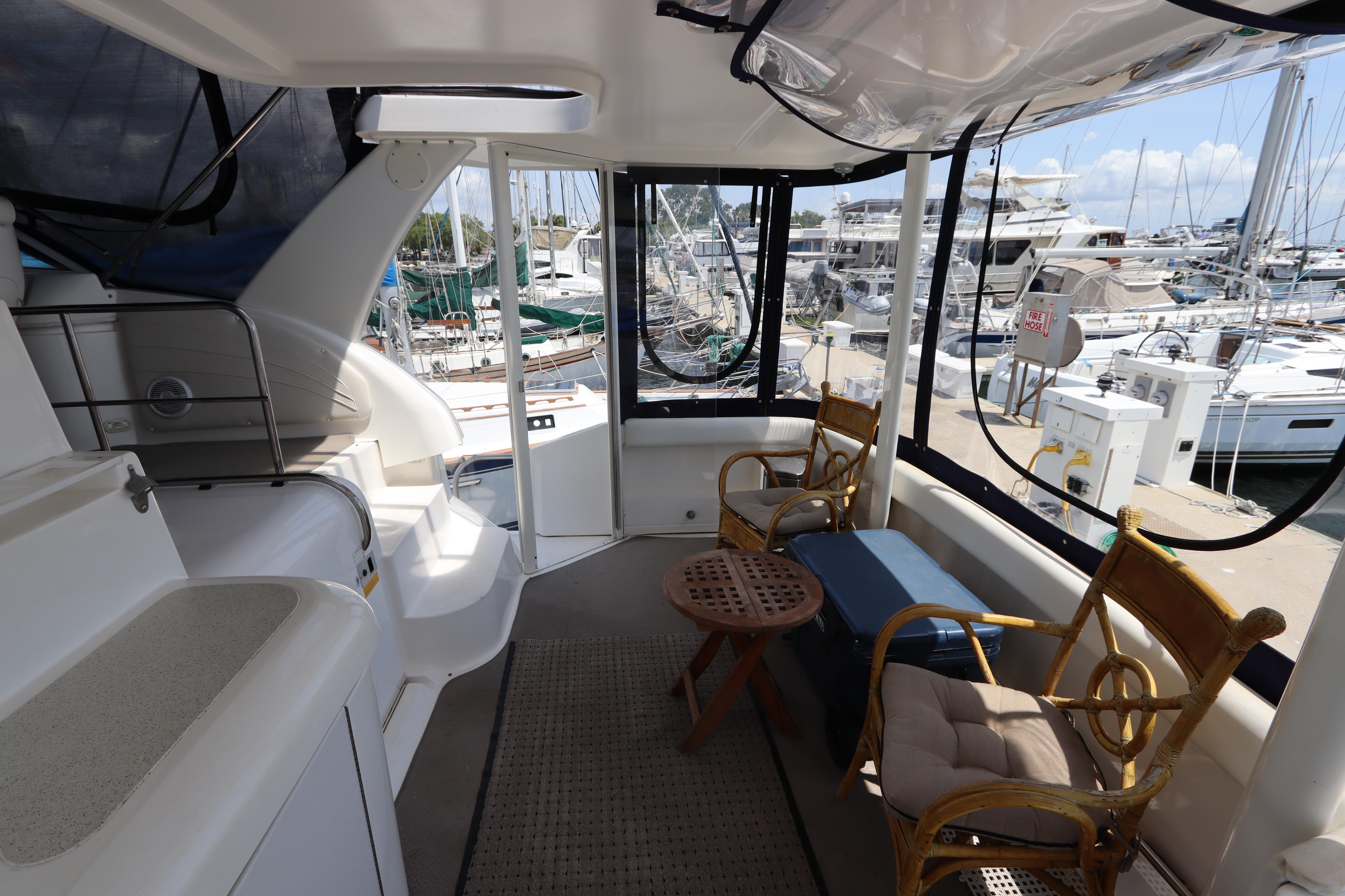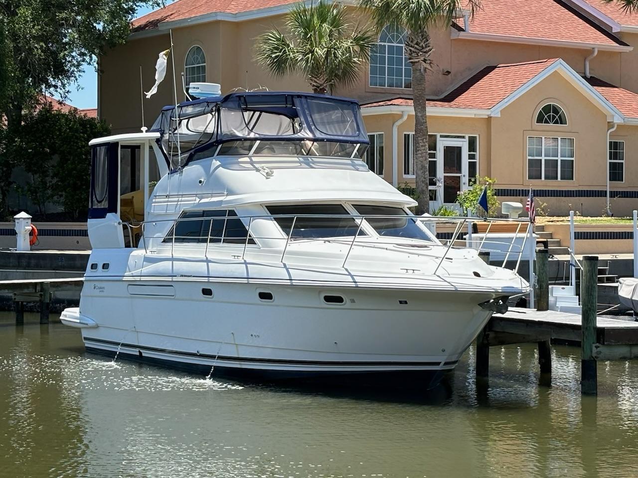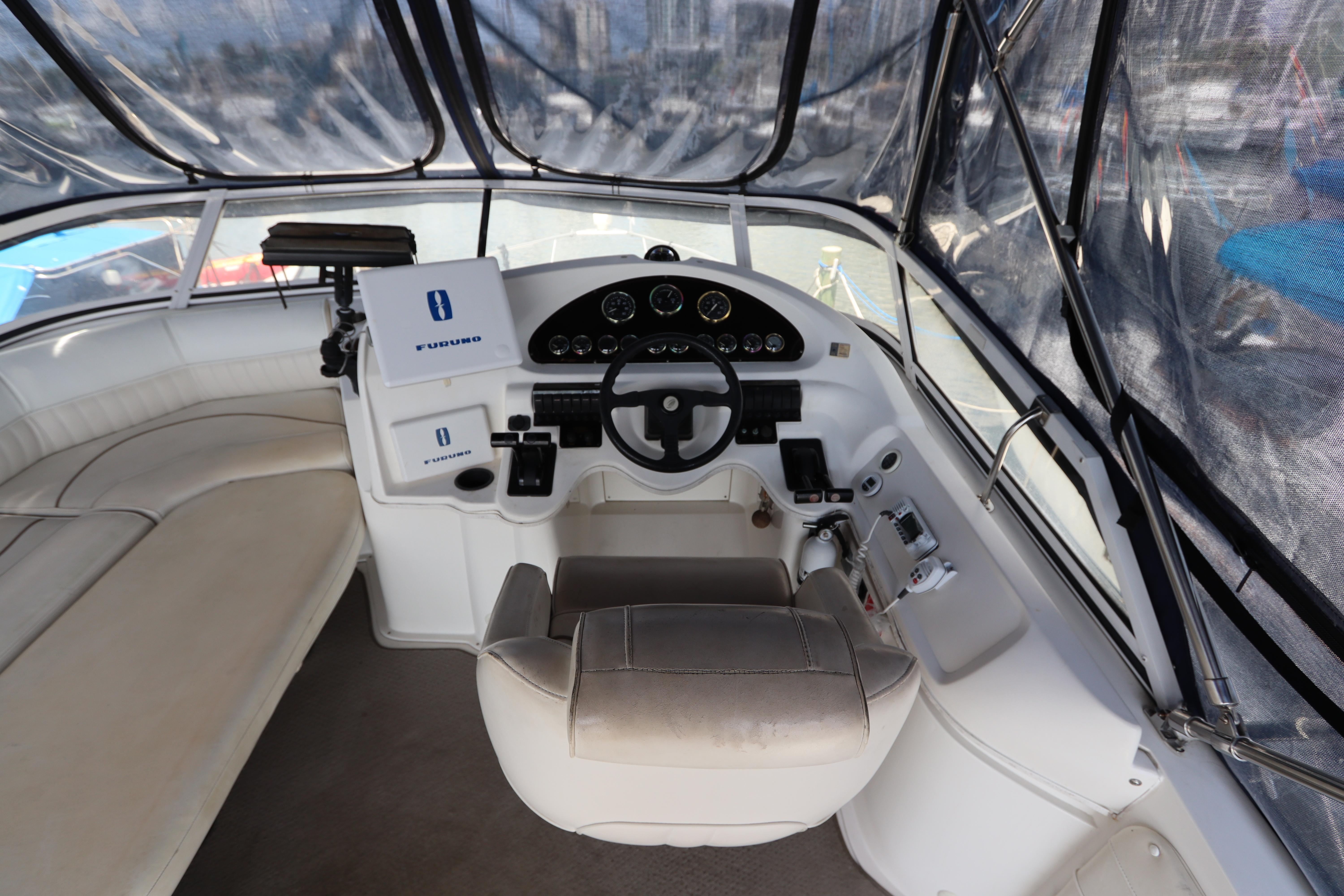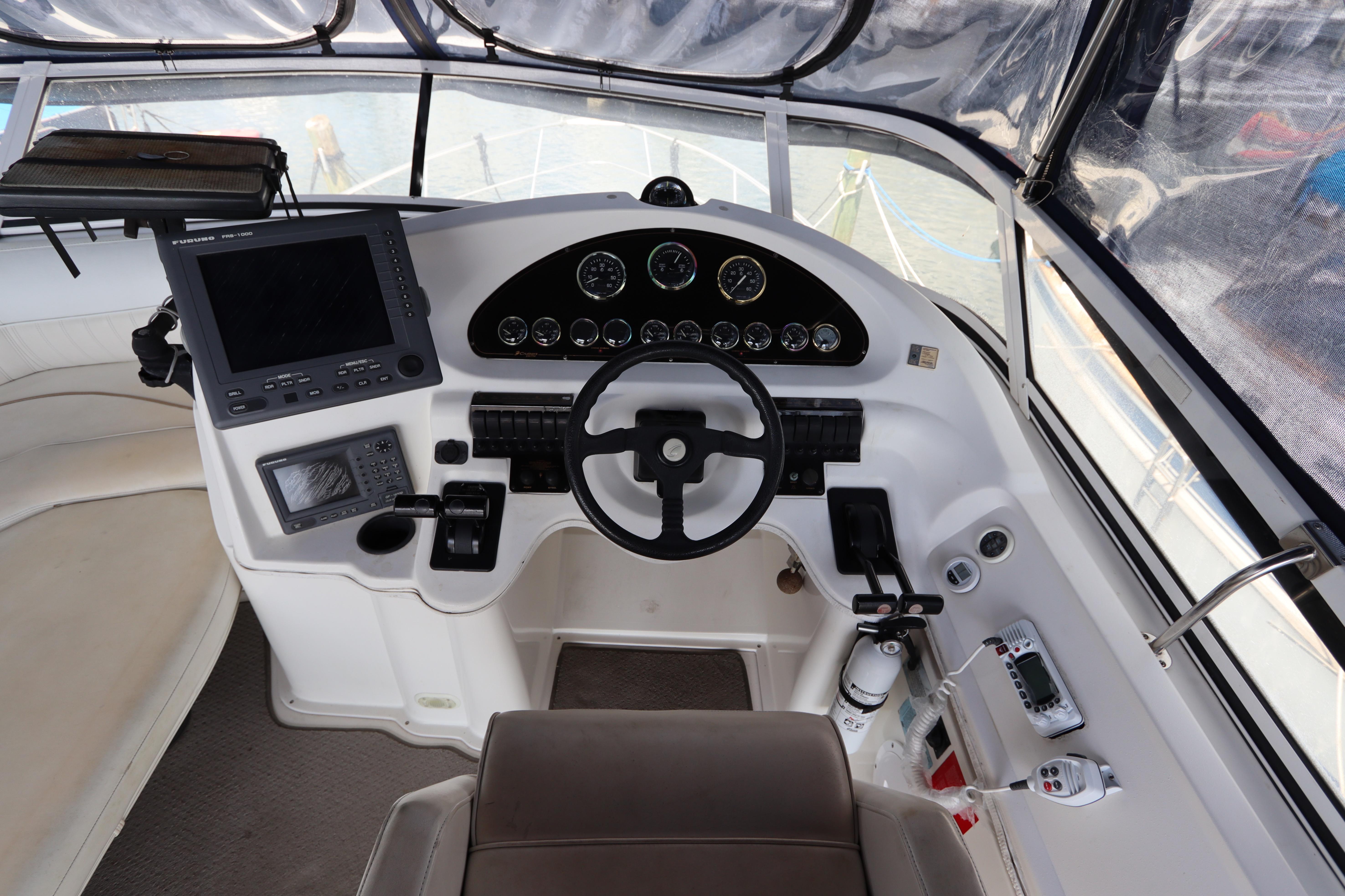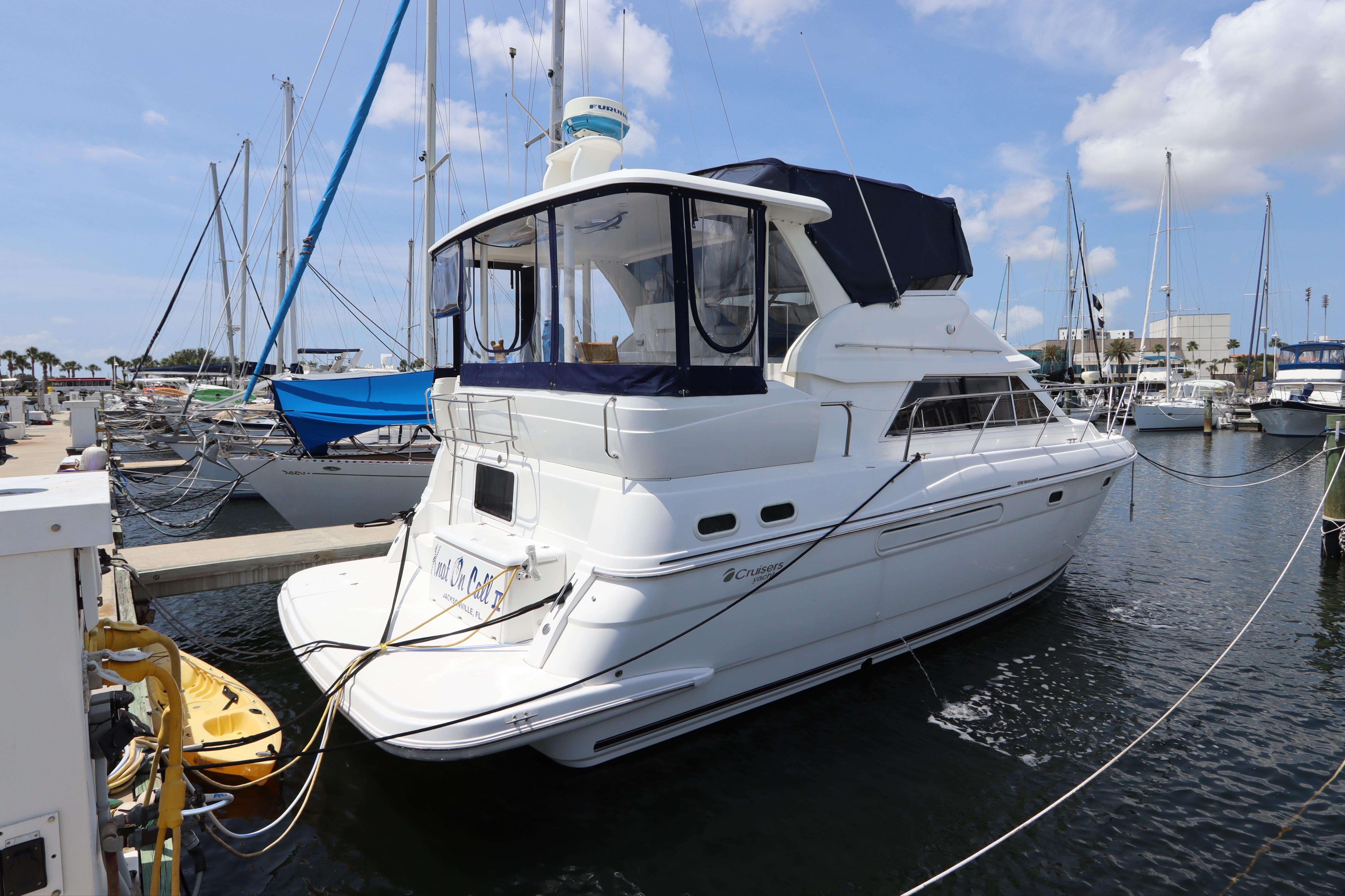 Twin Freshwater Cooled 340HP MerCruiser Horizon 7.4L MAG MPI EnginesStarboard Engine New Long Block 2022Port Engine New long Block 2023Kohler 7.3kw Generator W/482 HoursNew Shaft Seals March 2023New Bottom Job November 2024New Canvas April 2025New AGM Starting Batteries February 2025New House Batteries May 2025Cruising comfort for the whole family is taken to new levels with the Cruisers 3750 Motoryacht. This deluxe aft-cabin design offers smooth handling, excellent living space, molded-in steps instead of ladders, and all the comforts of home to make for a great experience in pleasure cruising. The ergonomically designed helm station offers paired gauges, accessible controls, and room for additional electronics. The 3750's aft deck features optional wing doors, a well-appointed wet bar, plenty of space for relaxing or entertaining on board, and convenient molded-in steps to all areas of the boat and swim platform. This cruiser's bright, spacious salon features a booth-style dinette - double berth to starboard, a galley to port, and 6-foot, 6-inch headroom throughout. In addition, her full-service galley includes a large refrigerator and freezer, microwave oven, electric stove, as well as impressive counter and storage space. The master stateroom aft boasts a large island double berth with inner spring mattress and generous storage for cruising vacations, whereas the forward stateroom offers a large double berth and ample storage space. The master head, part of the aft-cabin suite, features standing headroom, a large vanity and sink and, as a special touch, a bath tub with shower; the forward head includes a shower and standing headroom.