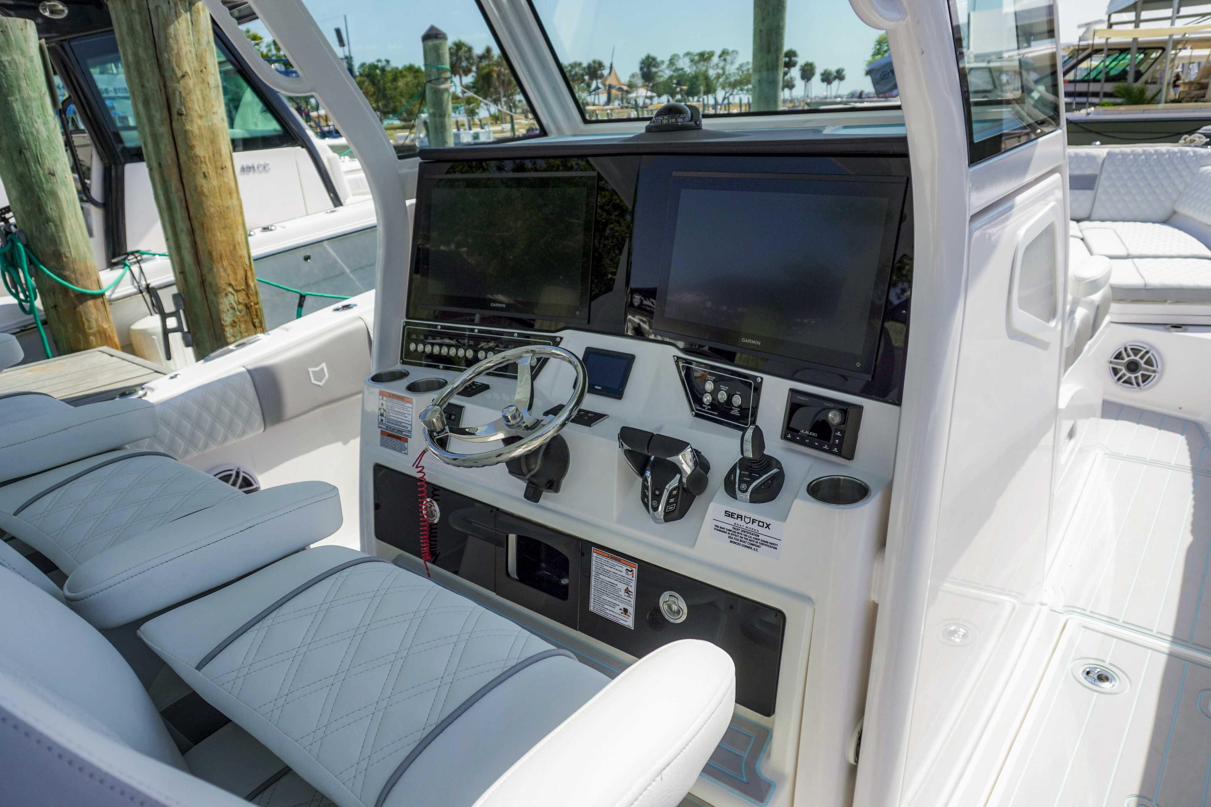 2025 Sea Fox 368 Commander – Triple Yamaha 350s – Offshore Luxury Meets Hardcore FishabilityPower. Comfort. Prestige.The Sea Fox 368 Commander is the flagship of the fleet—and it shows. Powered by triple Yamaha 350s for a combined 1,050 horsepower, this machine is ready to dominate offshore runs, high-speed cruises, and anything in between.Built for the serious angler and refined for the family, the 368 Commander delivers unmatched versatility with high-end fit and finish throughout. Featuring a deep-V 23° deadrise hull and infused composite construction, it offers a smooth, stable, and dry ride in even the nastiest chop.Performance Highlights:Cruising comfortably at 35–40 MPHTop speed around 55 MPHEstimated range of 350–400 miles on 377 gallons of fuelSea-trial proven layout with Yamaha Digital Electric Steering and Helm Master EX joystick for effortless controlLuxury Features:Spacious cabin with berth, electric head, ceramic sink, and air conditioningTriple adjustable helm seats with footrests and armrestsElectric bow table with filler cushion for convertible seatingFull glass hardtop enclosure with vented windshield and sunroofPremium JL Audio system with subs, amps, and zone controlOptional Seakeeper 3 stabilizer and diesel generator for yacht-level comfortFishing-First Design:Twin 50-gallon pressurized livewellsFour in-floor macerated fish boxesTackle center with bait prep stationTransom fridge/freezer combo unitsMassive deck space and rod storage for extended trips offshoreWhether you’re chasing tuna in the Gulf, running to the Bahamas, or hosting sunset cocktails in the marina, the 368 Commander delivers the best of both worlds—rugged performance and refined comfort.Financing available – Buy the boat, pay while you float.Available now at Black Label Marine Group. Call or text our main number to schedule your private showing.