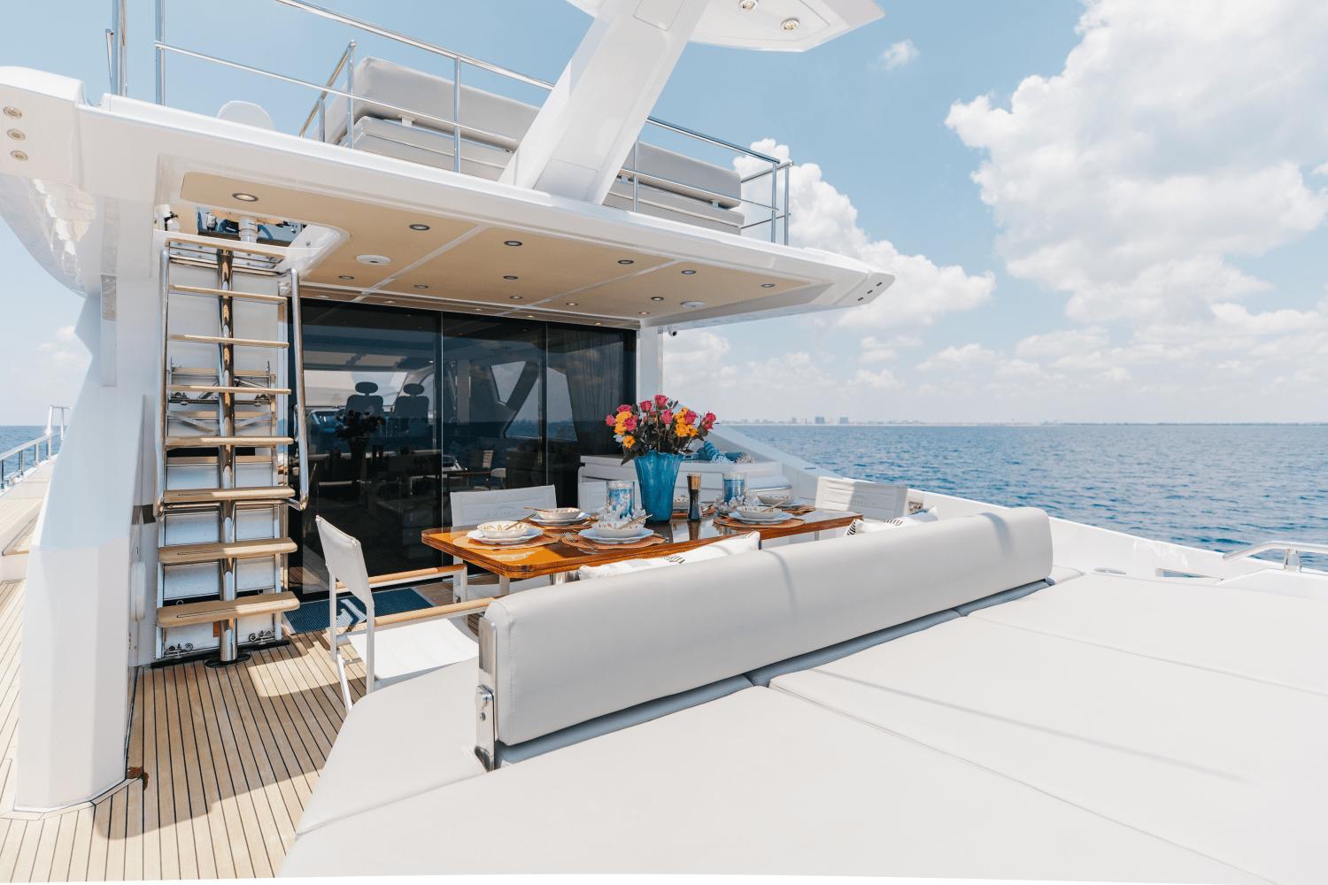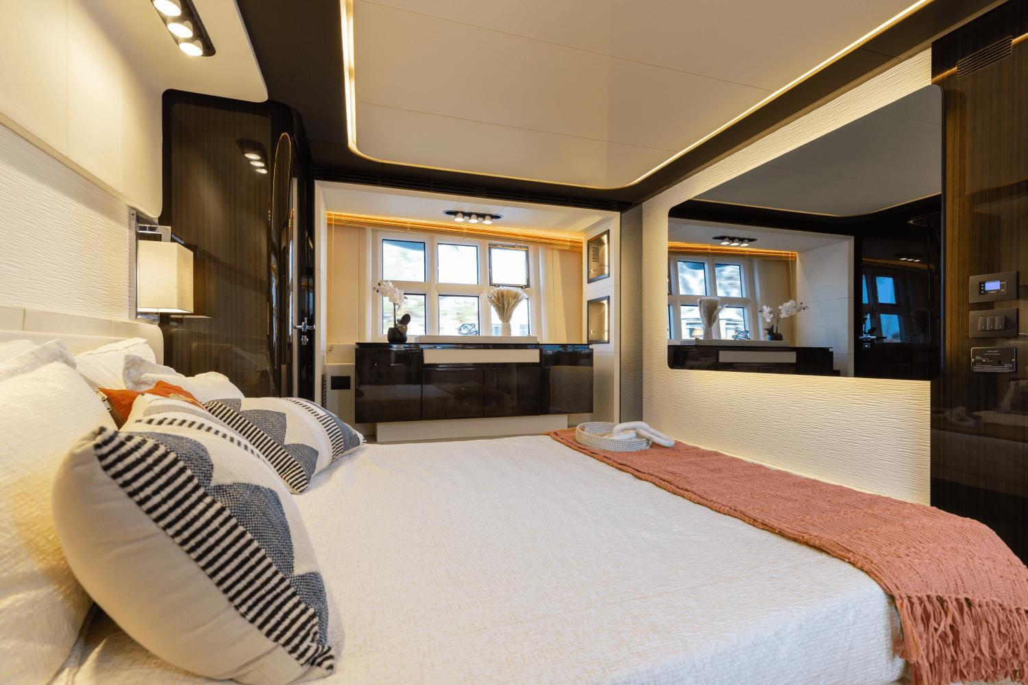The 2019 Azimut 77S seamlessly combines Italian craftsmanship with modern performance and design. Powered by triple Volvo IPS 1350 engines, she offers impressive speed, maneuverability, and fuel efficiency—delivering a refined cruising experience. Her layout features four well-appointed staterooms, including a full-beam master suite, along with separate crew accommodations for enhanced privacy. The salon is bright and spacious, framed by expansive windows and topped with a retractable hardtop that invites natural light throughout. Exterior spaces are equally impressive, with generous sunpads, versatile lounging areas, and a garage capable of housing a tender and SeaBob. This yacht represents the perfect balance of luxury and performance, ideal for the discerning owner seeking both comfort and capability at sea. She is conveniently located in Pompano Beach, FL and comes with Passport Premier Extended Warranty valid until 4/29/27 and she has new interior carpet.
