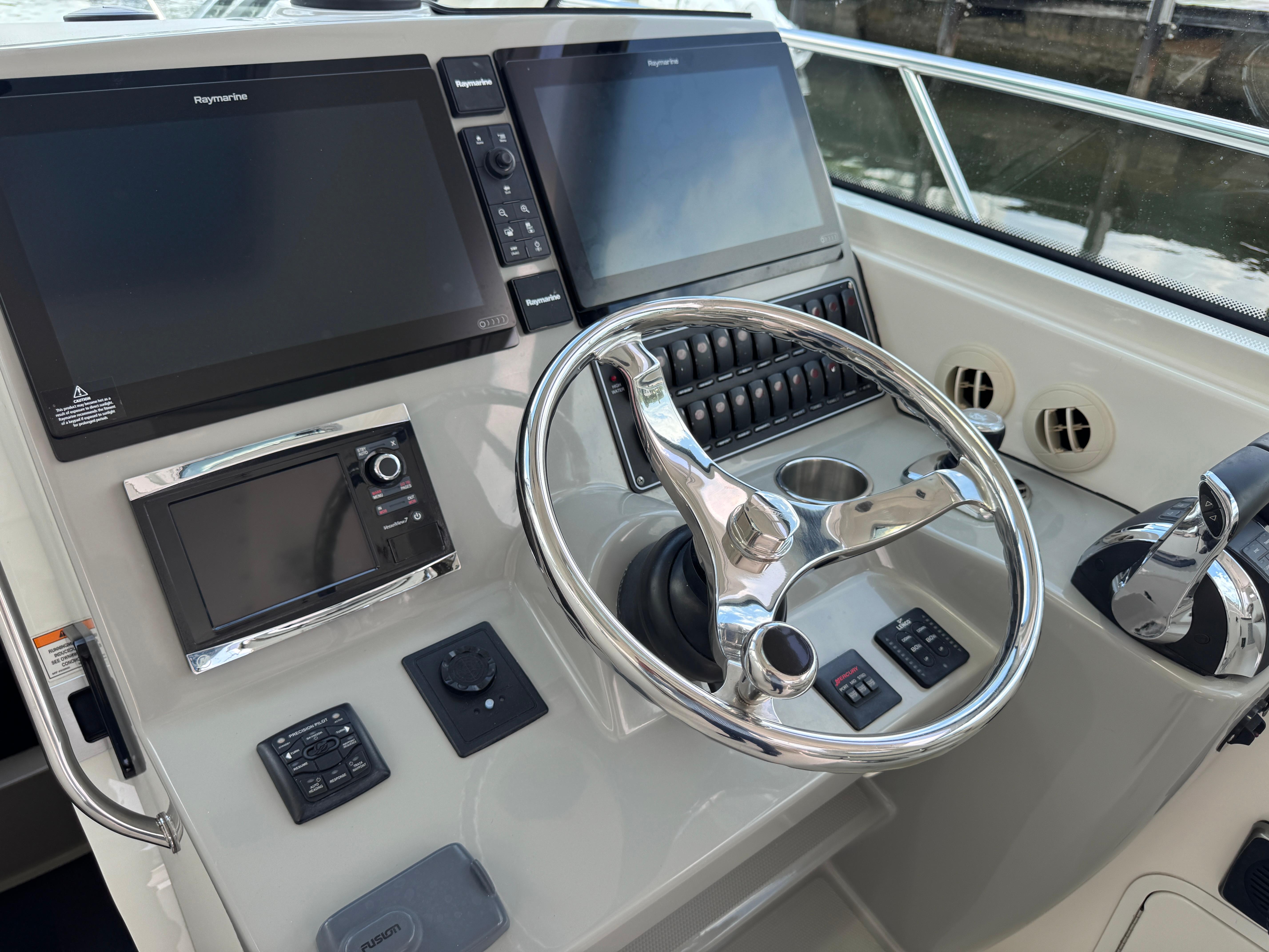 With its sleek deep-V hull, wide beam leafs to a great ride and makes this an the award-winning Boston Whaler 345 Conquest that tackles both saltwater fishing and sophisticated entertaining with ease. Ample fishing amenities and touchscreen technology at the helm lead to confident, successful offshore excursions, no matter what Mother Nature throws your way. Premium, fully adjustable seats turn the cockpit into a fantastic alfresco dining space, and a well-appointed cabin with enclosed head, galley and entertainment zone offers comfortable overnighting. Call Daniel Carrazana today for more information on this new arrival. Lets set up a private tour for your family today. Easy to access location 1 mile west of i95 and located 2 miles east of Miami International Airport. Se Habla Espanol. Priced and ready to move quickly!