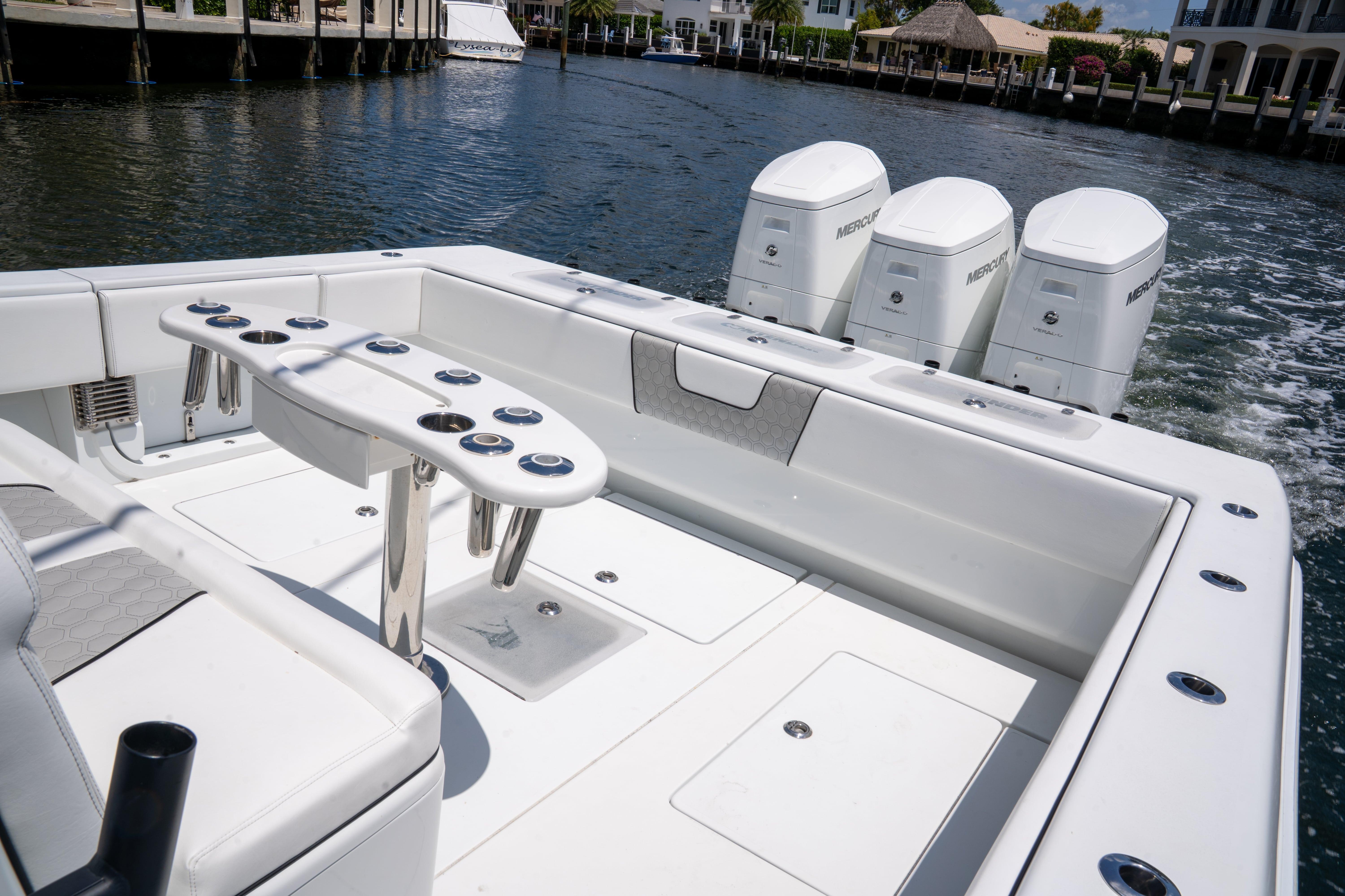 For Sale: 2023 Contender 44 CB – Fully Loaded, Tournament-Ready Introducing this highly optioned 2023 Contender 44CB, combining the unparalleled fishability of the 44ST with room to escape the elements. Equipped with a console berth with 12V air conditioning and electric head, this 44CB excels in the comfort and functionality needed for those long runs. Powered with triple 600 Mercury V12s, the 44CB will get you to the grounds quickly and comfortably.Key Features & Options:Triple Mercury 600 V12 Engines with joystickDual 24” Garmin MFDs- Integrated with radar, sonar, chartplotter, and autopilotCustom Rear Facing Garmin MFD in hardtopGemlux carbon fiber outriggers Seakeeper 3 gyrostabilizer – Industry-leading stability even in rough conditions Contender Gap Tower- 2nd drive station with 12” Garmin, Electric reel plugs, Speakers, joystick Upgraded JL Audio Premium Sound System – Speakers and subs throughout the entire boat including hidden under gunnelMassive fish boxes, live wells, and tackle storage – 3 transom livewells at roughly 45 gallons each, 1 in deck live well, plumbed for an additional on deck bow wellBest Marine XL Livewell pump box with 6 pumps and high speed pick ups Spacious console cabin with 12V A/C, head, berth, and sinkRear facing Mezzanine seating – Comfort for crew and guests with large cooler underneath Removable ISAN glass wings Windless Anchor SystemUndergunnel lighting, Underwater lighting, Spreader lights, Hardtop lights, Speaker lightsGemlux rod holders and cleats throughout Performance & Build:With a 600 gallon fuel capacity and Contender’s signature stepped-hull design, the 44 CB offers unmatched range, efficiency, and handling. Whether you’re chasing pelagics offshore or cruising the coast, this boat delivers in every condition.Why This Boat?This is not your average 44 CB – built to excel in tournament fishing, this build is loaded with every available option including custom options to this boat. Skip the wait time and hit the water today in one of the most elite center consoles available on the market.