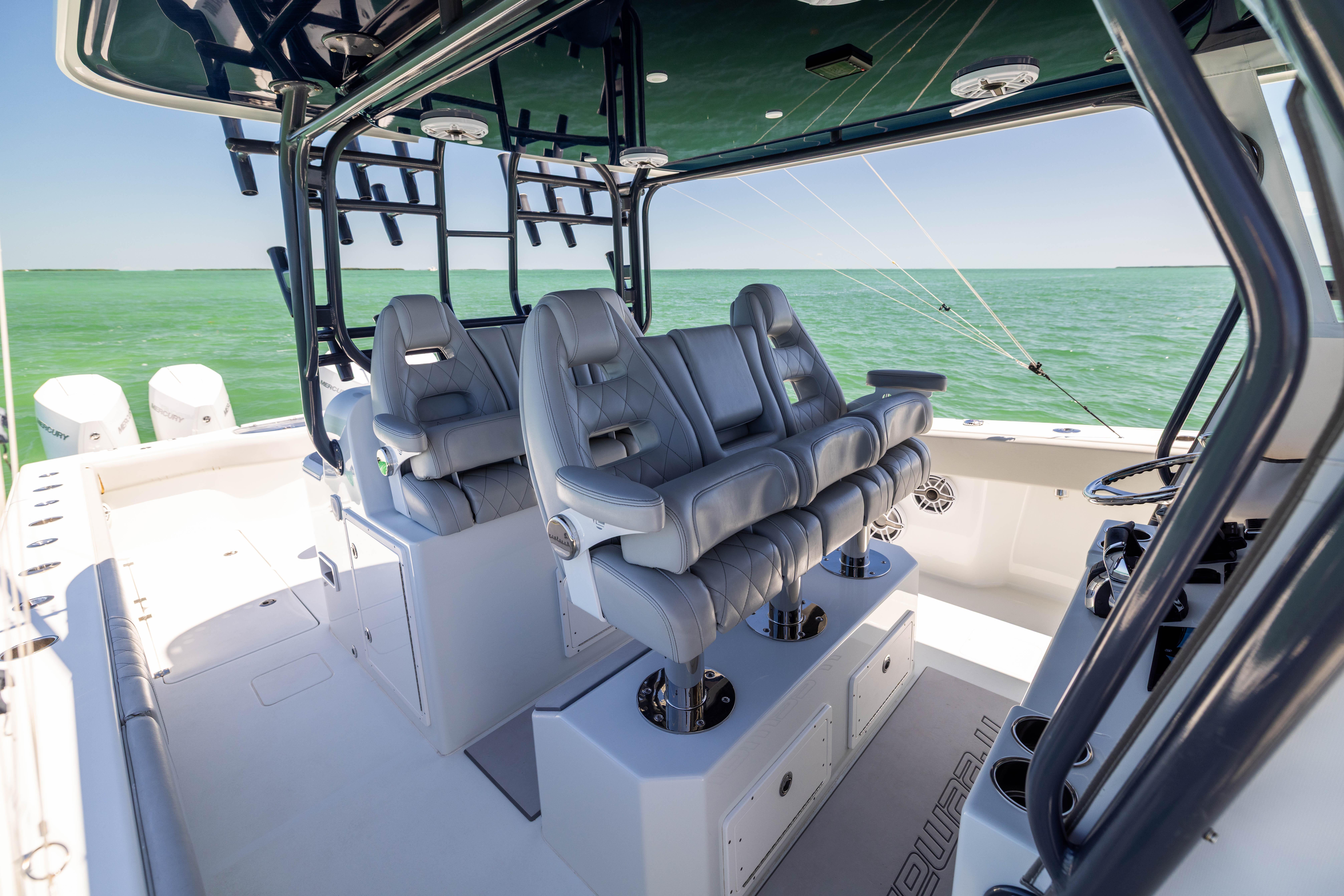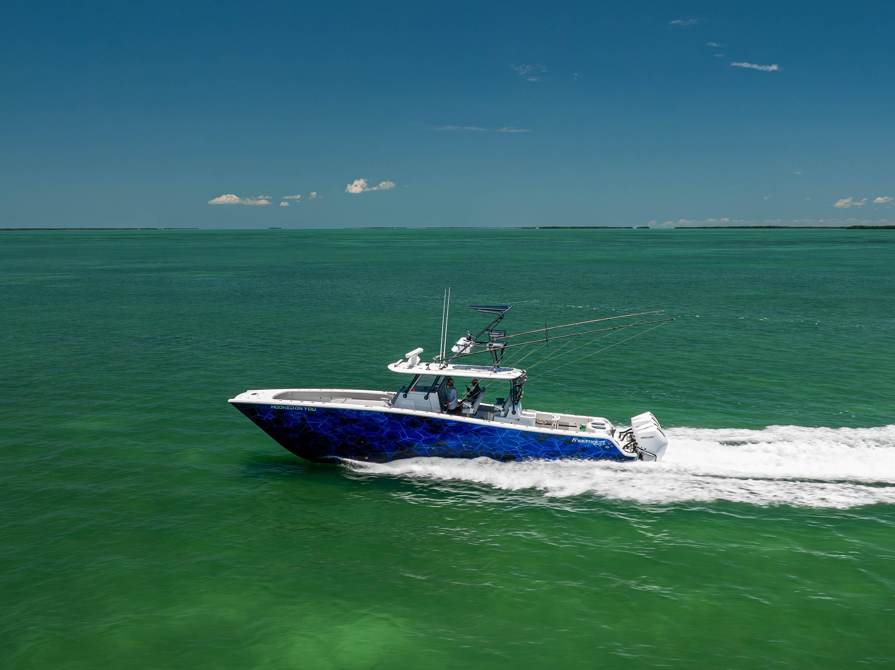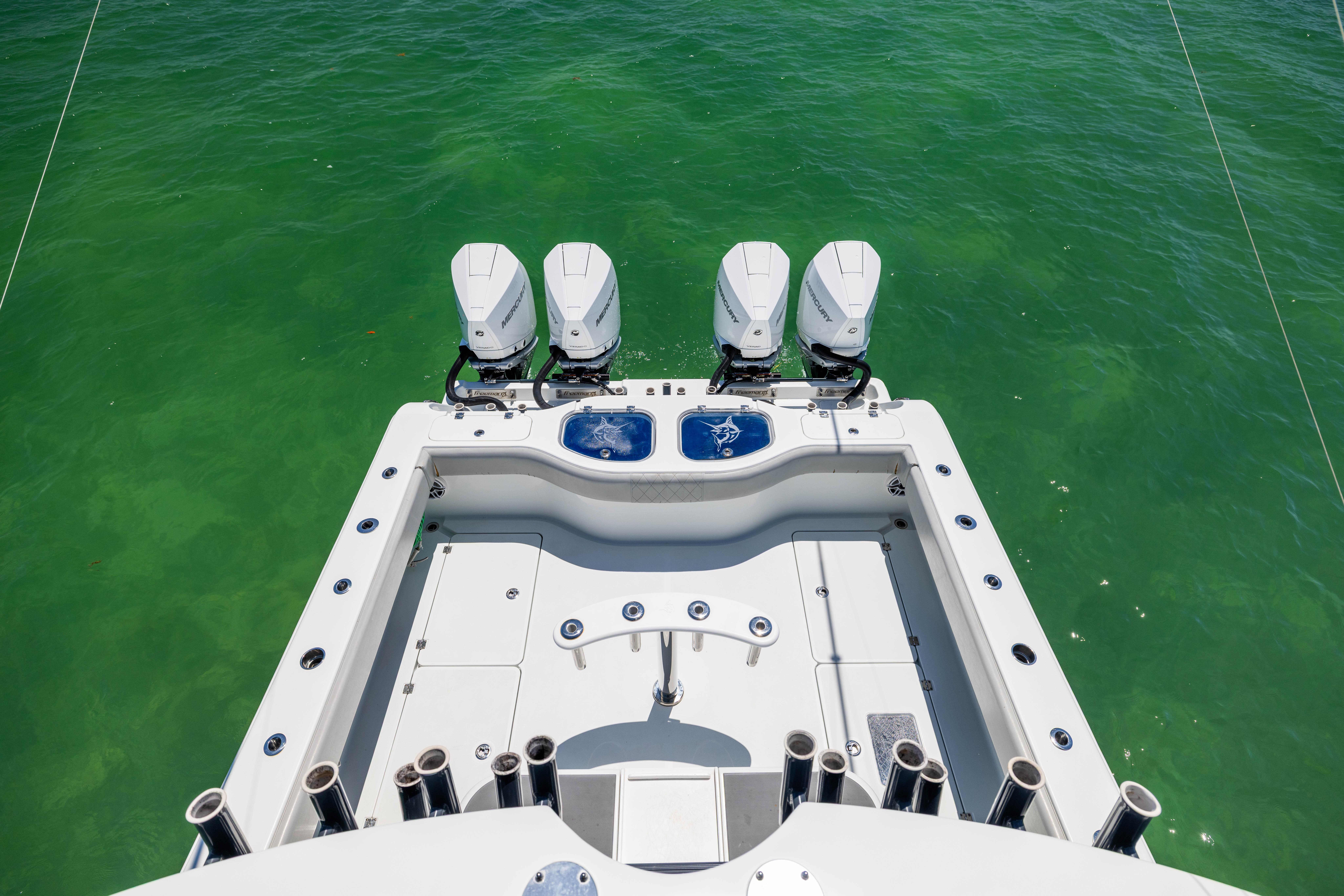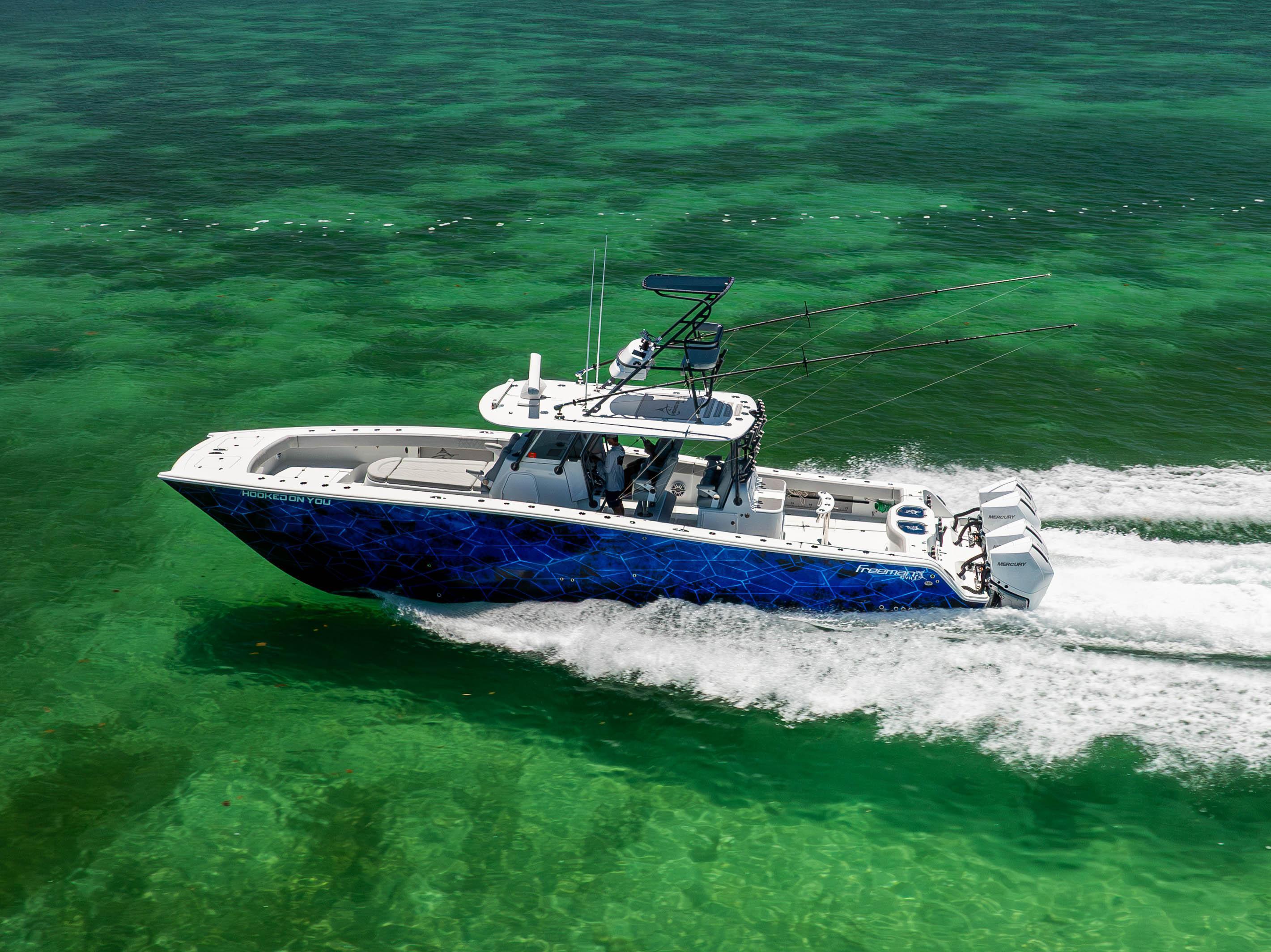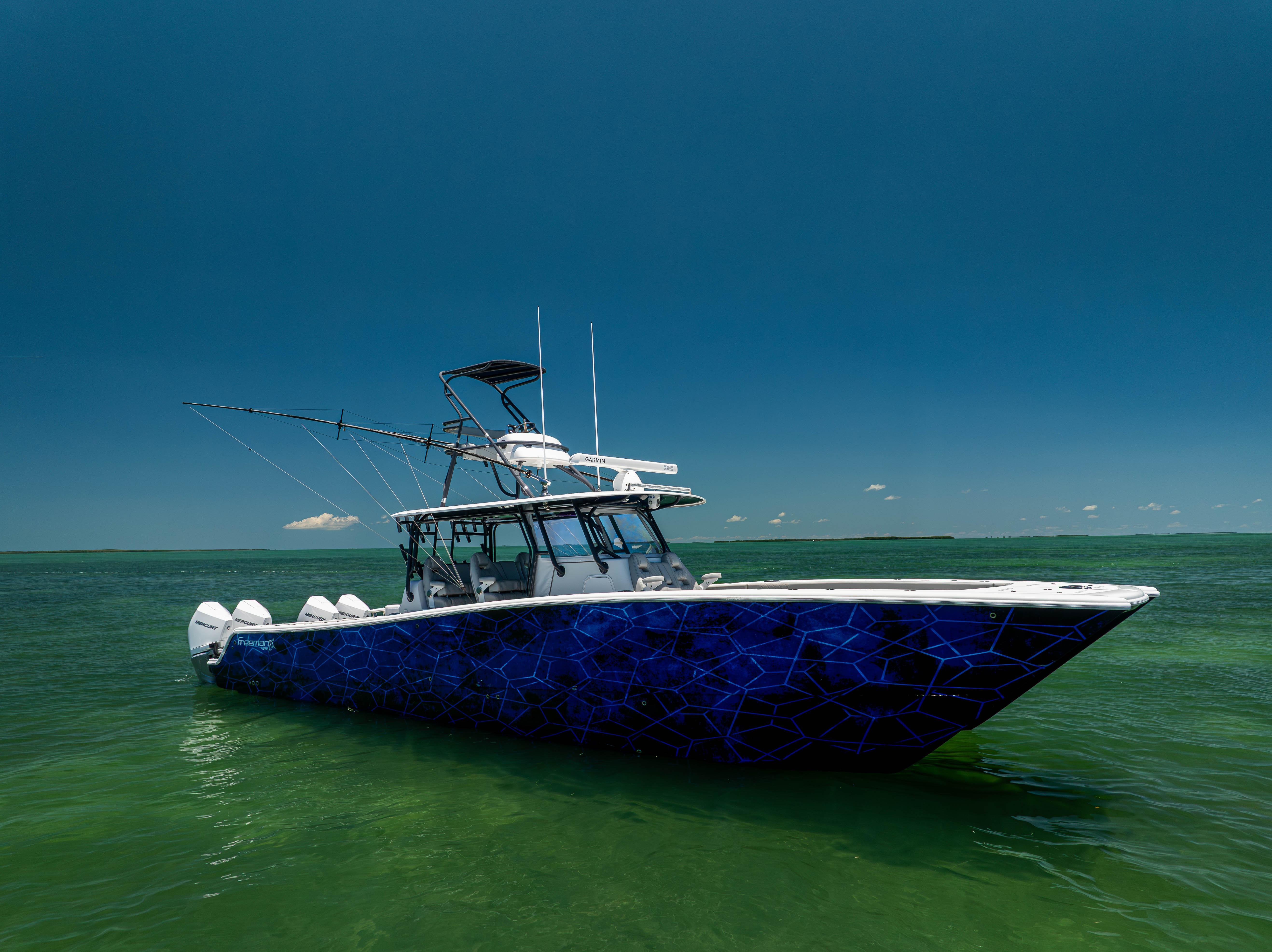 2021 Freeman 42 LR2025 Re-power! Quad 300HP Mercury V8 w/ 300hrsOptimus Joystick Electronics:Garmin GPS 8624 24” ChartplottersGHP AutopilotGarmin 6’ Open ArrayGSD26 Sounder Module(2) VHF Radio w/ 8’ AntennasLED Under Gunnel LightsLED Underwater LightsJL Audio Stereo System(6) Hubbel 12VFLIRStraight 50” Other Options:XL Hard Top w/ 10” Garmin Up TopCarinthia Blue Hull ColorFactory Folding TowerGemlux Outrigger BasesMarsh Tacky 25’ Outrigger Carbon Fiber PolesSecond Row SeatingTackle StationRocket LauncherGray Powder CoatingFactory Build Sheet Upon RequestIslamorada, FL Shown By Appointment Only