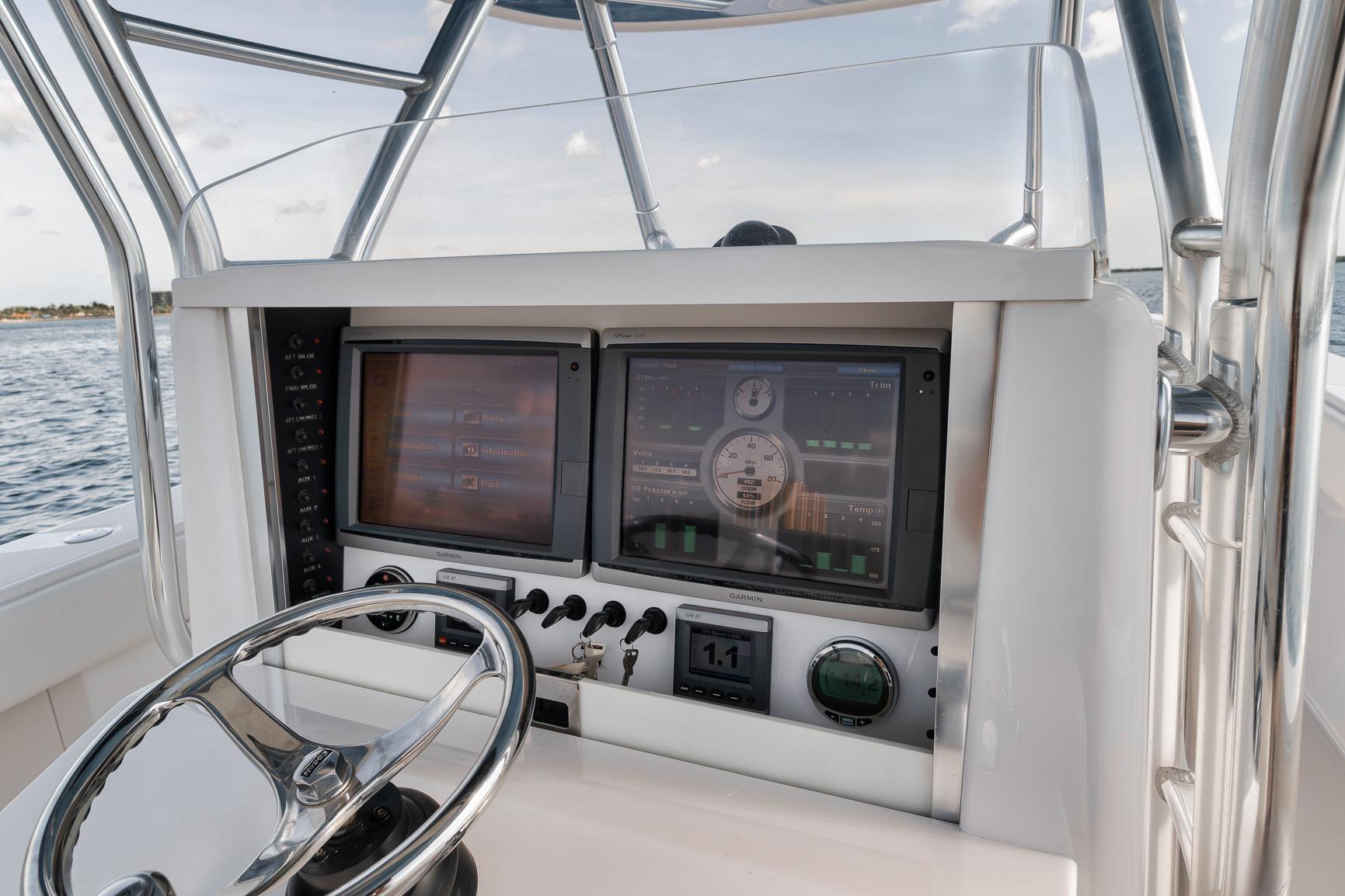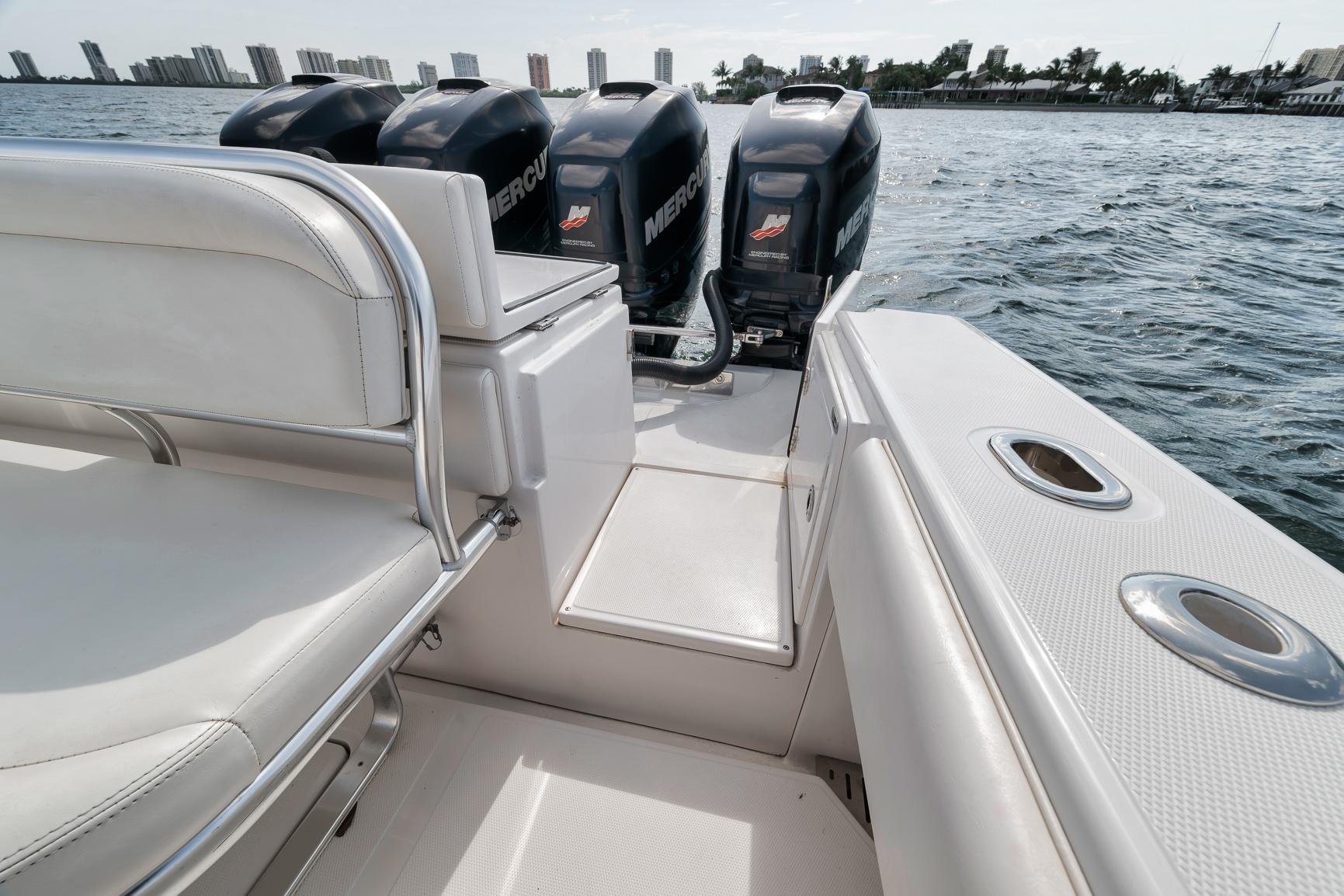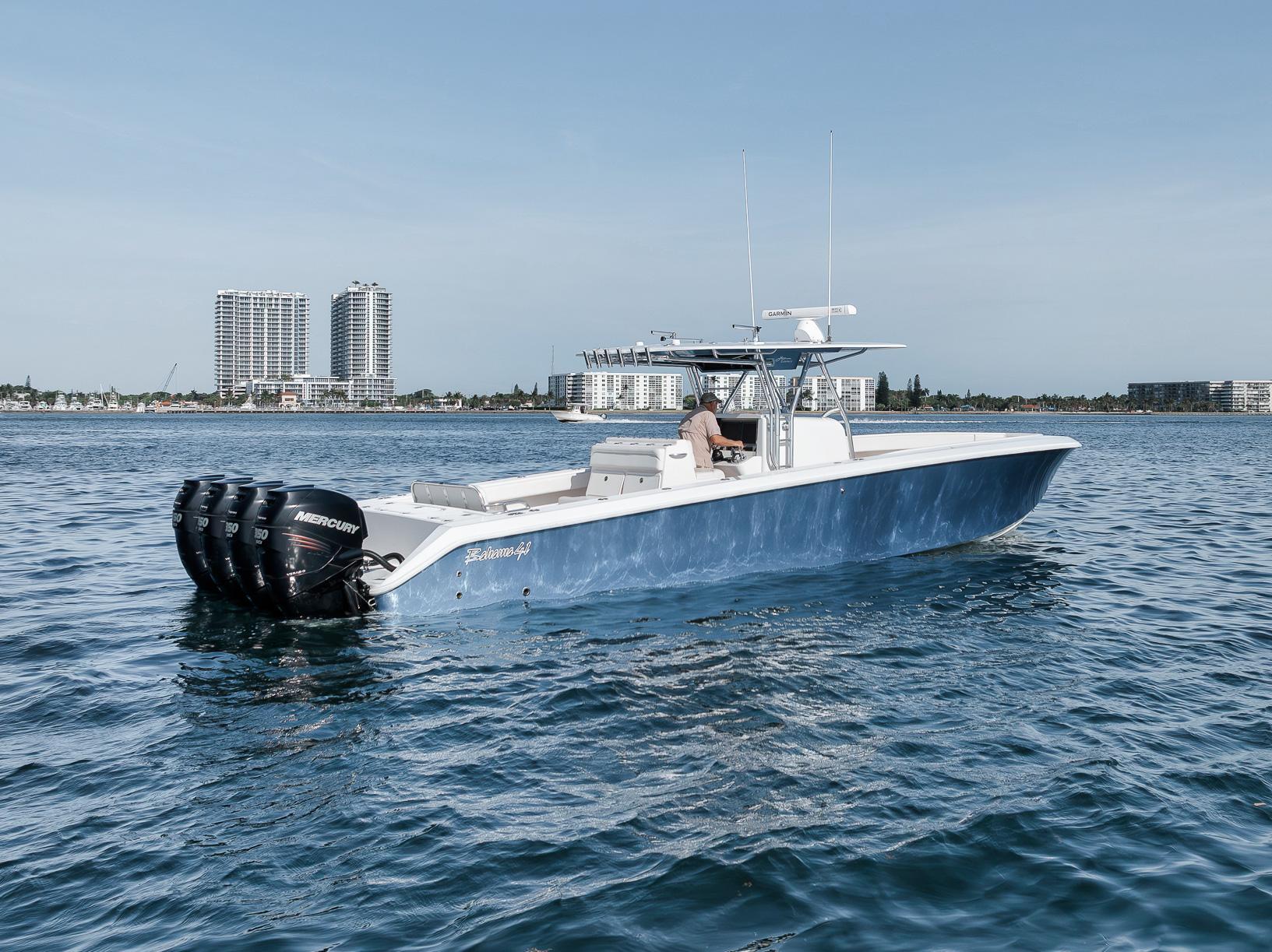 2013 Bahama 41 with 100 original hours!!!Quad 350 Mercury Verado SCI motorsCustom Bentley Blue metallic hull and underside of hardtop that is absolutely gorgeous!Boat has been kept indoors its entire life and it shows. You can still smell the resin inside the console and hatches.Twin Garmin 7215's. Garmin open array radar, Garmin Autopilot, Garmin GMI10, Clarion Stereo, JL Audio Speakers, Icom M506 VHFBirdsall Leaning post with rear facing seat/coolerBirdsall removeable transom seatK-Plane trim tabsRecessed Release Marine pedestal mount in Bow and in the cockpit for a rocket launcherElectric head inside consoleNew batteries in 2023Full boat coverThis boat has 1/2" fuel lines installed from the factory so to upgrade to V10 Mercurys is much simpler!