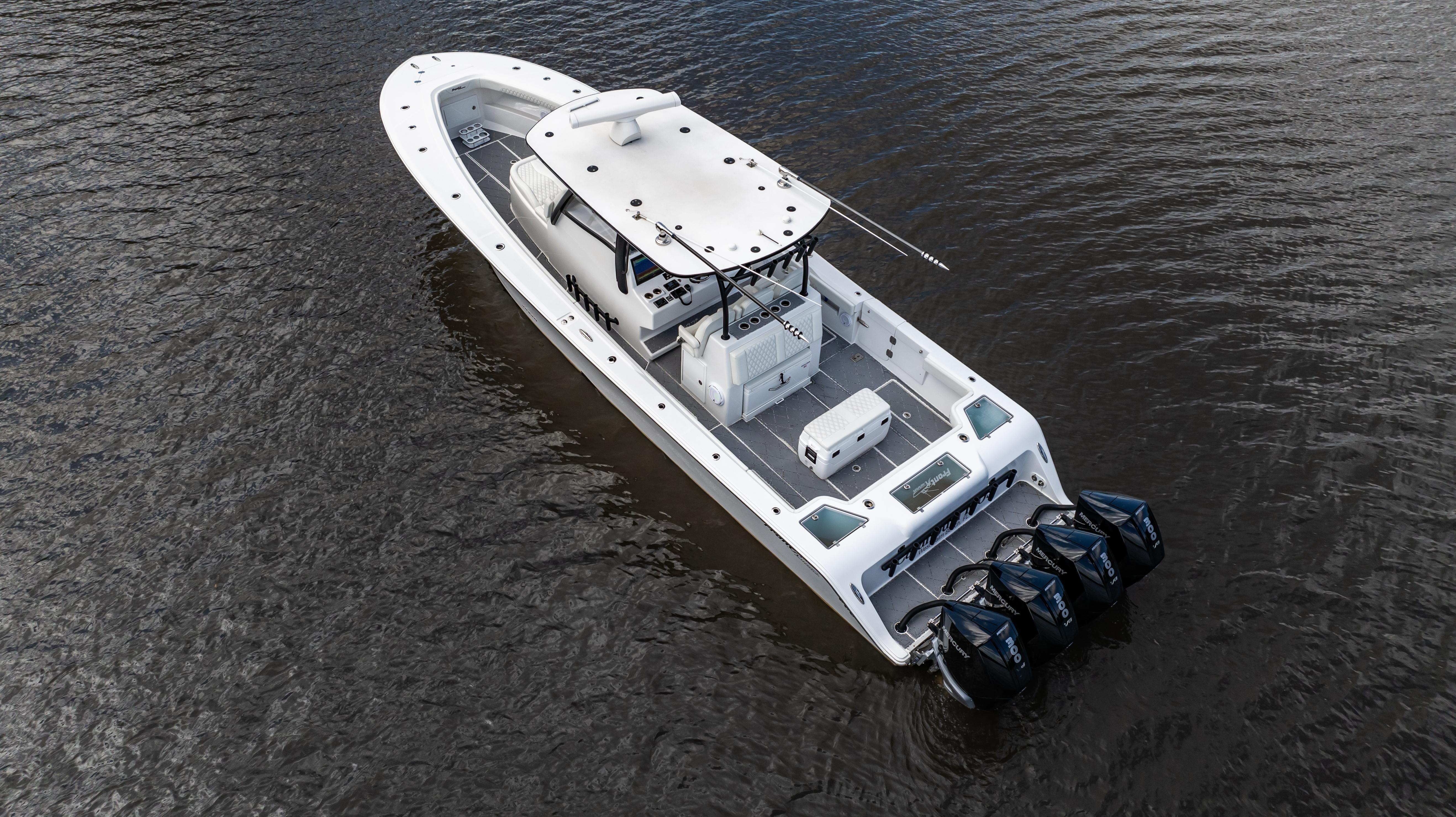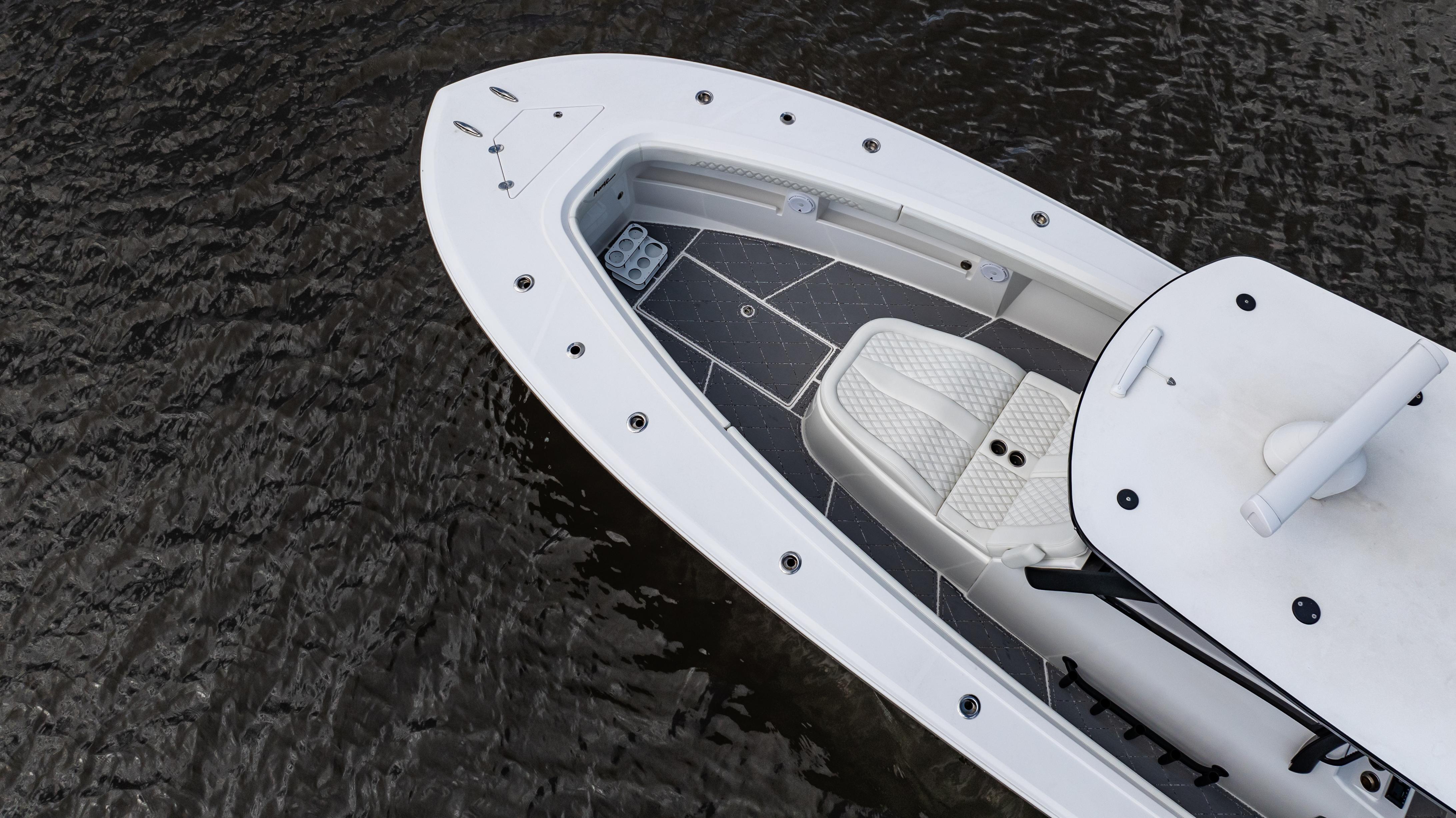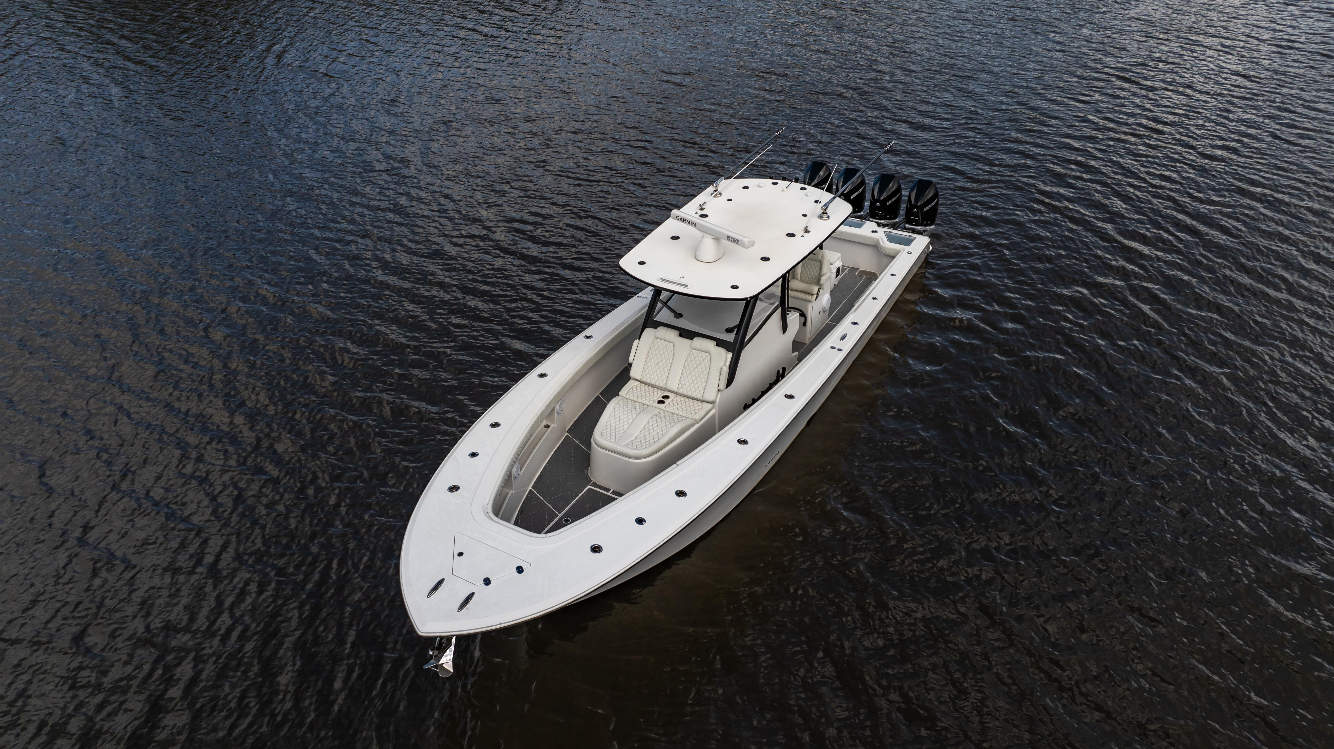 Built with classic styling, and modern innovation, the 39cc is a leader in her class. From the big bow flair to the high performance stepped bottom, the 39cc is sure to turn heads at the dock or while conquering rough seas. She also includes an enormous space down below to escape the elements. Whether you need to cool down at the sandbar or take a nap while drifting overnight for swordfish, the 39cc has you covered. The finest materials were used in her construction, and cutting edge design and engineering were used to make this boat perform and ride just like she is named, a true Front Runner.