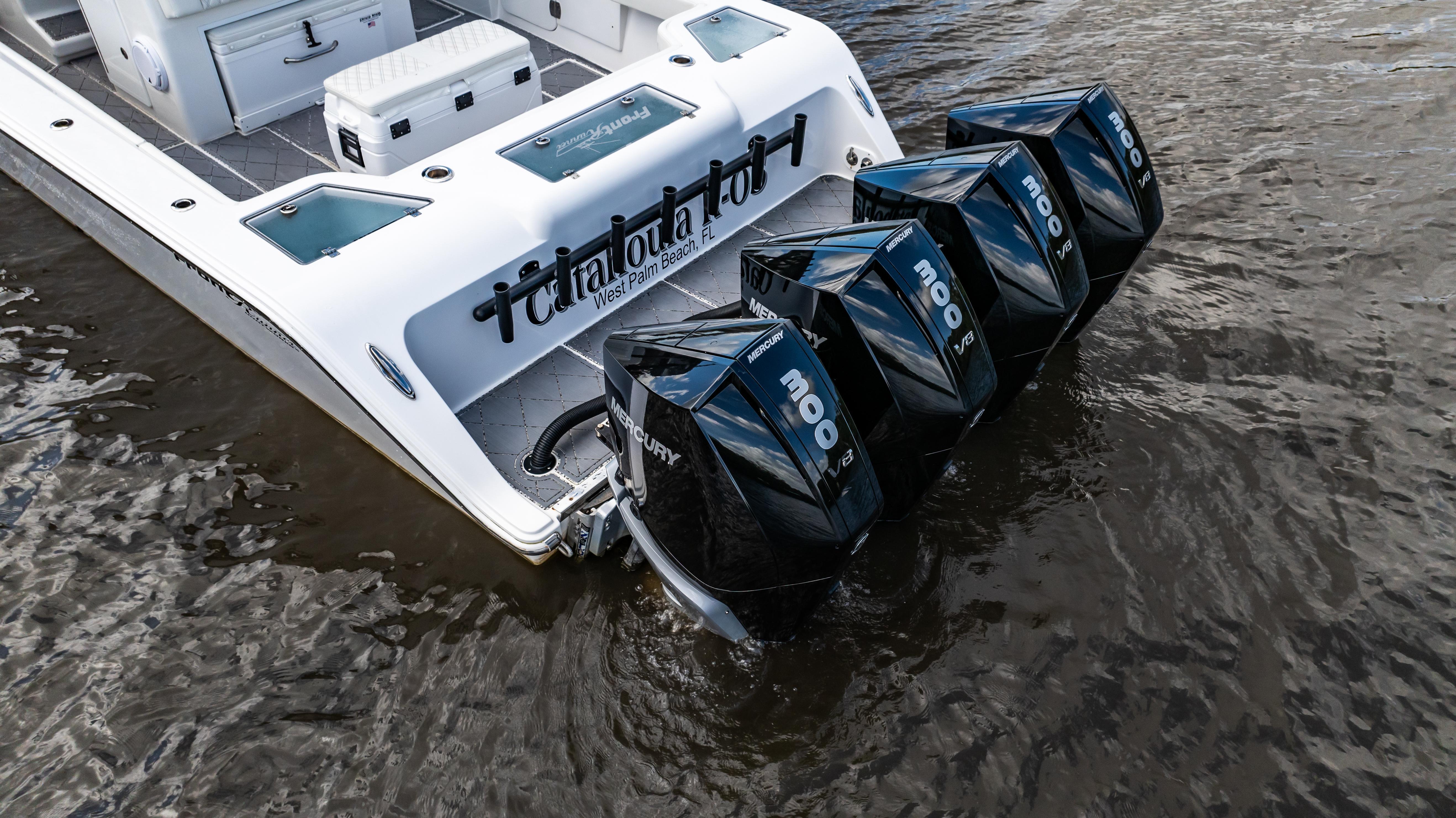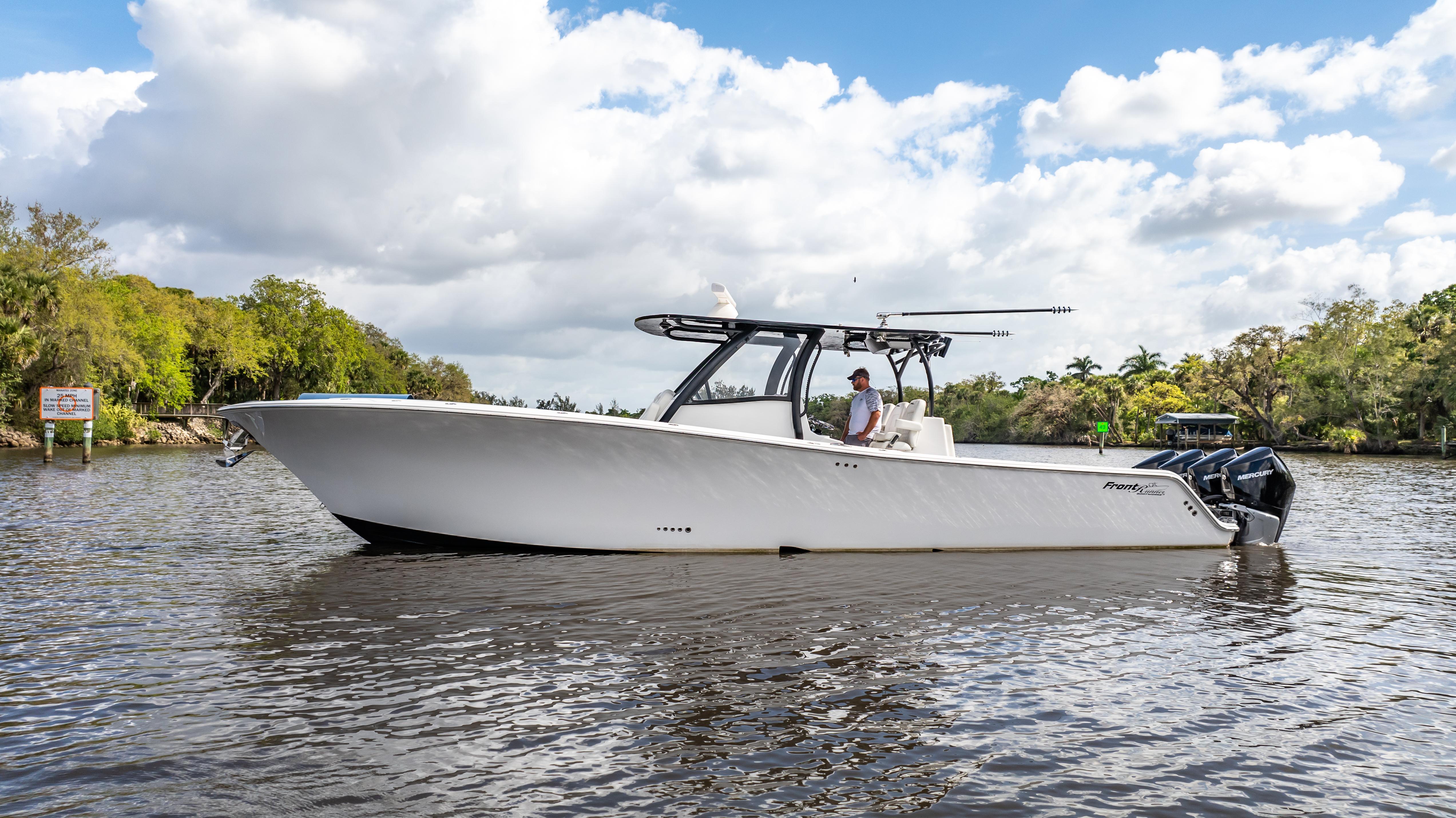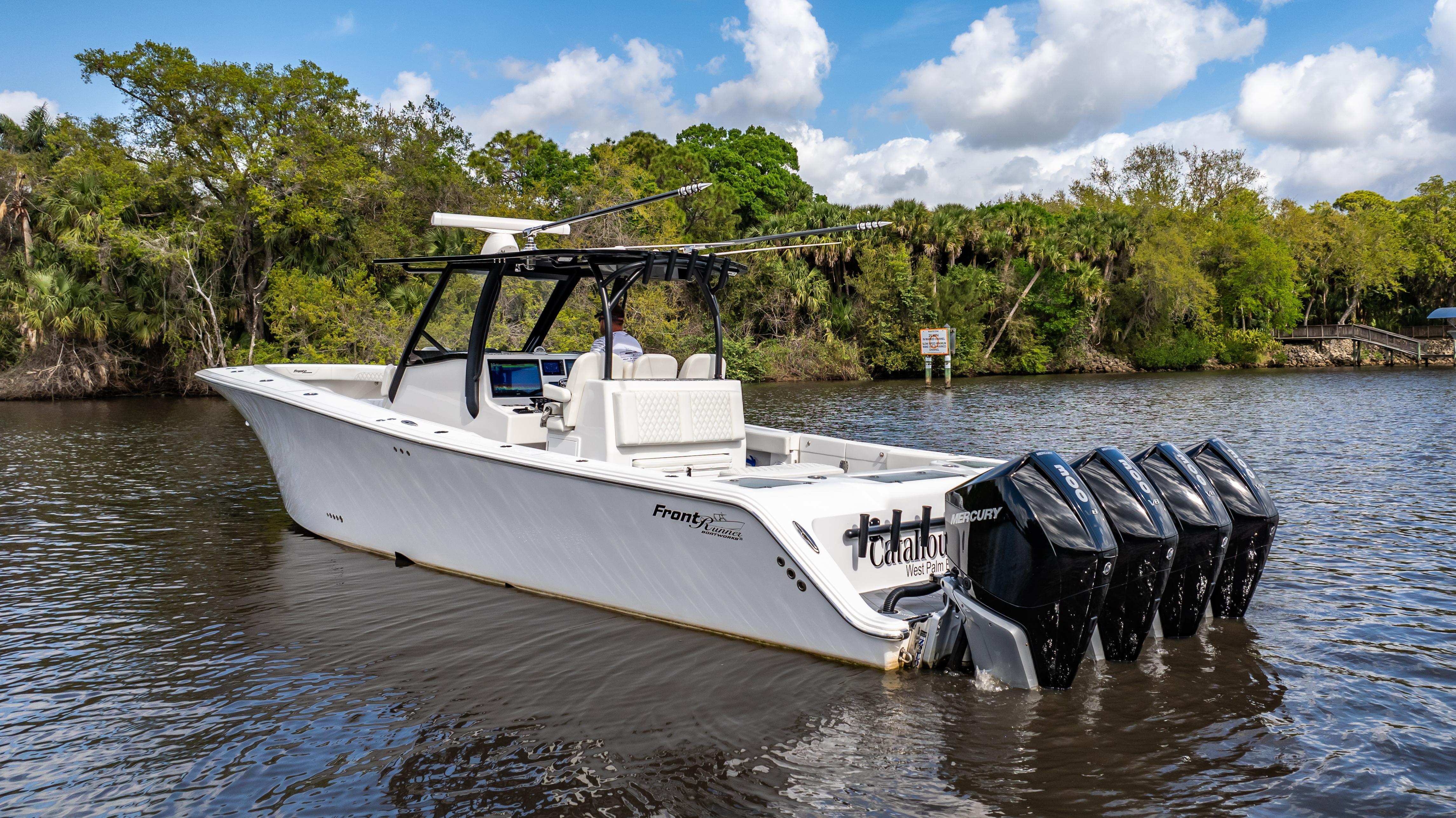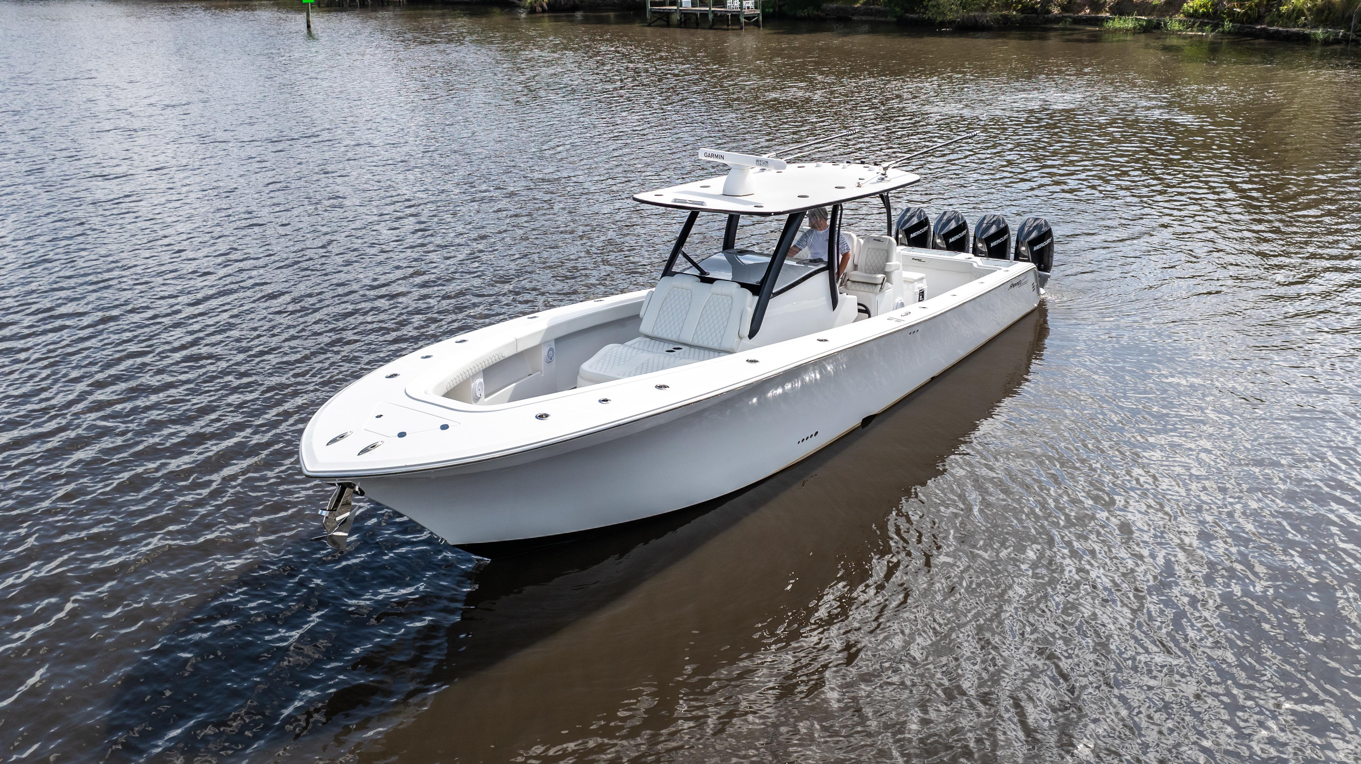 Built with classic styling, and modern innovation, the 39cc is a leader in her class. From the big bow flair to the high performance stepped bottom, the 39cc is sure to turn heads at the dock or while conquering rough seas. She also includes an enormous space down below to escape the elements. Whether you need to cool down at the sandbar or take a nap while drifting overnight for swordfish, the 39cc has you covered. The finest materials were used in her construction, and cutting edge design and engineering were used to make this boat perform and ride just like she is named, a true Front Runner.