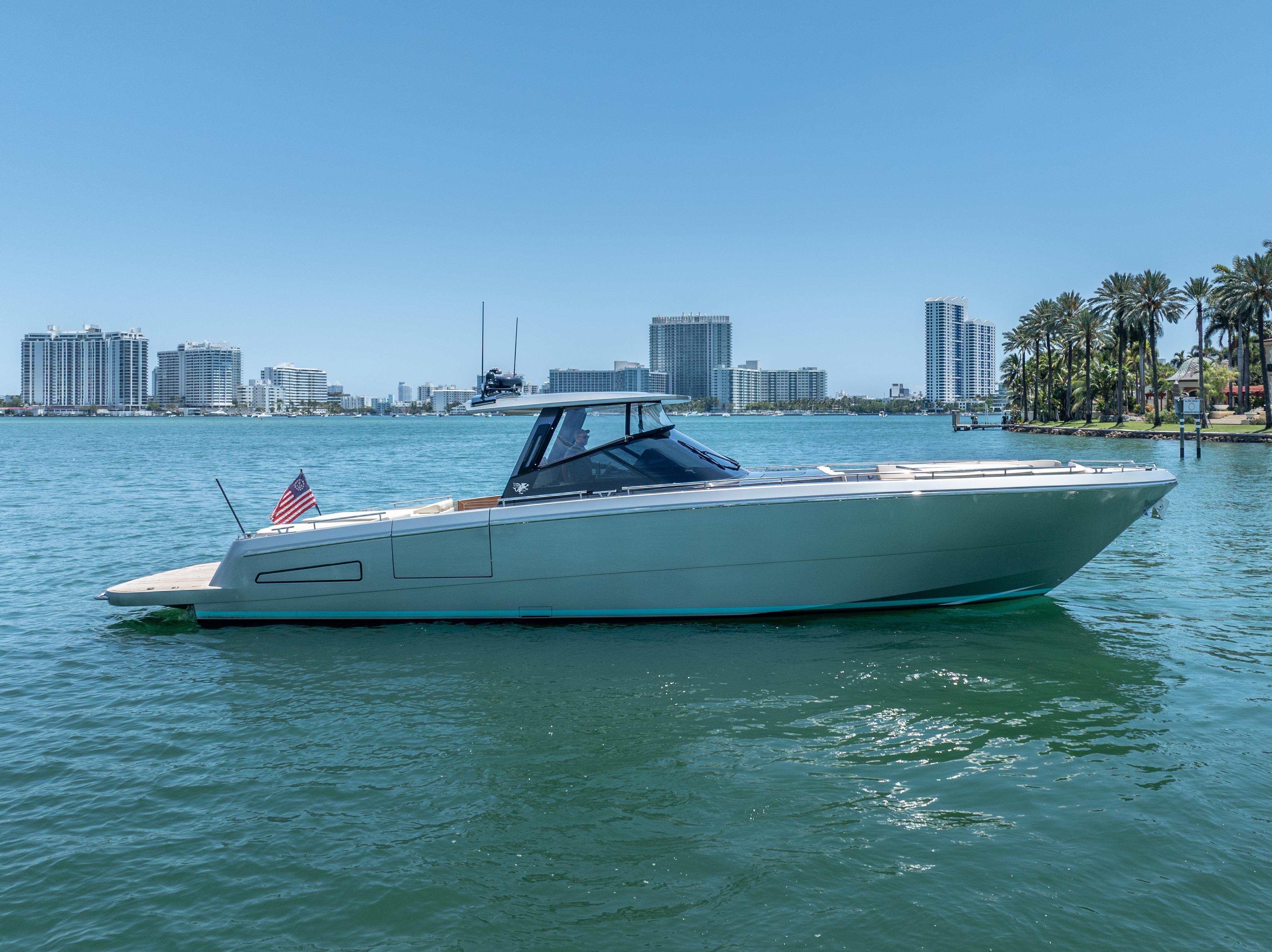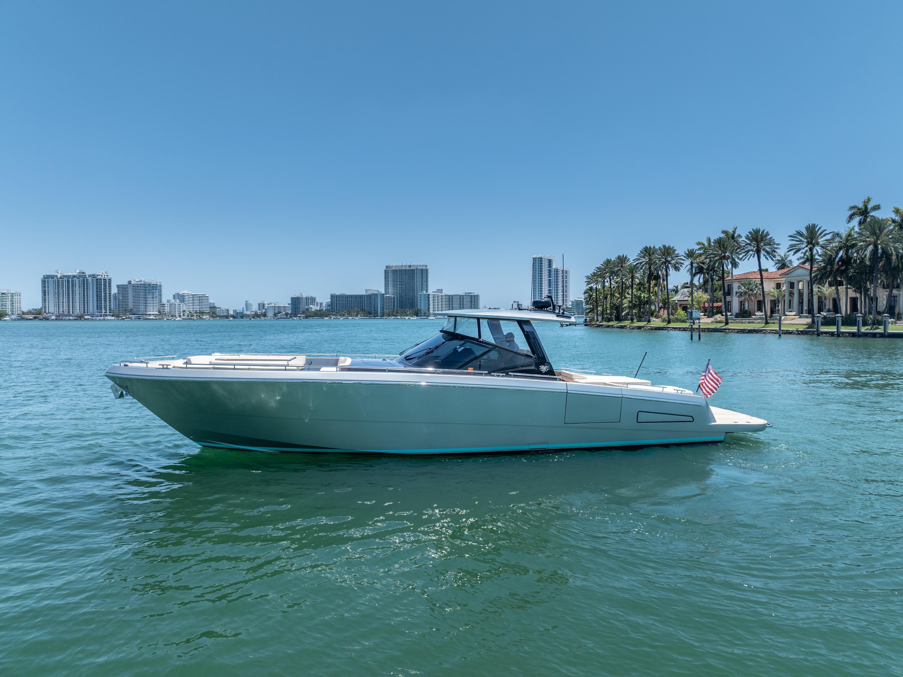 YANINA is a bespoke 2019 CNM Continental 54—one of the most customized and immaculately maintained yachts in her class. Presented in the Rolls Royce Platinum Metallic Edition with a two-tone anthracite effect, she boasts striking aesthetics, precision engineering, and unparalleled comfort for her size category. Powered by twin MAN I6-800s paired with Arneson surface drives and Humphree active stabilization, YANINA reaches a top speed of 45 knots with exceptional control and seakeeping.Designed with a sophisticated European Oak interior accented by Loro Piana fabrics and suede paneling, she features two guest staterooms, a crew cabin, and exquisite attention to detail throughout. US duty paid and professionally maintained with extended warranties in place, YANINA is turnkey and ready for immediate cruising.