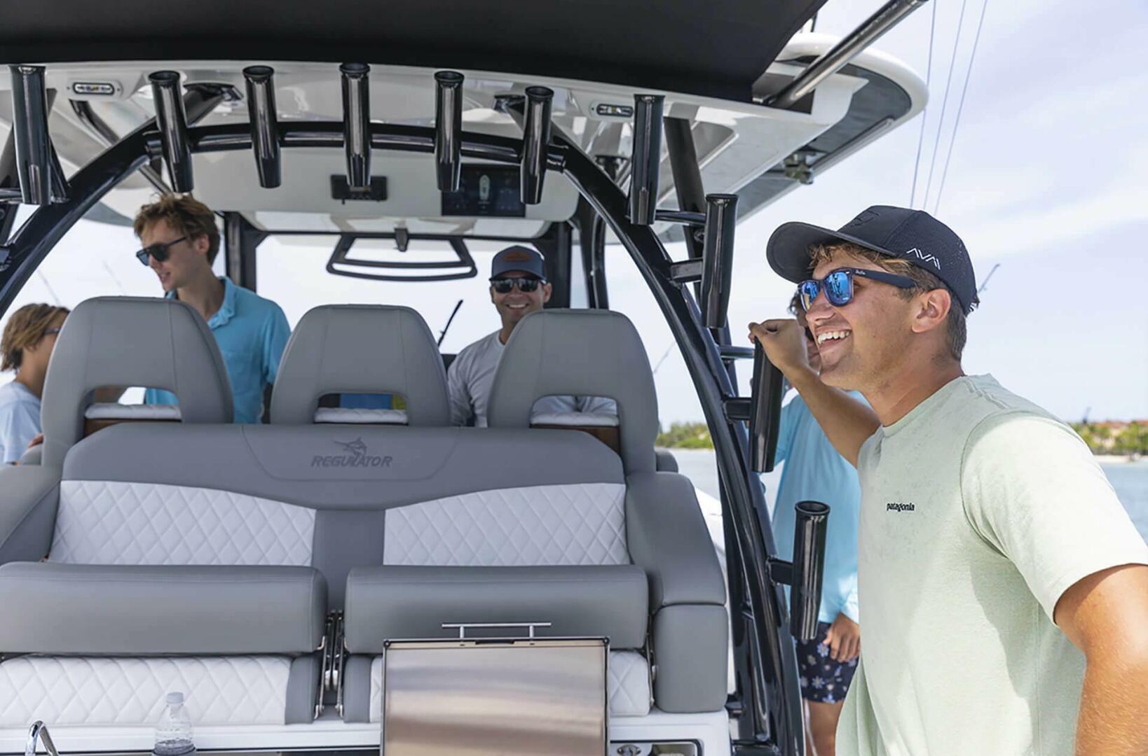 2025 Regulator 41 CC, Introducing the highly anticipated upgrade to the Regulator 41, boasting a state-of-the-art helm designed with the latest in high-tech features, a revamped and stylish cabin interior, and an expanded array of amenities tailored to meet the demands of avid fishermen. This vessel is proudly powered by Quad Yamaha 450s with Helm Master™EX, offering unparalleled performance and maneuverability. Furthermore, it comes equipped with Seakeeper® 5, ensuring a stable and comfortable experience for all your offshore adventures.LOA: 41’ 3”LOA w/ Bracket & Engines: 46’ 10”Beam: 12’ 6”Bridge Height: 128” (194” w/ Tower)Height from Keel: 162” (228” w/ Tower)Dry Weight w/ Engines: 23,500 lbsFuel Capacity: 600 galDiesel Capacity: 20 galDeadrise: 24 DegreesDraft: 29” Engines UpDraft: 37” Engines DownCenter Forward Storage: 292 qtsFwd Seat Insulated Fishbox/Dry Storage: (2) 216 qts eaIn-Deck Fishbox/Locking Rod Storage: 624 qtsForward Settee Cooler: 100 qtsHead with Holding Tank: 13 galFreshwater Tank: 60 galHot Water Tank: 6 galTransom Livewell (2): 40 gal eaTransom Fishbox: 336 qts