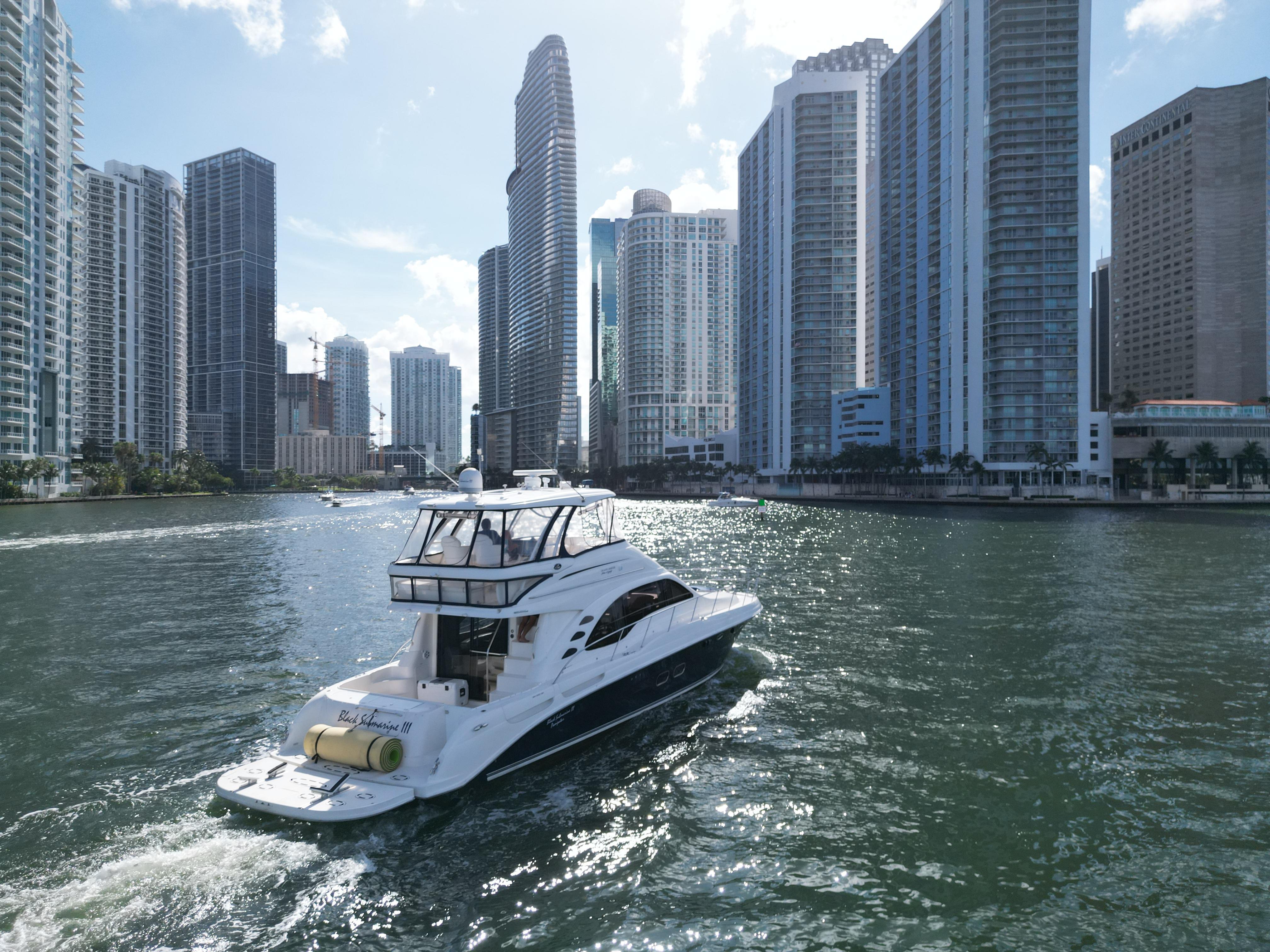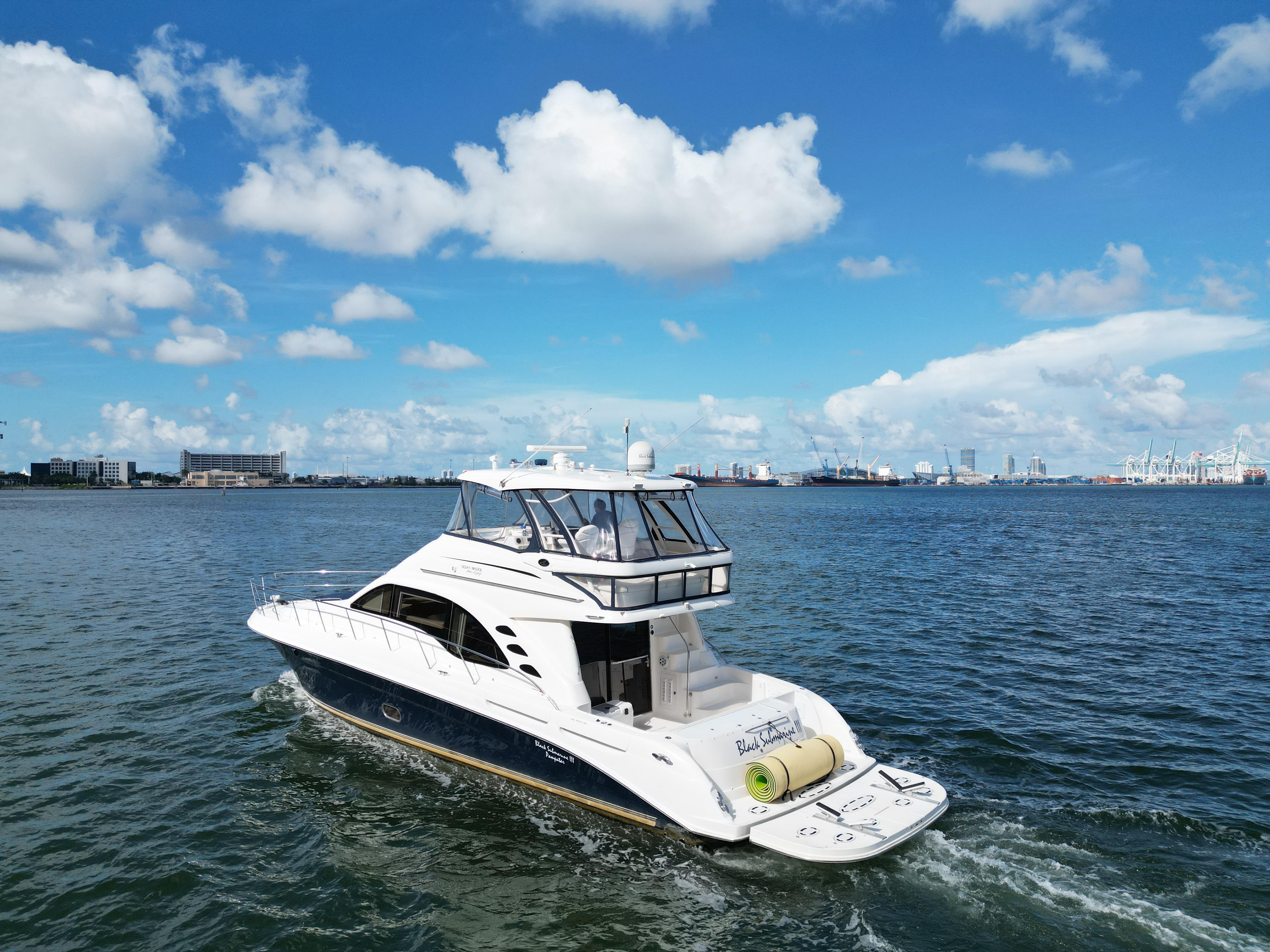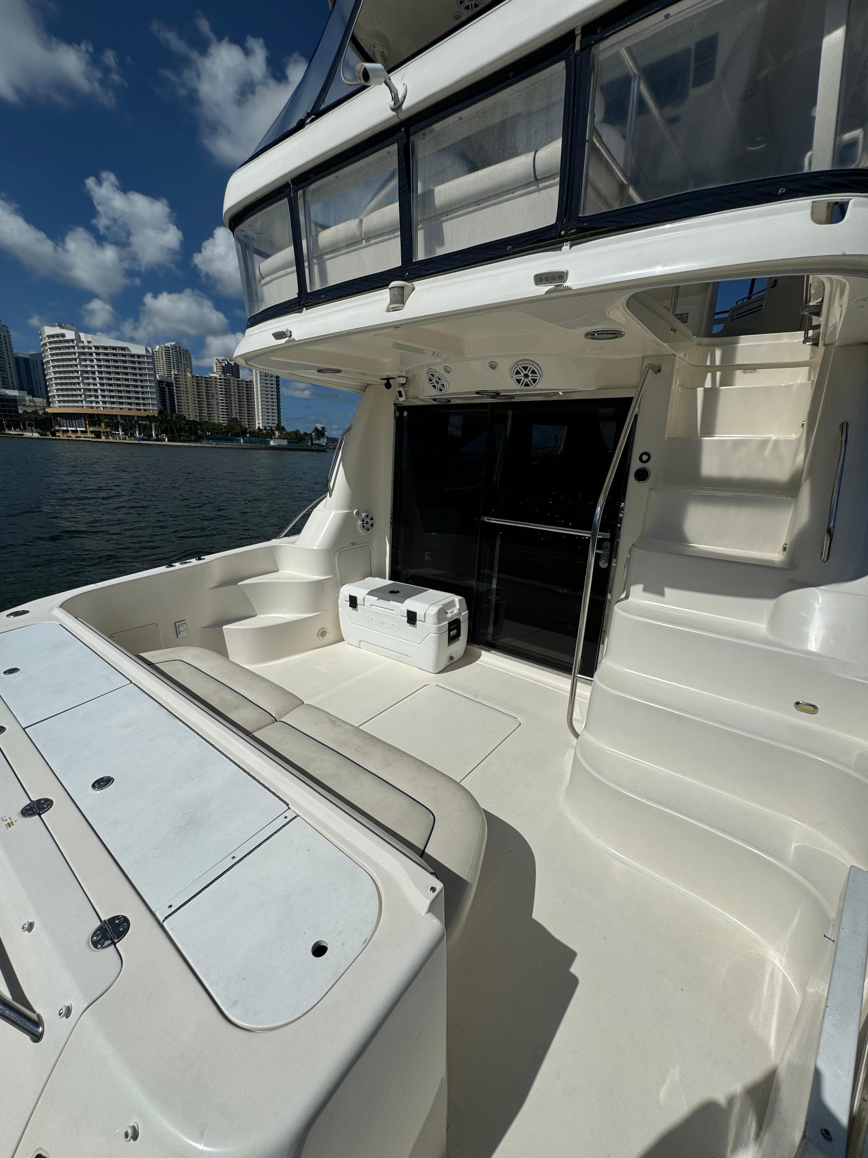 2005 Sea Ray 58 Sedan Bridge – Located in Miami, FL (Not for Sale to U.S. Residents While in U.S. Waters)Flagged: JamaicaLocation: Miami, Florida (foreign-flagged, not for sale while in U.S. waters)Builder: Sea RayModel: 58 Sedan BridgeYear: 2005LOA: 58 ftBeam: 16 ftDraft: 4 ft 3 inFuel Capacity: Approx. 700 galWater Capacity: Approx. 150 galHull Material: FiberglassHull Shape: Modified-VEngine Make/Model: Twin MAN DieselsEngine Hours: 2,000 Cruising Speed: 25 knotsTop Speed: 30 knotsStaterooms: 3Heads: 2Flag of Registry: JamaicaNot for sale to U.S. residents while in U.S. watersVessel Overview:This 2005 Sea Ray 58 Sedan Bridge, registered under the Jamaican flag, is a standout model known for its solid performance, spacious layout, and elegant styling. Powered by twin MAN diesel engines with approximately 2,000 hours, she is well-maintained and turnkey ready for cruising.The 58 Sedan Bridge boasts a luxurious 3-stateroom, 2-head layout with a spacious salon, full-featured galley, and expansive flybridge with hardtop and wet bar — ideal for entertaining or long-range cruising.Notable Features:Twin MAN diesel engines (2,000 hours) – professionally maintainedHydraulic swim platform for tender or jet skiFlybridge with hardtop, seating for 8+, and built-in wet barRaymarine electronics, bow thruster, autopilotSpacious salon with large windows and upgraded entertainmentFull-beam master with en-suite headVIP forward stateroom and twin guest cabinWasher/dryer, central vacuum, and full galleyGenerator and air conditioning systems throughoutEngine room access with ample spaceAccommodations:Master (Midship): Full-beam, queen berth, en-suite headVIP (Forward): Queen berth, shared headGuest (Port): Twin berths or bunksSalon: Plush L-shaped seating, TV, wood finishesHeads: Two full heads with enclosed showersRemarks:This vessel is foreign-flagged (Jamaica) and not available for sale to U.S. residents while in U.S. waters per federal regulations. It is ideal for non-U.S. buyers or for relocation outside U.S. territory. She’s in good condition for her age, turnkey ready, and represents strong value in the 58-foot flybridge market segment.