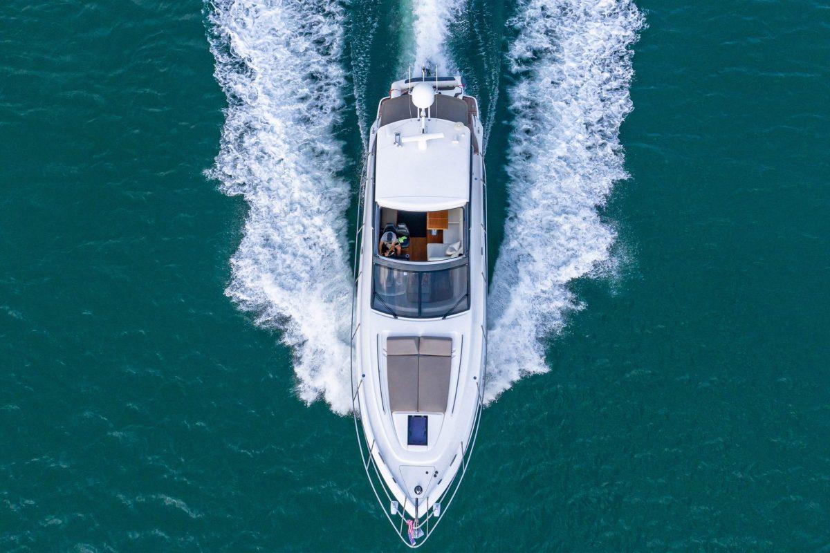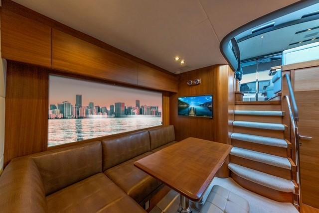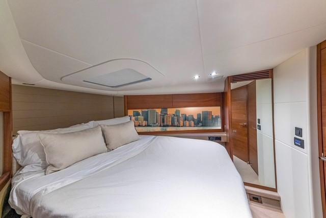 Presumed Innocent is 2017 Princess V48 with an LOA just over 50 feet. She is loaded with key options including a Seakeeper 6, Williams Minijet Tender on a custom hydraulic swim platform mount, Lithium Ion house batteries with supercharger, Inverter, AGM start batteries, Intellian Satellite, Forward Facing Panoptix Live Scope sonar, dishwasher and underwater lights. Her joystick controlled Volvo IPS 600 diesels have been well maintained and all services up to date. Presumed Innocent features a retractable sunroof that creates a living and entertaining environment in the main salon which flows seamlessly with the aft deck to provide an outdoor experience of an open express cruiser with the available all-weather protection and climate control of a coupe. Presumed Innocent is a fine example of the finest crafted express cruisers from Princess Yachts and ready to show in Miami, Florida.
