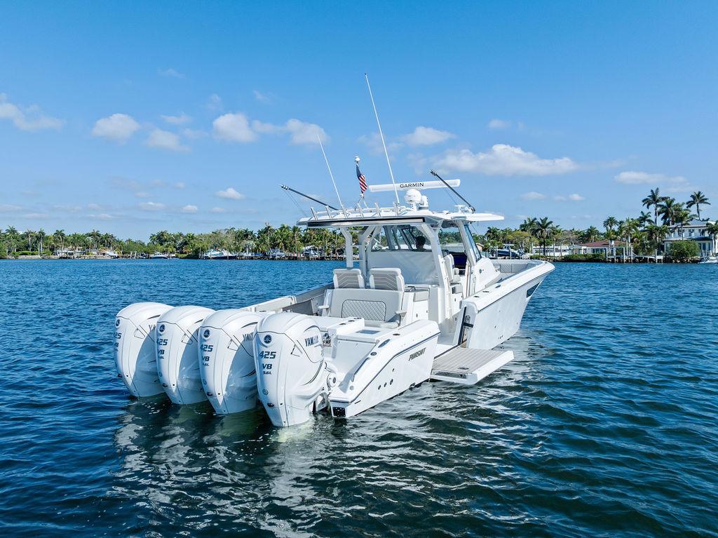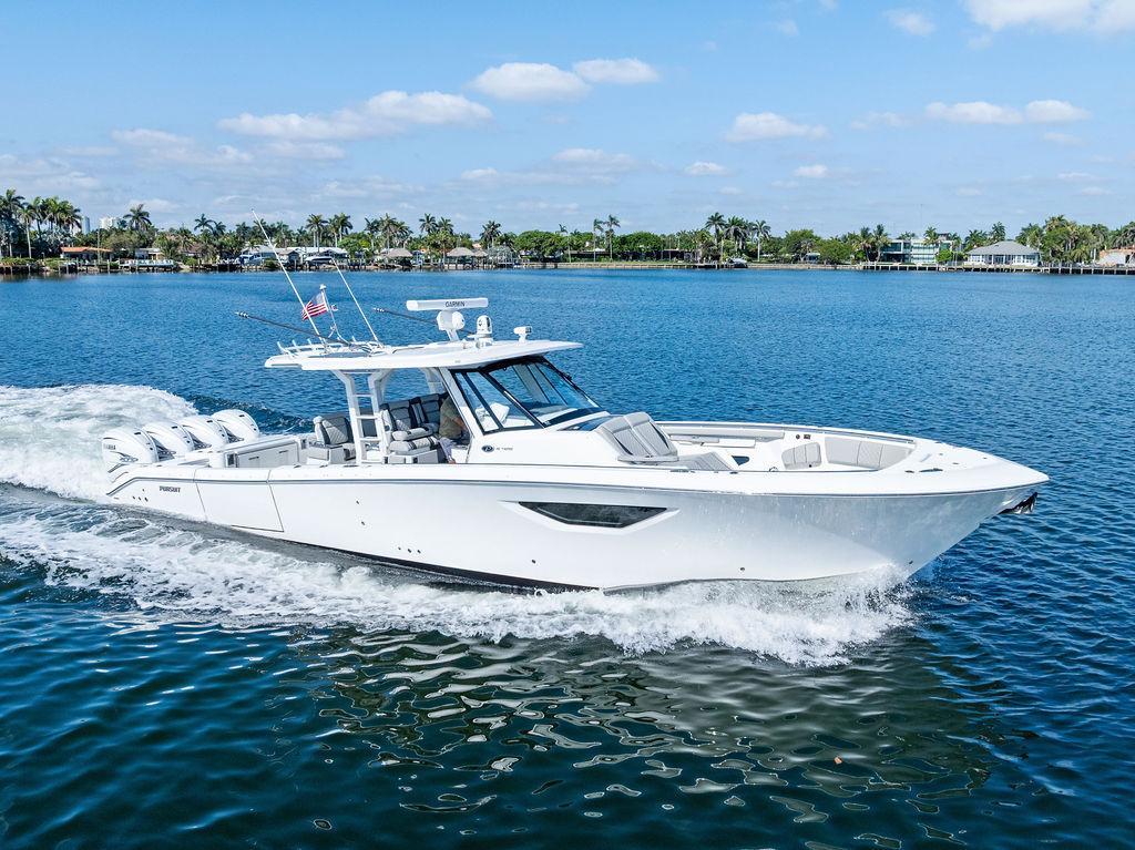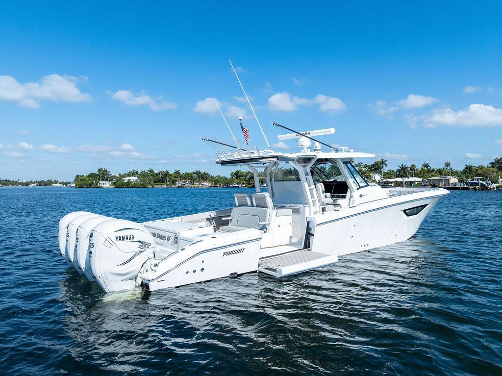 This 2022 Pursuit S 428 is the ultimate offshore machine, combining luxury, performance, and cutting-edge technology in one meticulously maintained vessel. Lift-kept since new and maintained in like-new condition, this flagship model from Pursuit is powered by quad Yamaha 425 XTO V8 engines with low hours and factory warranty coverage through April 2027—giving you peace of mind and years of worry-free boating ahead.Key Features:Quad Yamaha 425 XTO V8s – low hours, Yamaha engine warranty until March 2027Joystick control for effortless dockingSeakeeper 6 gyro stabilizer – smooths out the ride in rough seasBow thruster and Zipwake trim tabs – enhanced handling and efficiencyFLIR night vision camera – improved visibility and safety during night operationsDive door – easy water access for swimming, diving, or boardingElectric retractable sunshade – comfort at the push of a buttonLift-kept and professionally maintained – shows like newUpgraded Garmin- GDS28 Sonar Upgraded- 2 Garmin 9222 4K Touch screens (15k each)The Pursuit S 428 stands out as a versatile and luxurious center console perfect for fishing, cruising, or entertaining. With sleek lines, unmatched amenities, and serious offshore capability, this vessel is turnkey and ready for your next adventure.Don’t miss this rare opportunity to own one of the best-equipped and best-maintained 428s on the market today.