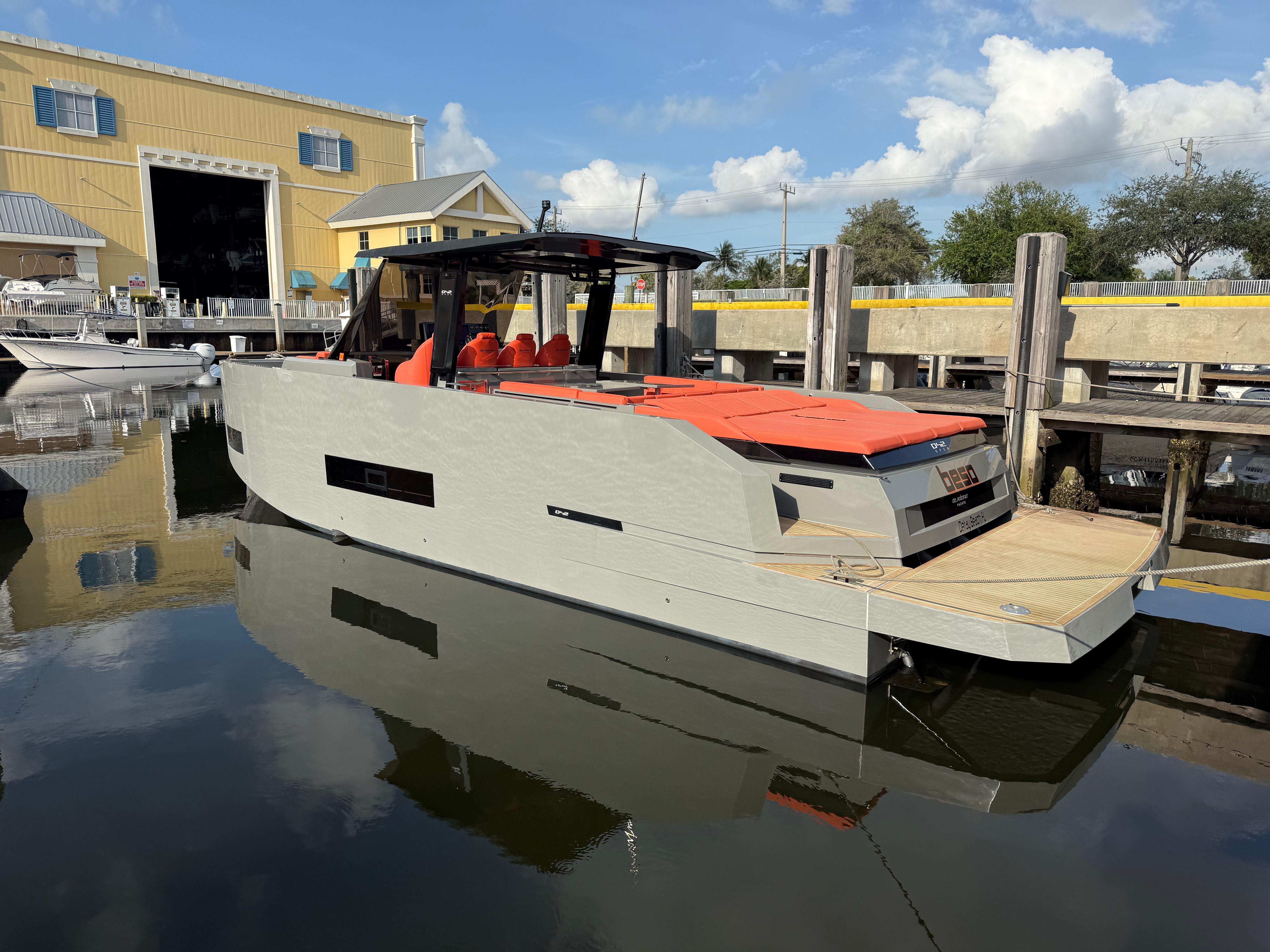 AVAILABLE FOR IMMEDIATE DELIVERY!Mercury Platinum Warranty till 2029!TRADE-INS ACCEPTED!! This 42' De Antonio boasts an impeccable, like-new condition, offering all the available options during the time of build. Optioned with the onboard icemaker, (3) refrigerators, and ample seating. This is the boat to enjoy South Florida boating like a VIP. When it’s time to cool down you can enjoy the air conditioned salon that also has access to a full head inclusive of a dedicated shower. With only 220 hours on her Triple V8 300s you have the opportunity to create a lifetime of memories with this D42 DeAntonio.Features:White Color HullArtificial Teak Deck Flexiteek®Windlass w/Support, Anchor, Chain and WitchFully Integrated Hard TopLED Navigation Lights Lopolight®LED Decorative Lights on DeckTwo Retractable TablesSwimming LadderHandholds with Morbern Sundance® FinishesCarbon Trims on Bows and SidesRetractable Aluminum CleatsComplete Kitchen (Fridge 65L, Sink, Cooktop, Microwave)Cushion and Upholstery Morbern Sundance®Audio System Fusion Series RA70N (4 Speakers)Navigation System Simrad GO12 XSE (12")VHF Radio Simrad RS20 and AntennaHornBilge PumpsAC Shore Power and Cable / Battery ChargerShower on DeckWindows on Hull Sides (Stern Cabin)Bow Cabin with Full BedStern Cabin with U-Shape Triple Bed (250 x 300 x 250 cm)Complete Bathrooms (Electric wc)USB and Lighter Plug Outlet 12VComplete Outdoor Entertainment (Sink, Cooktop, 2 Refrigerators, 1 Ice Maker)Optional FeaturesMercury® 3 x 300 HP V8sJoystick Piloting SystemHard-topCanvas Awning Extension for Stern Sundeck Compatible with Hard-Top (Electric) Auto Extend/RetractPlatform XL Windows on Hull Sides (Bow Cabin)Premium UpholsteryDeck Kitchen Storage PackStern DoorsCovers for Seating Areas and ConsoleDeck Storage ChestPack Comfort Lounge (Fixed Benches, XL Table, 36L Fridge and Storage Chest)Inverter (3kW with 3 240Ah Batteries)Air Conditioning (12´000 BTU)Electric Refrigeratior 49L (Interior)Ice-Maker (not compatible with second refrigerator)Interior Complete Kitchen (Sink and Cooktop)Underwater LED LightsAntifouling Paint (Black Color)Second Navigation Screen Simrad GO12 XSE (12")Bow ThrusterDynamic Trim-Control System Zipwake®GeneratorInterior TV