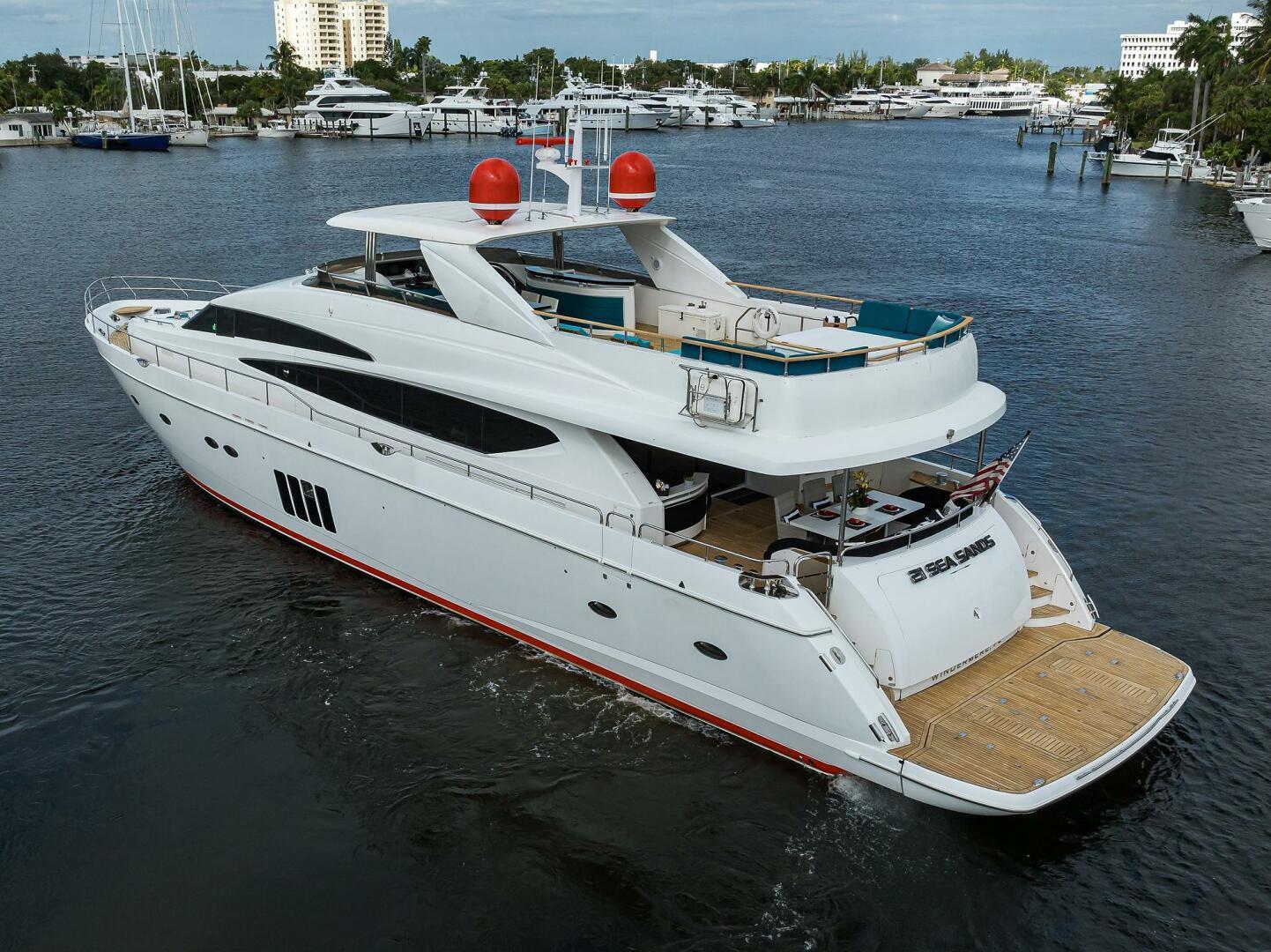 Introducing 21 SEA SANDS, a remarkable example of Princess Yachts' renowned craftsmanship and luxury. This 95’ yacht, built in 2009, offers full walkaround side decks and a spacious interior designed to accommodate up to 8 guests in 4 staterooms, with room for 6 crew members. Its unique custom sundeck layout provides expansive lounging and entertaining areas, making it stand out among other yachts in its class. With recent upgrades, including a brand-new Furuno navigation system, an updated galley, a refreshed interior, and a newly replaced teak deck, 21 SEA SANDS is meticulously maintained and ready for immediate use. Whether for personal or charter purposes, 21 SEA SANDS blends sophistication with functionality, delivering a first-class yachting experience. This turnkey vessel is ideal for those seeking a blend of luxury and adventure on the open seas. Don’t miss the opportunity to own this stunning yacht, where every detail reflects Princess Yachts' commitment to excellence. New Chiller Plant - 3 total (February 2025)Complete rebuild on both generators - mechanical and electrical (February 20025)Refitted 2021All electronics updated to Furuno TZT2BB in 2023Bow thrusterCinema,GalleyMeticulously maintainedStabilizers